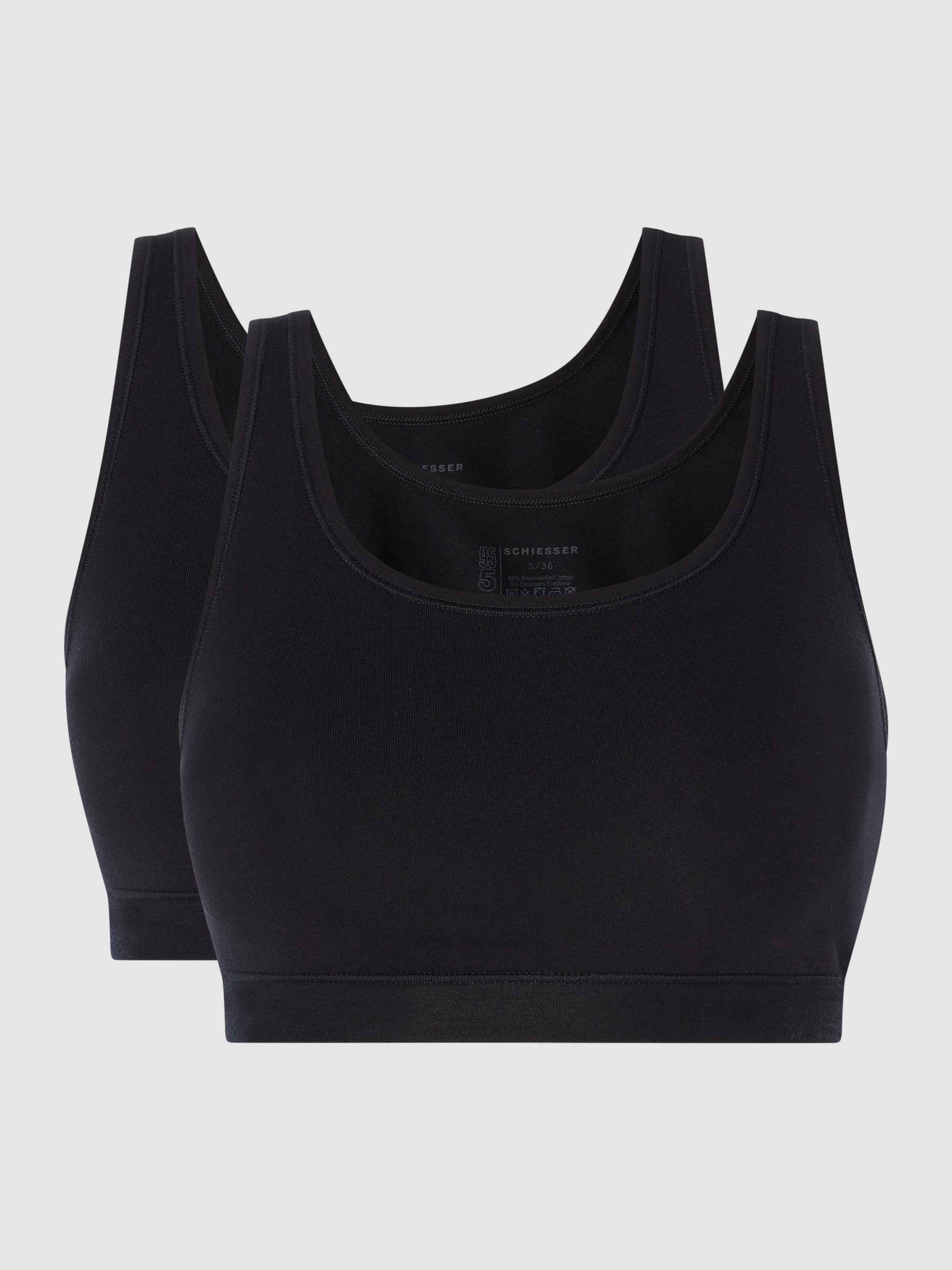 Das Bustier von SCHIESSER kombiniert Bio-Baumwolle mit Elasthan für eine sanfte Passform, die Bewegungsfreiheit bietet. Der Rundhalsausschnitt und der elastische Bund sorgen für Komfort im Alltag. Im praktischen 2er-Pack eignet es sich für vielseitige Kombinationen und täglichen Gebrauch.