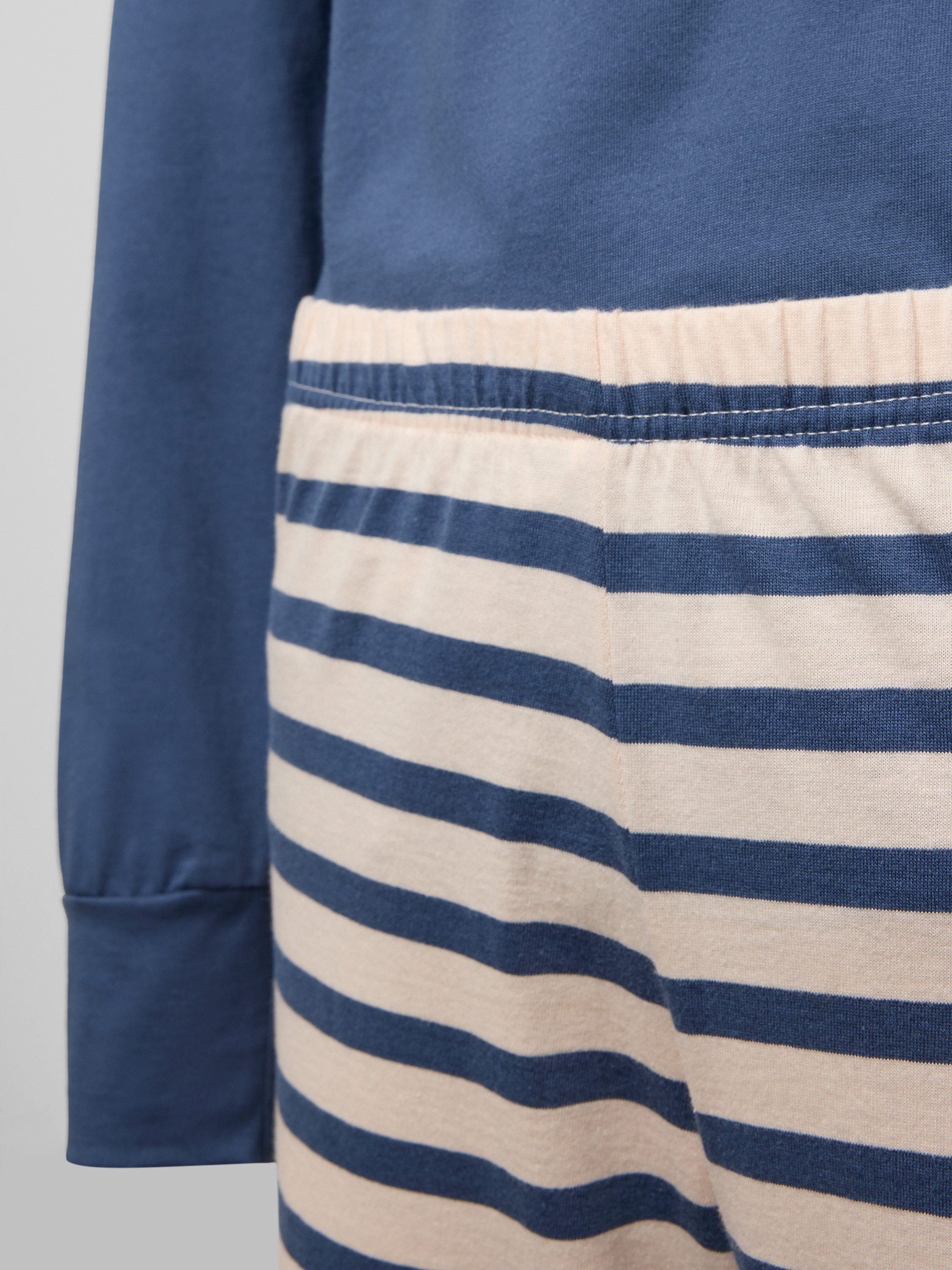 Der Damen Pyjama von Schiesser im Regular Fit Modell 'Schlafan' bringt mit seiner reinen Baumwolle ein angenehmes Tragegefühl in die Nacht. Durch das langärmelige Design und den Rundhalsausschnitt bleibt es stets bequem. Breite Abschlüsse sorgen für einen entspannten Sitz.