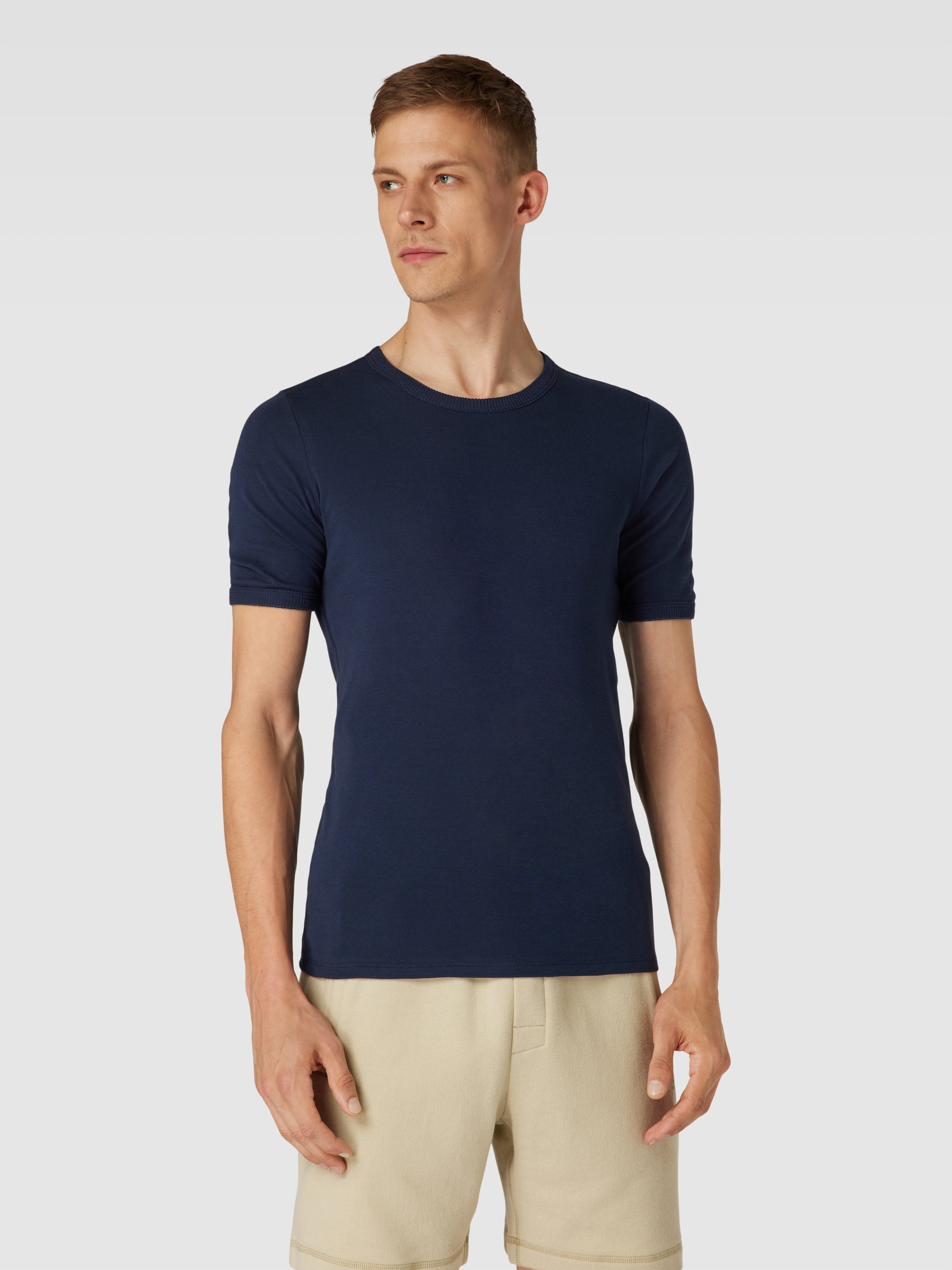 SchiesserT-Shirt mit geripptem Rundhalsausschnitt Modell 'REVIVAL' in dunkelblau