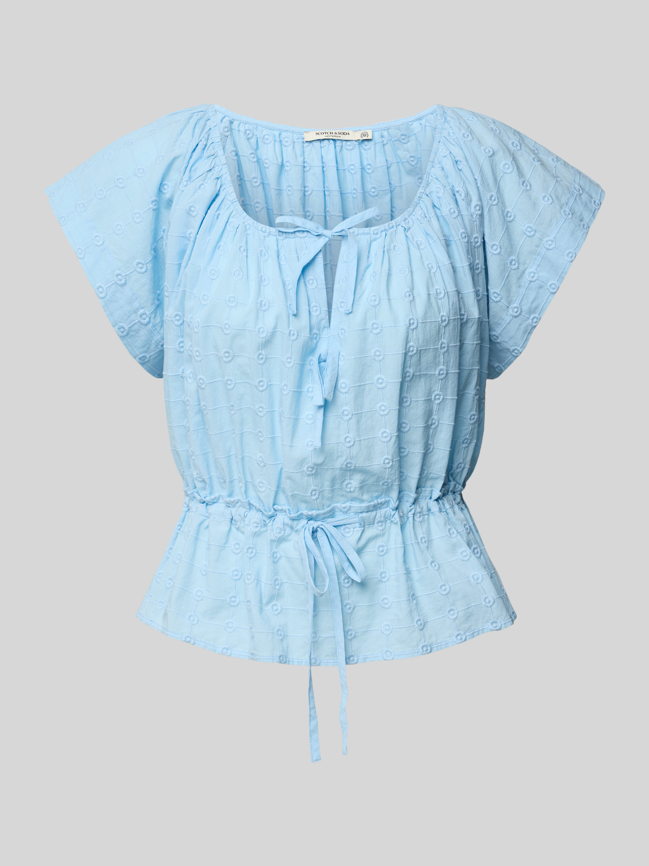 Die Bluse von Scotch & Soda aus reiner Baumwolle kombiniert ein ansprechendes Strukturmuster mit einem eleganten Schlüsselloch-Ausschnitt. Durch den Regular Fit und den Tunnelzug in der Taille sitzt sie angenehm und bietet Bewegungsfreiheit, während die Kappärmel einen lässigen Akzent setzen.