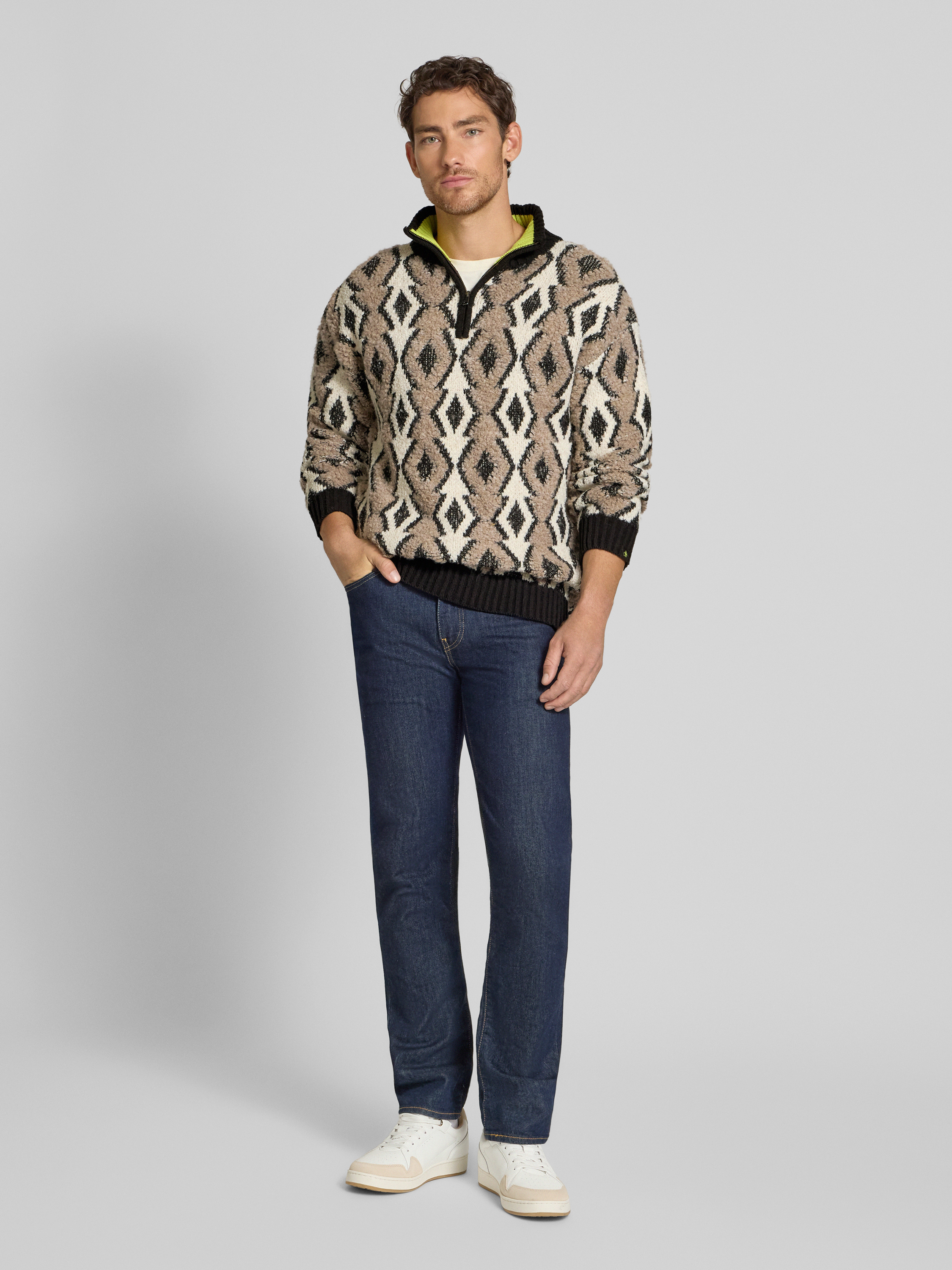 Der Herrenpullover von Scotch & Soda, Modell 'ARGYLES', verbindet eine klassische Passform mit weichem Materialmix, der durch Alpaka-Anteil angenehm auf der Haut liegt. Ein Stehkragen und dezente Abschlüsse ergänzen das zurückhaltende Design. So eignet sich das Oberteil für vielseitige Kombinationen im Alltag.