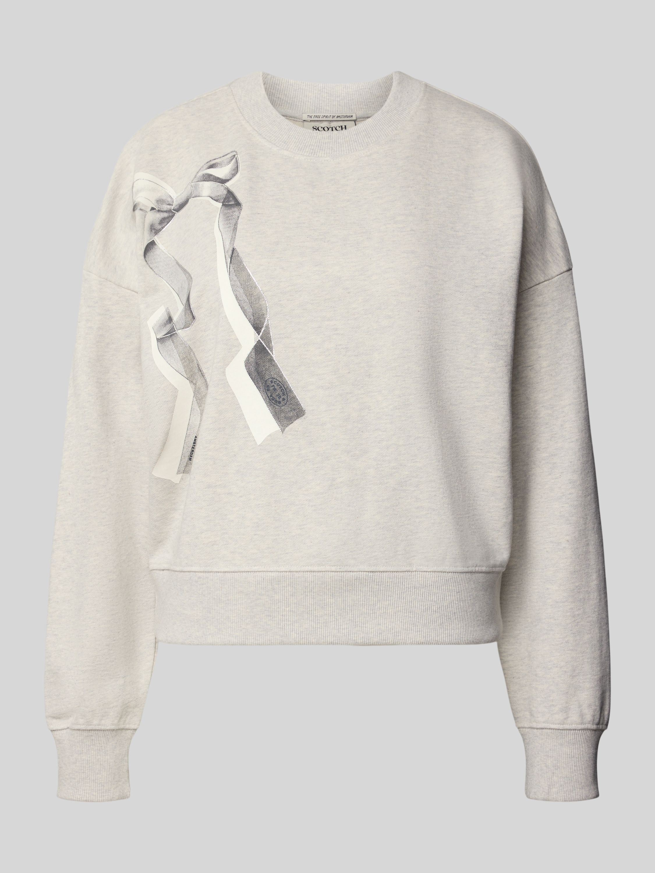 Das Damen Sweatshirt von Scotch & Soda überzeugt durch einen lockeren Schnitt, der für angenehme Bewegungsfreiheit sorgt. Reine Baumwolle fühlt sich weich auf der Haut an und bleibt formstabil. Der runde Ausschnitt und der farbenfrohe Motiv-Print bringen Abwechslung in den Alltag.