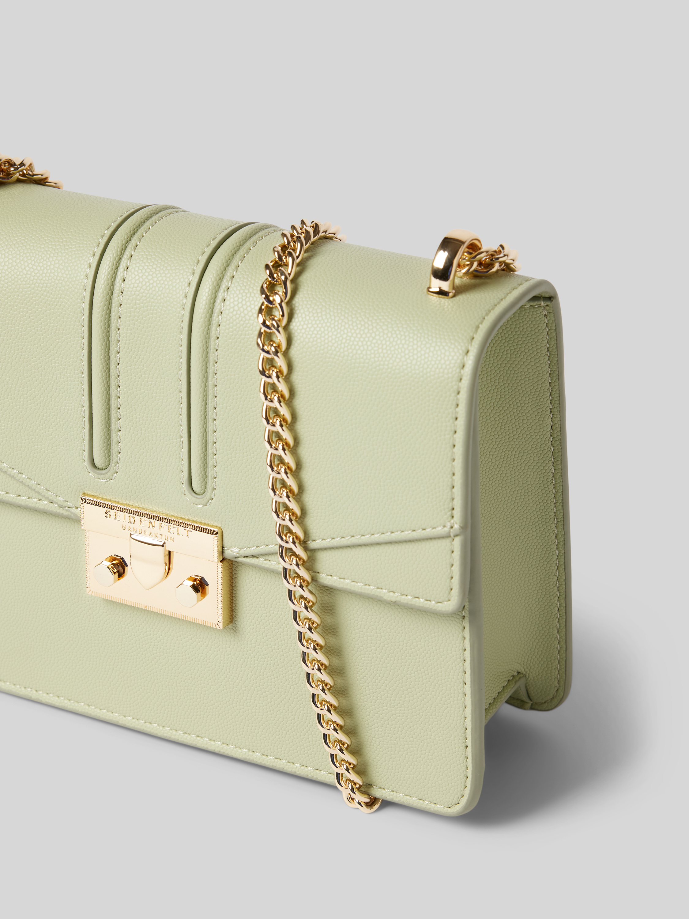 Die Handtasche in Leder-Optik Modell 'Roros' von Seidenfelt kombiniert Eleganz mit Funktionalität. Durch den praktischen Klickverschluss bleibt der Inhalt sicher verstaut, während der metallic Schulterriemen für einen Hauch von Glamour sorgt. Ziernähte verleihen der Tasche eine stilvolle Note.