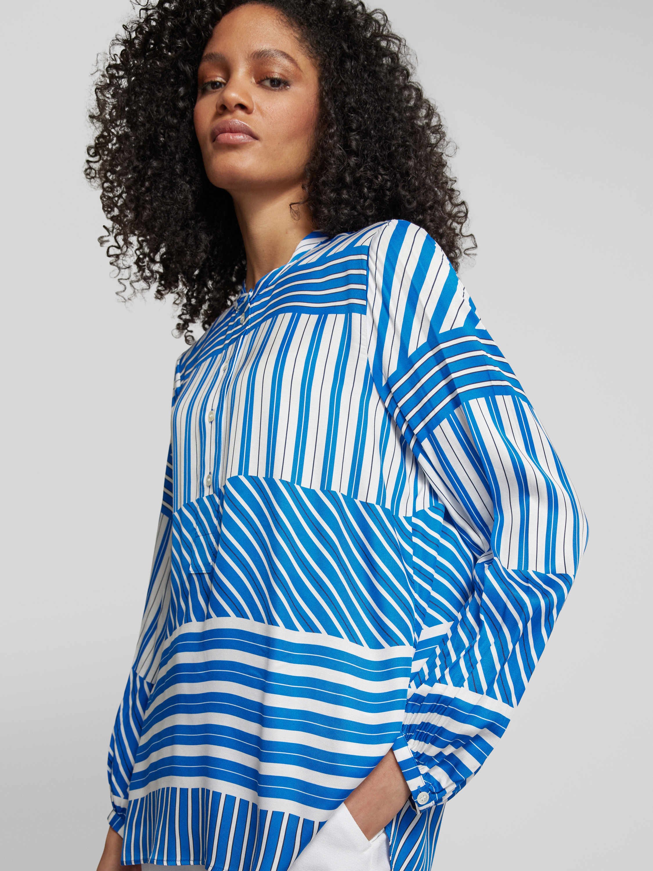 Die Seidensticker Bluse mit Allover-Muster kombiniert lässige Eleganz und angenehme Bewegungsfreiheit durch ihren lockeren Schnitt. Gefertigt aus reiner Viskose, fühlt sie sich leicht auf der Haut an. Der Rundhalsausschnitt und die Sportmanschetten verleihen dem Design eine moderne Note.