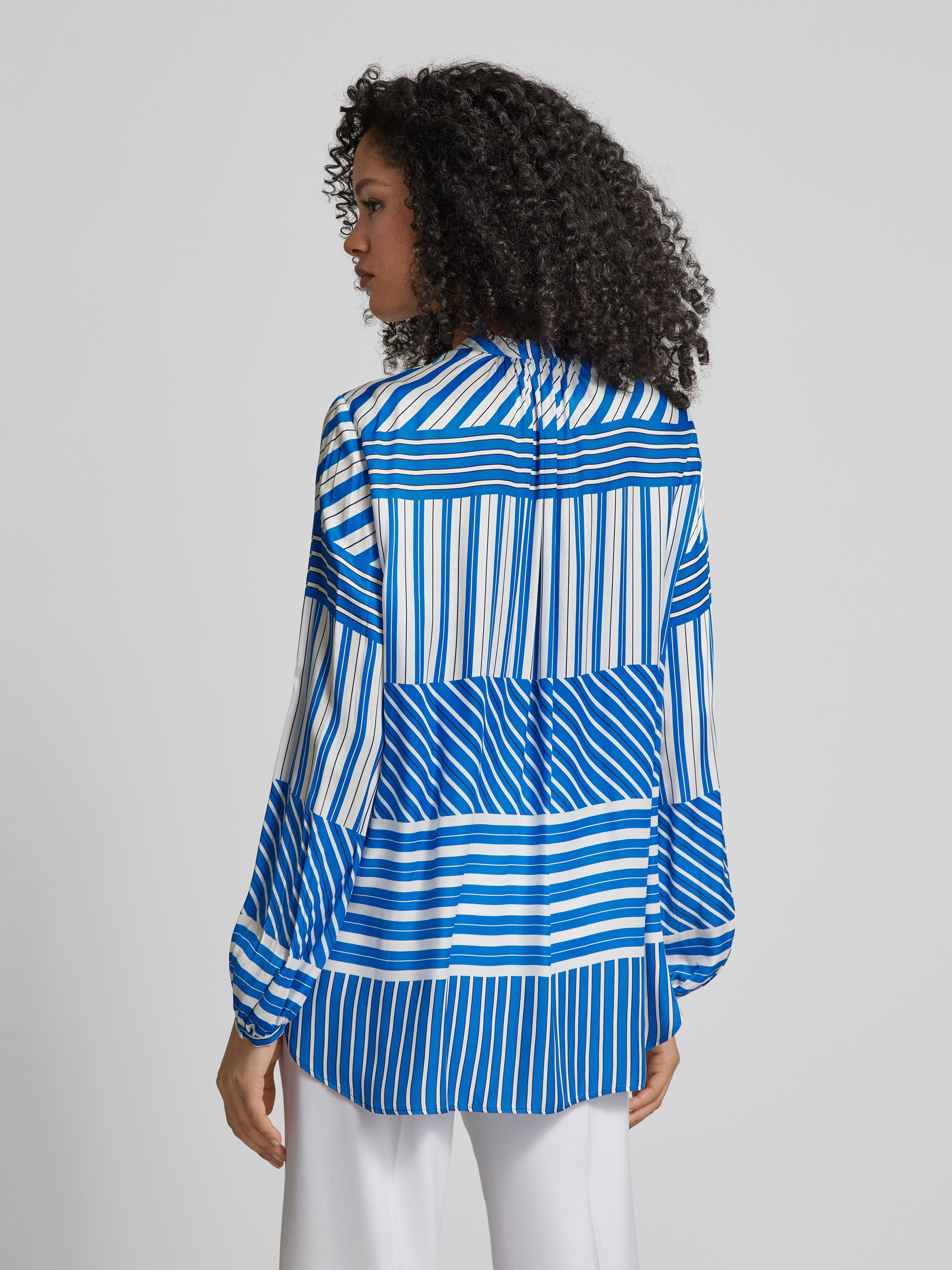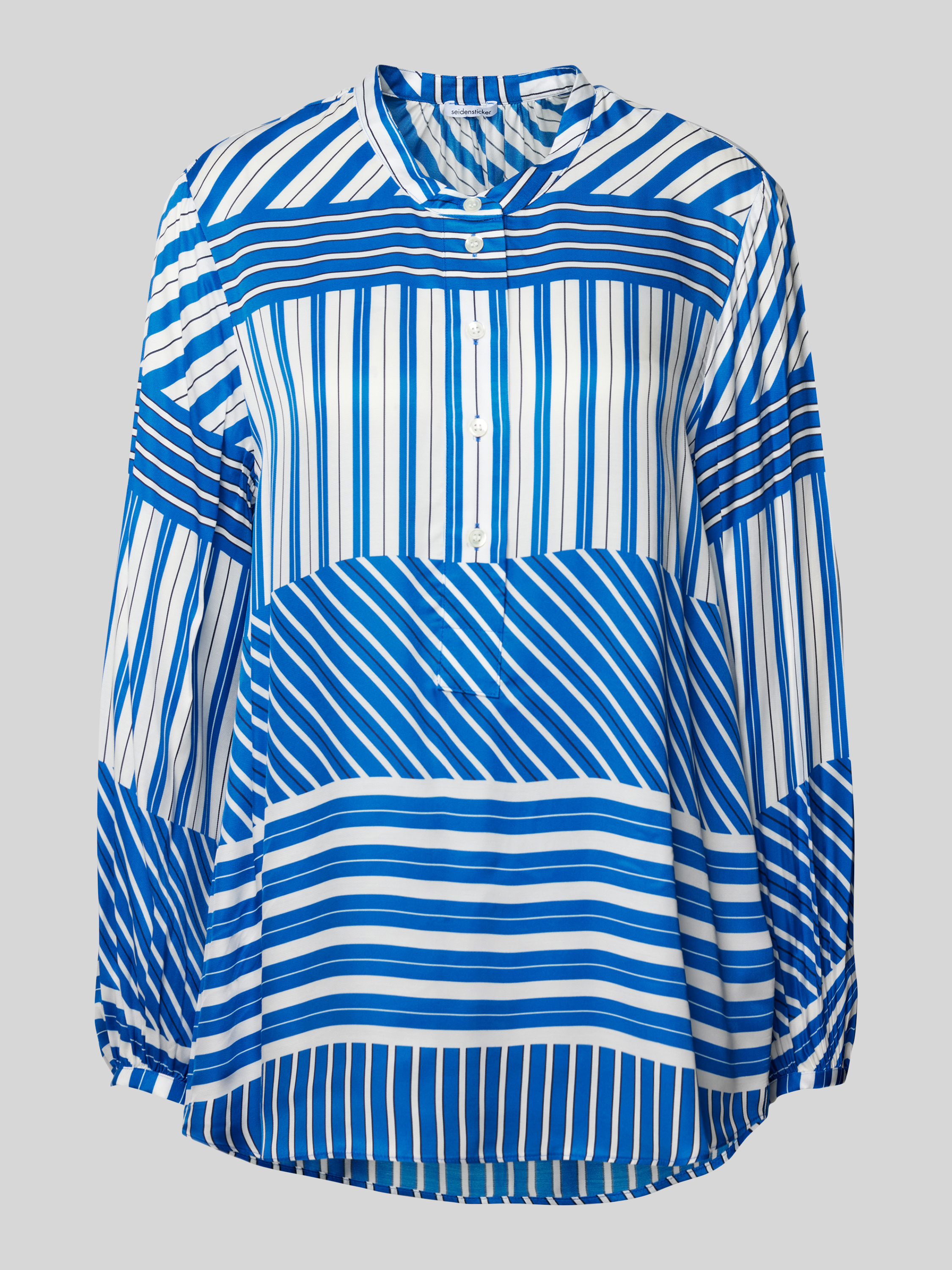 SeidenstickerBluse mit Allover-Muster in blau
