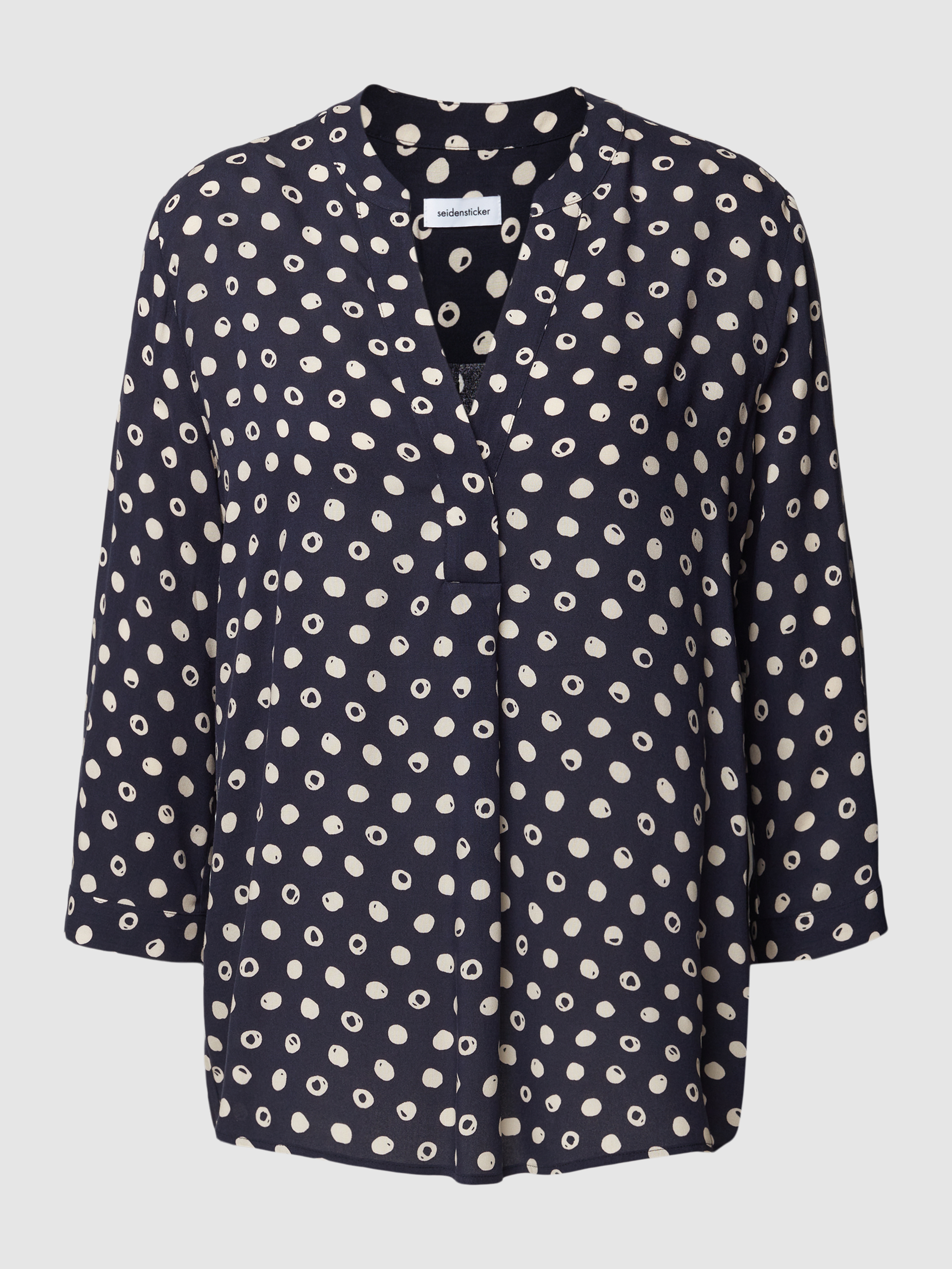 SeidenstickerBlusenshirt aus Viskose mit 3/4-Arm in marine