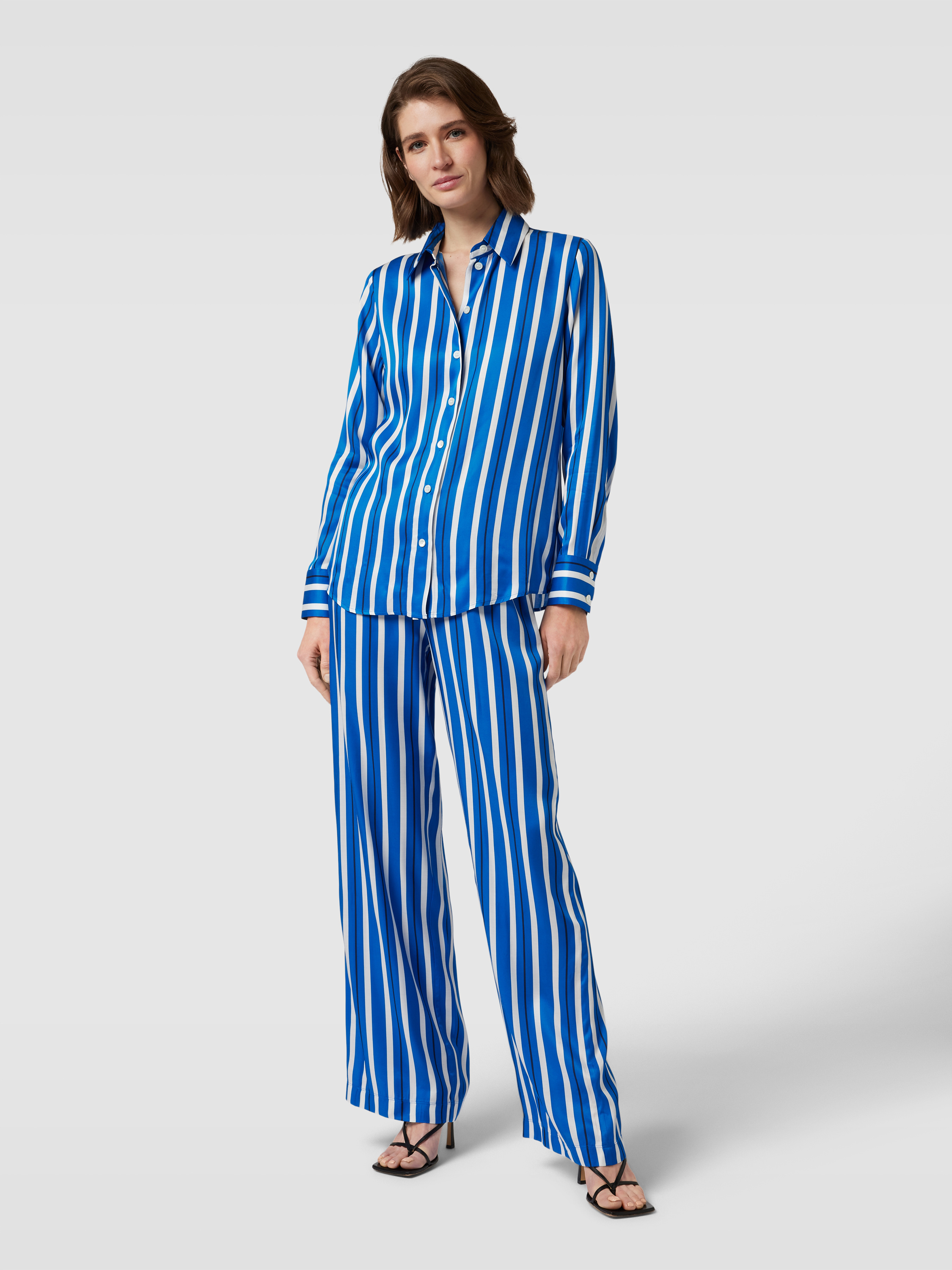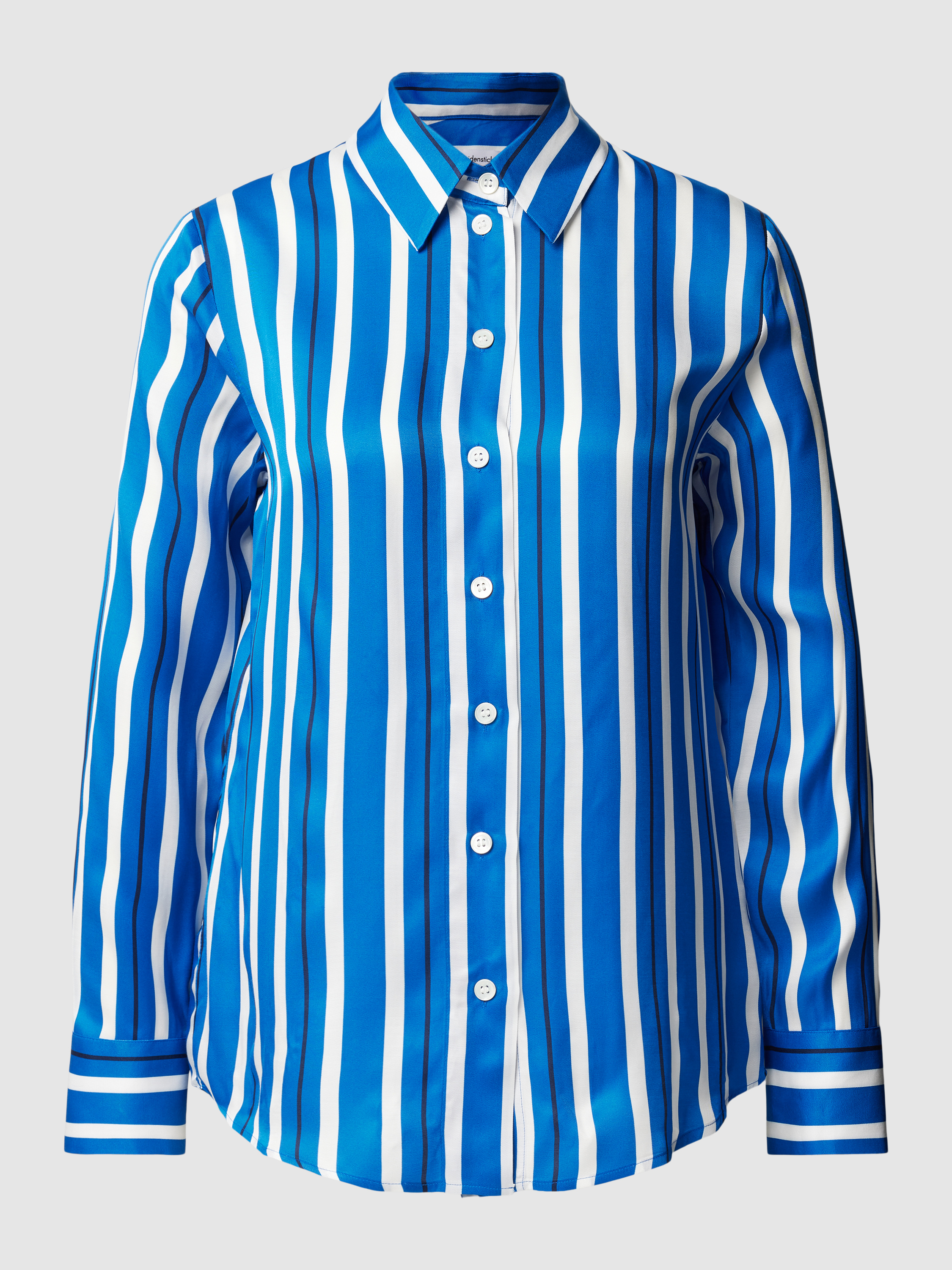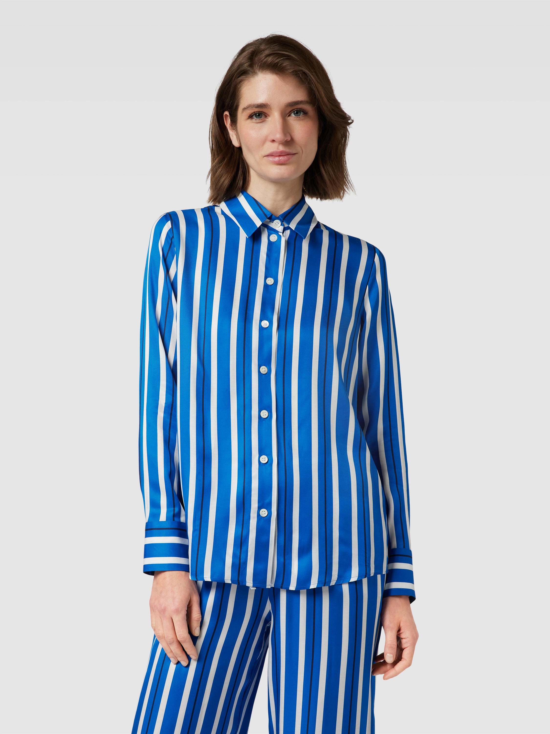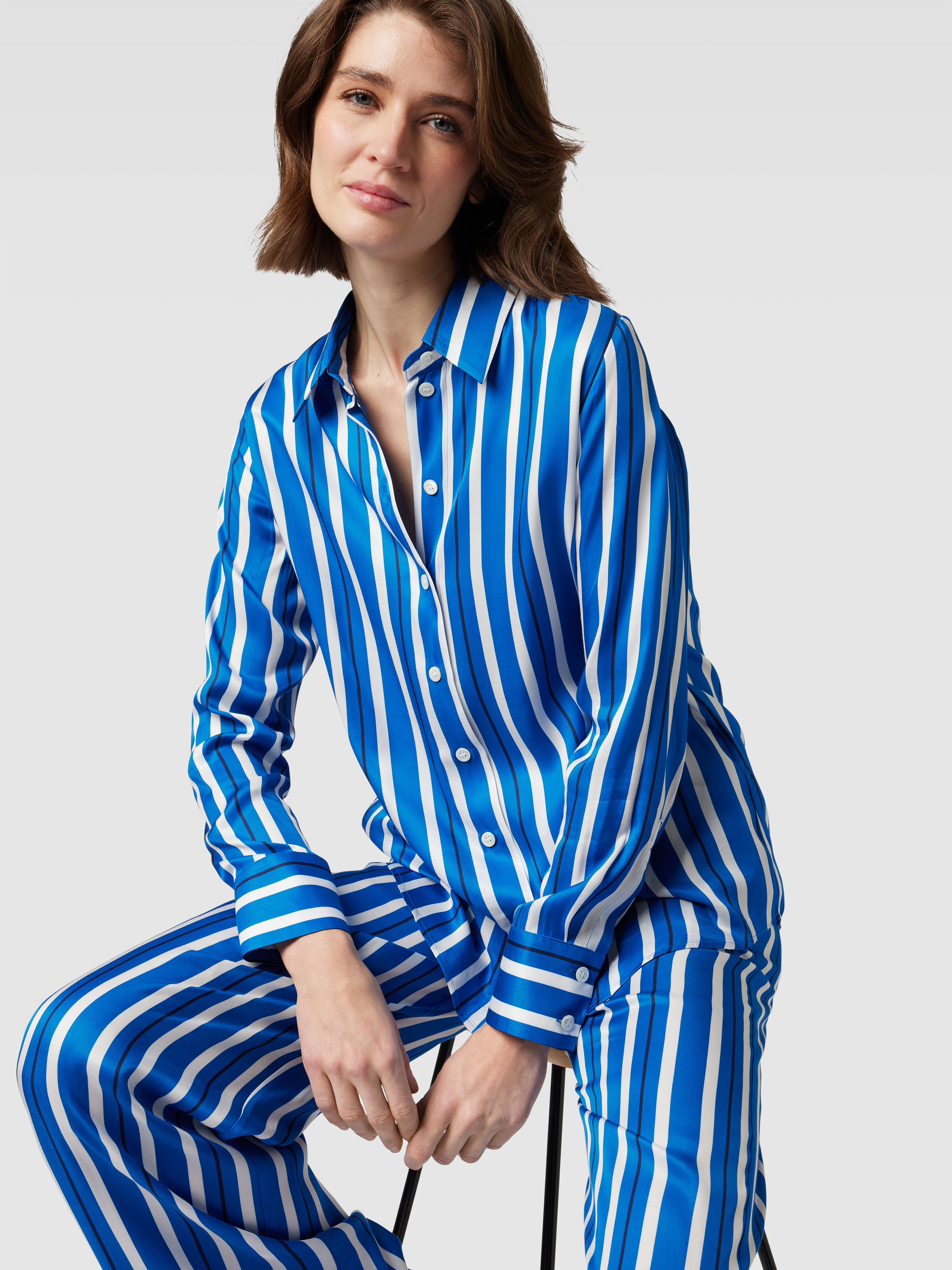 SeidenstickerHemdbluse mit Streifenmuster in blau