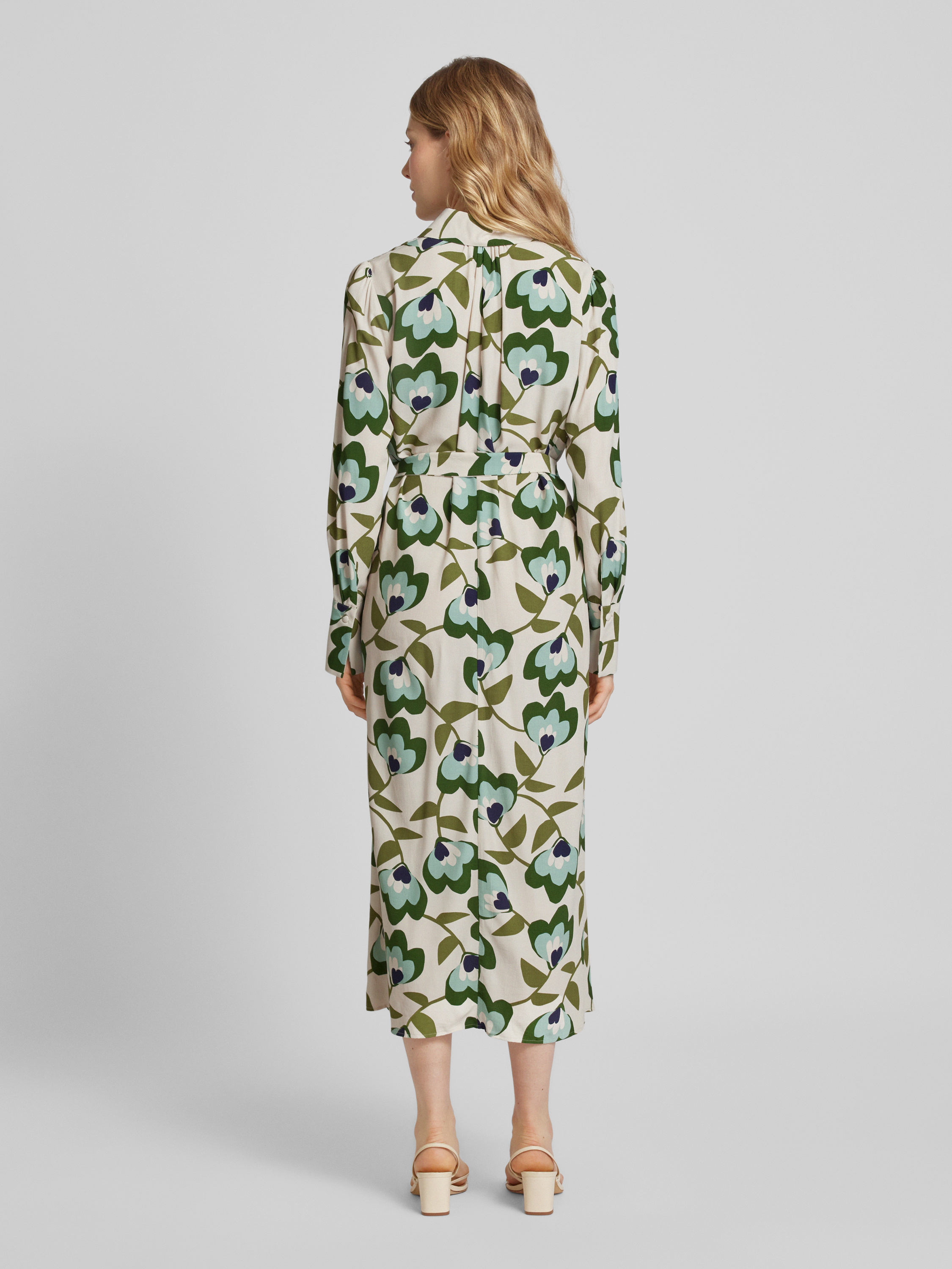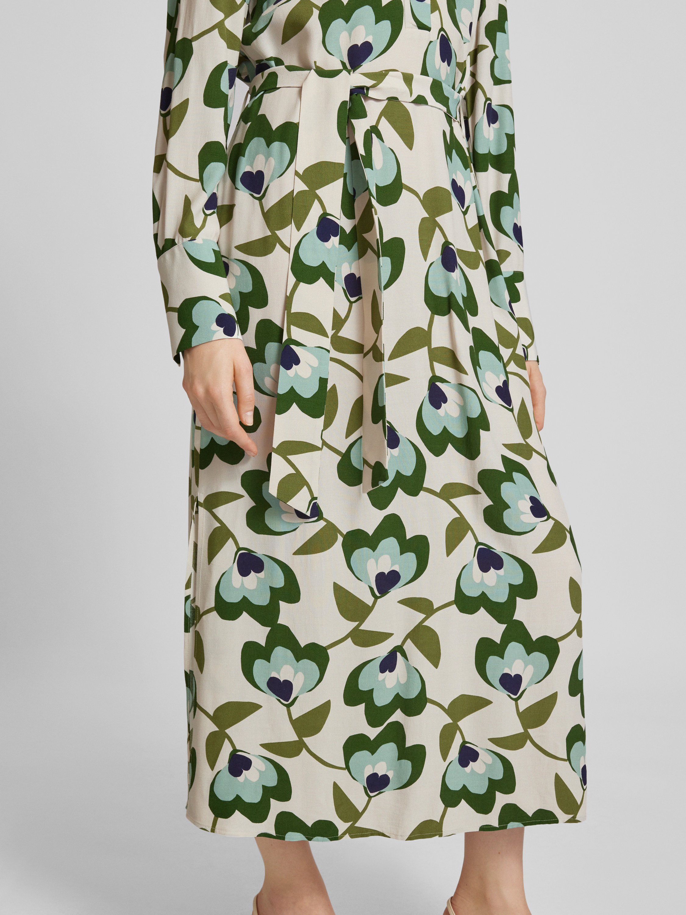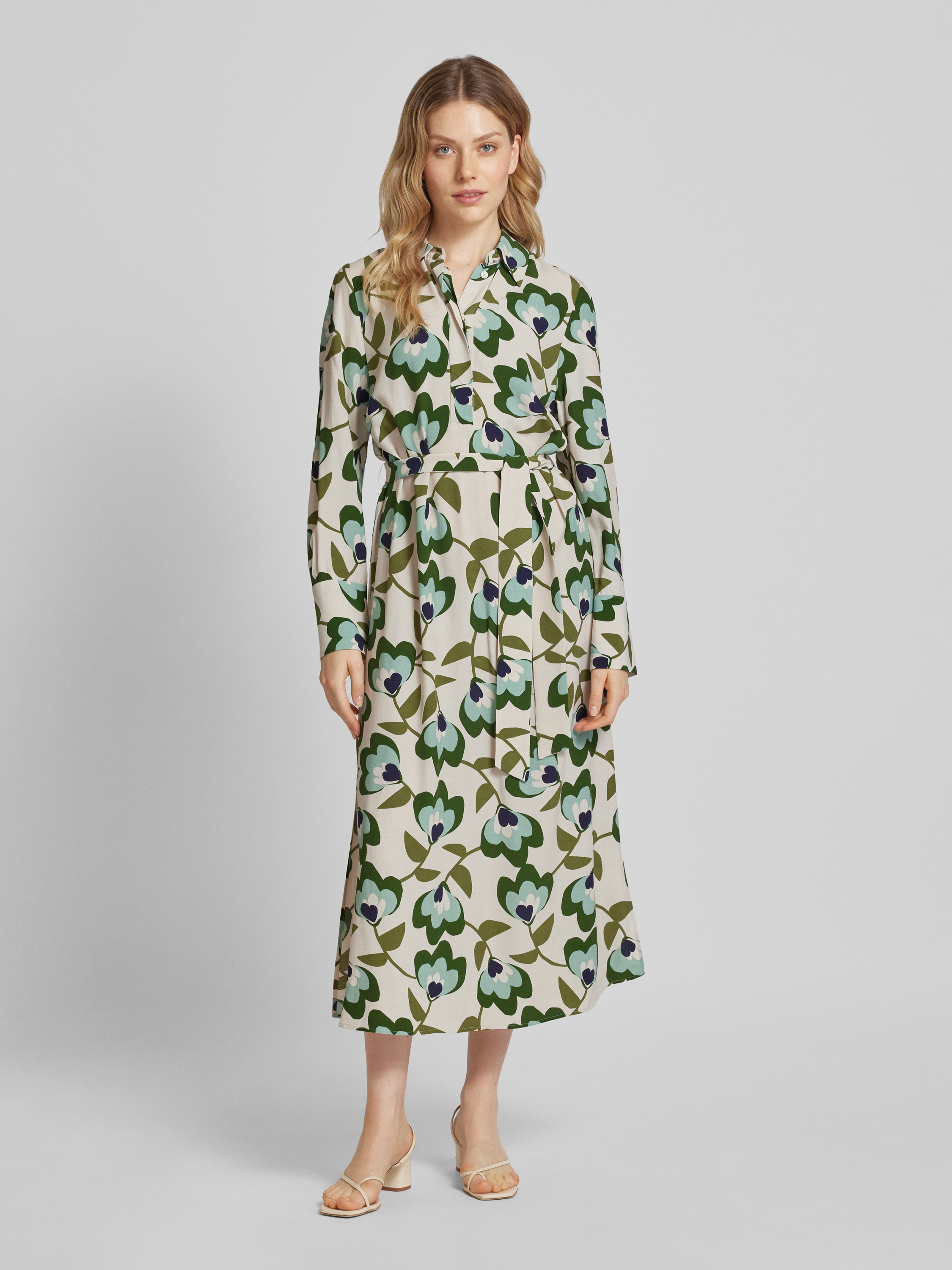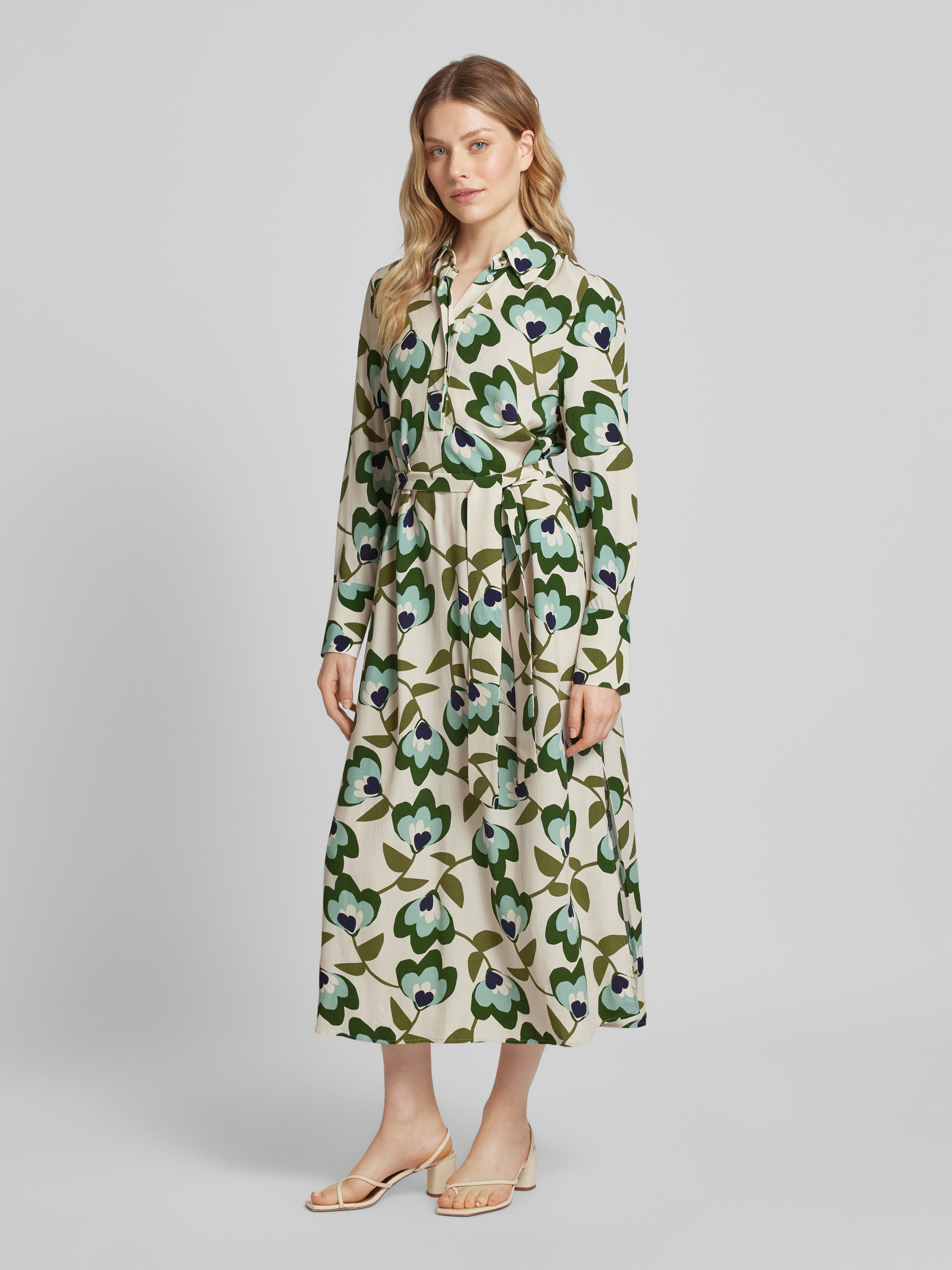 Das Damen Midikleid von Seidensticker aus reiner Viskose kombiniert einen geraden Schnitt mit einem charmanten Retro-Look, der durch einen eleganten Umlegekragen und einen Bindegürtel unterstrichen wird. Dank der verdeckten Knopfleiste erhält es eine dezente, aber stilvolle Ausstrahlung. Ideal für alle, die zeitlose Eleganz schätzen.