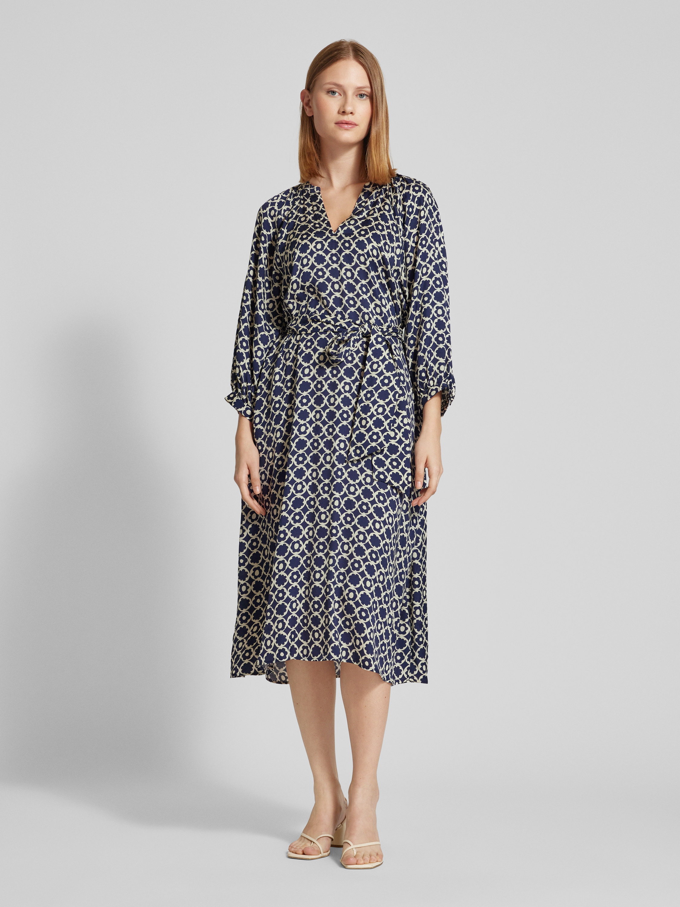 Das Seidensticker Midikleid mit Bindegürtel vereint zeitlose Eleganz mit Komfort. Der gerade Schnitt und der V-Ausschnitt sorgen für eine schmeichelnde Silhouette, während der Bindegürtel die Taille dezent betont. Die 3/4-Ärmel runden das Design harmonisch ab.