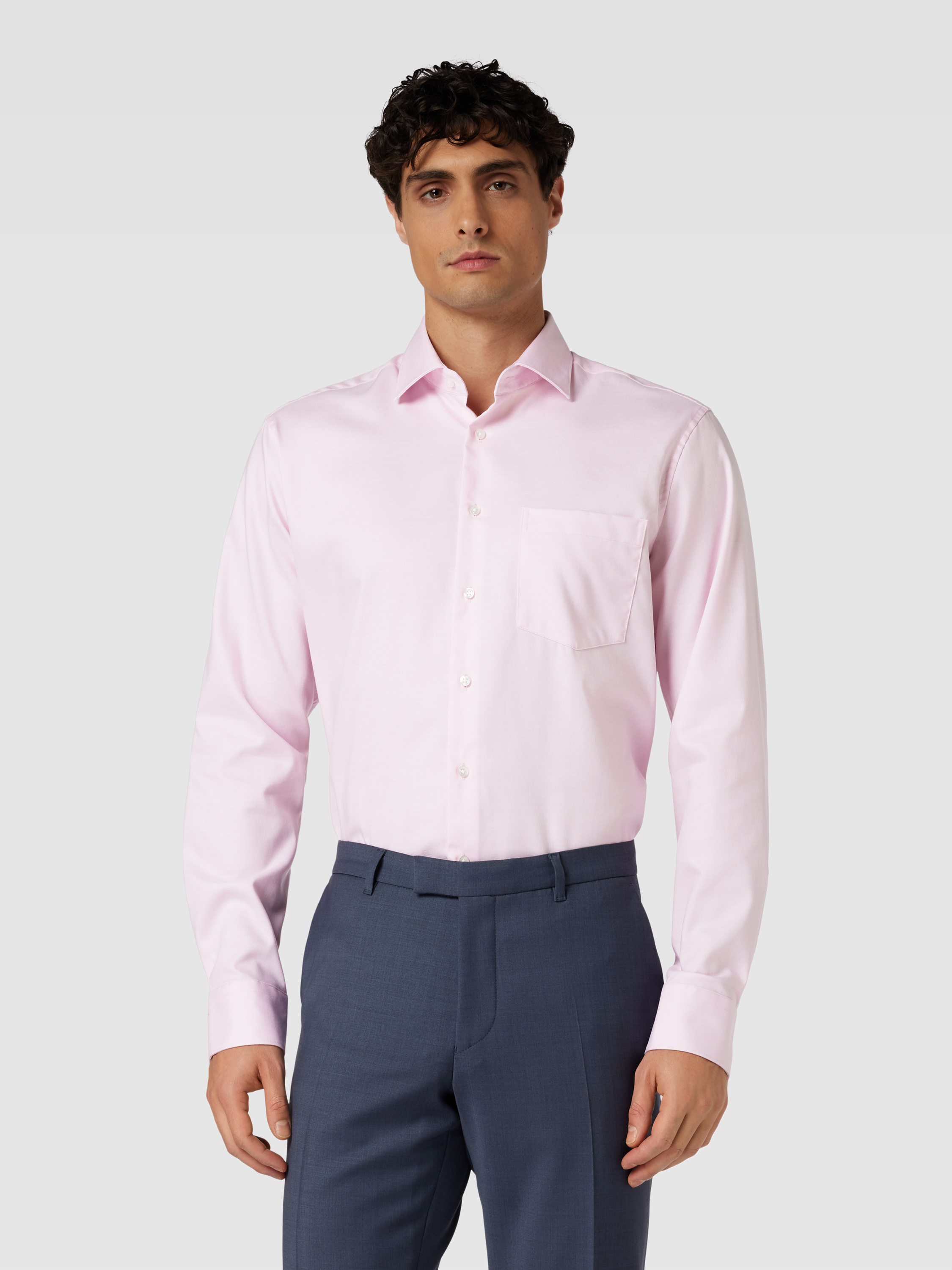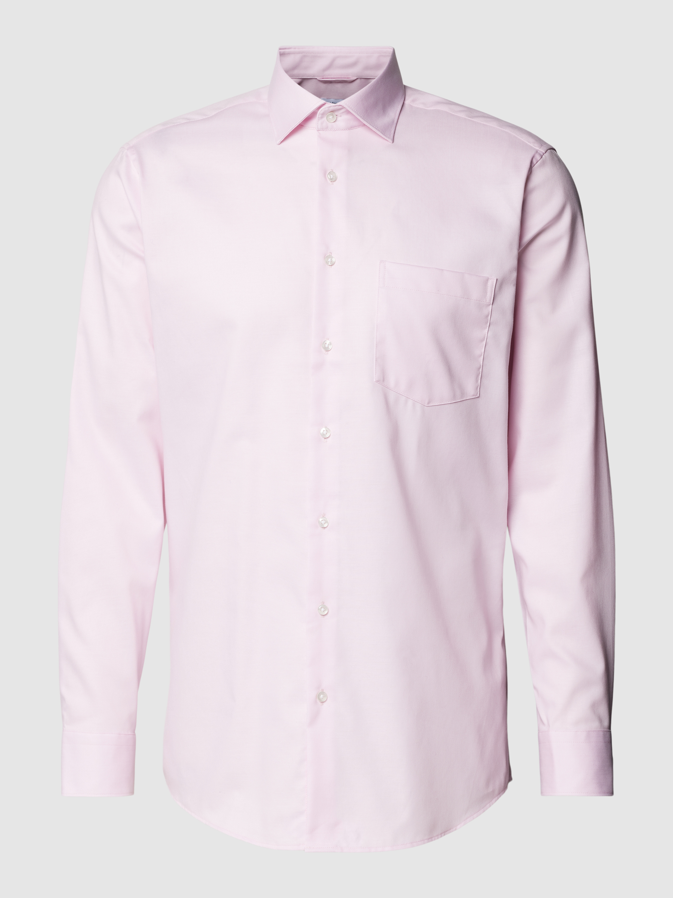 Das Herren Business-Hemd von Seidensticker präsentiert sich im Regular Fit und sorgt mit reiner Baumwolle für angenehmen Tragekomfort. Ein klassischer Kentkragen und die praktische Brusttasche runden den zeitlosen Look ab, wodurch sich das Regular Fit Business-Hemd mit Brusttasche vielseitig einsetzen lässt.