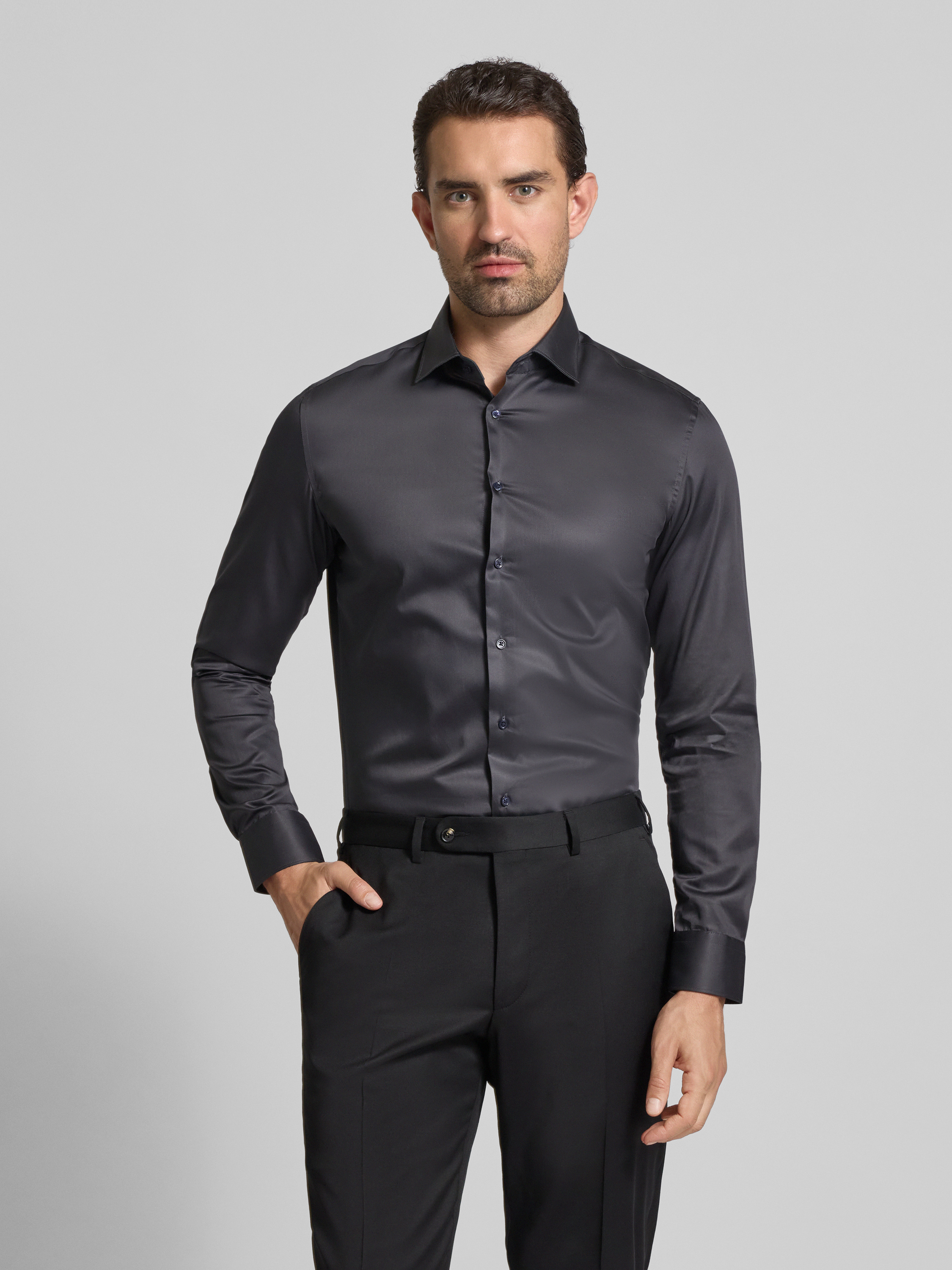 SEIDENSTICKERRegular Fit Business-Hemd mit Kentkragen Modell 'New' in anthrazit