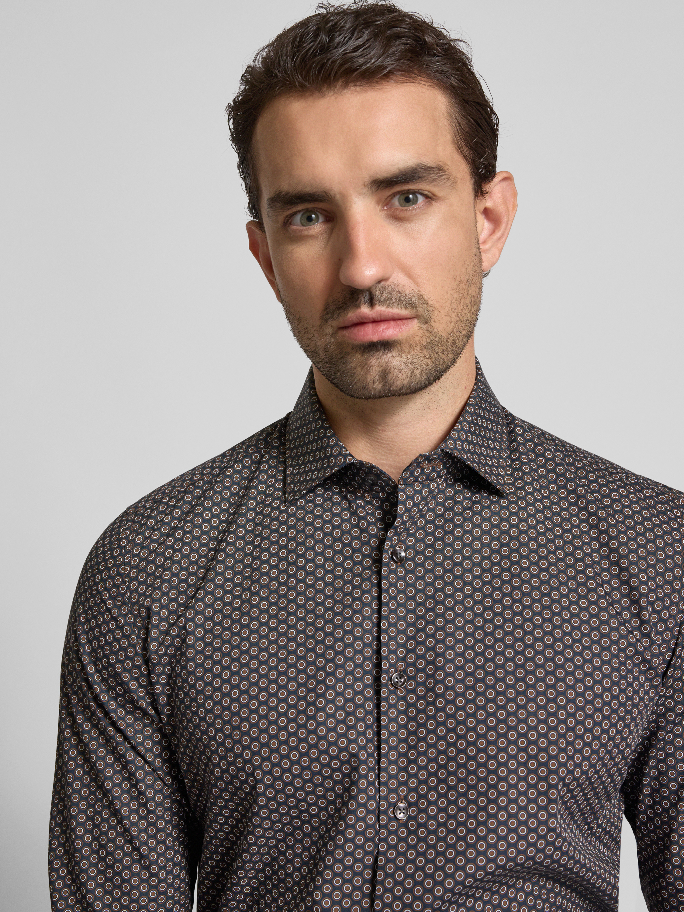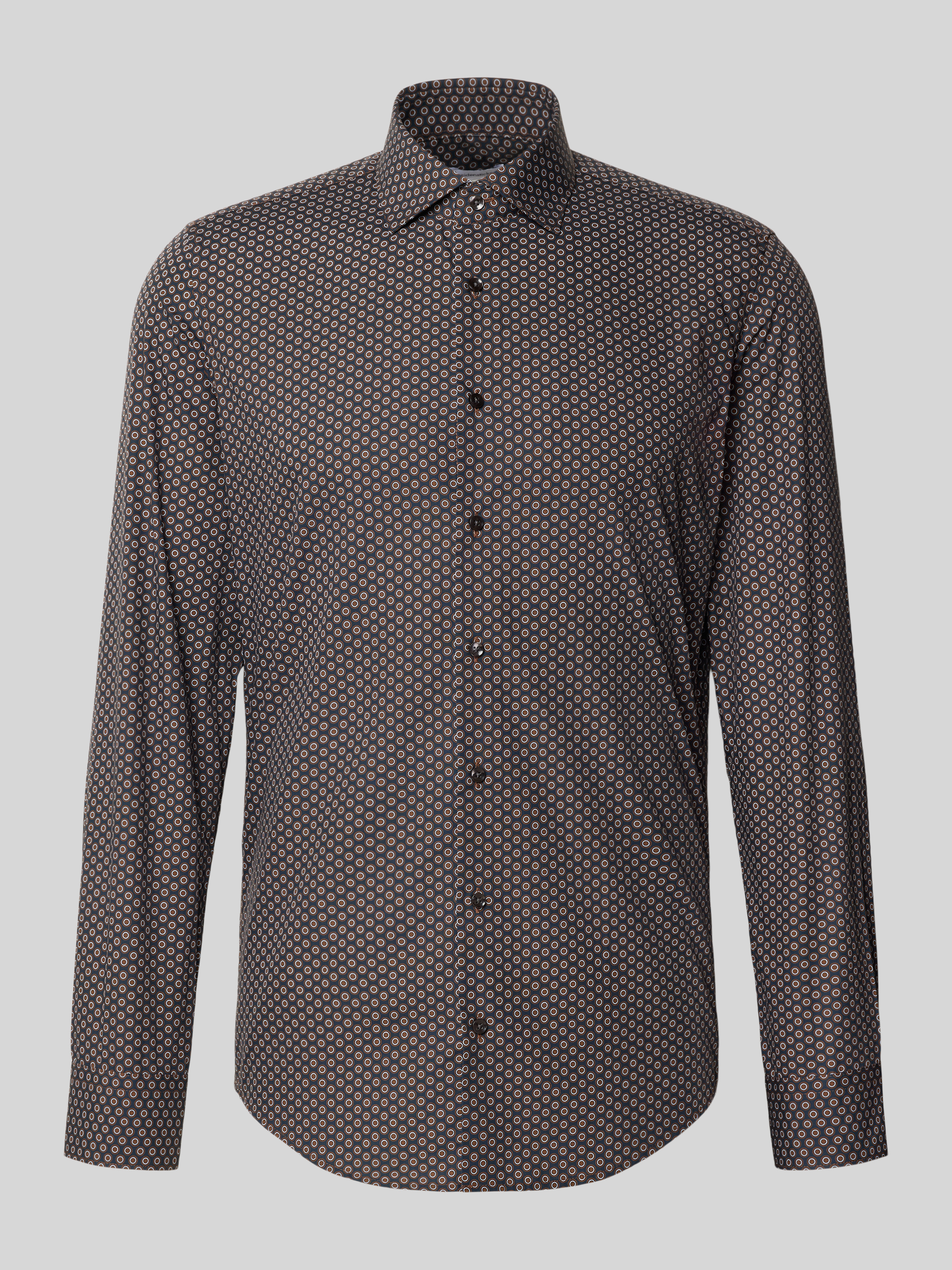SEIDENSTICKERSlim Fit Business-Hemd mit Kentkragen in dunkelbraun