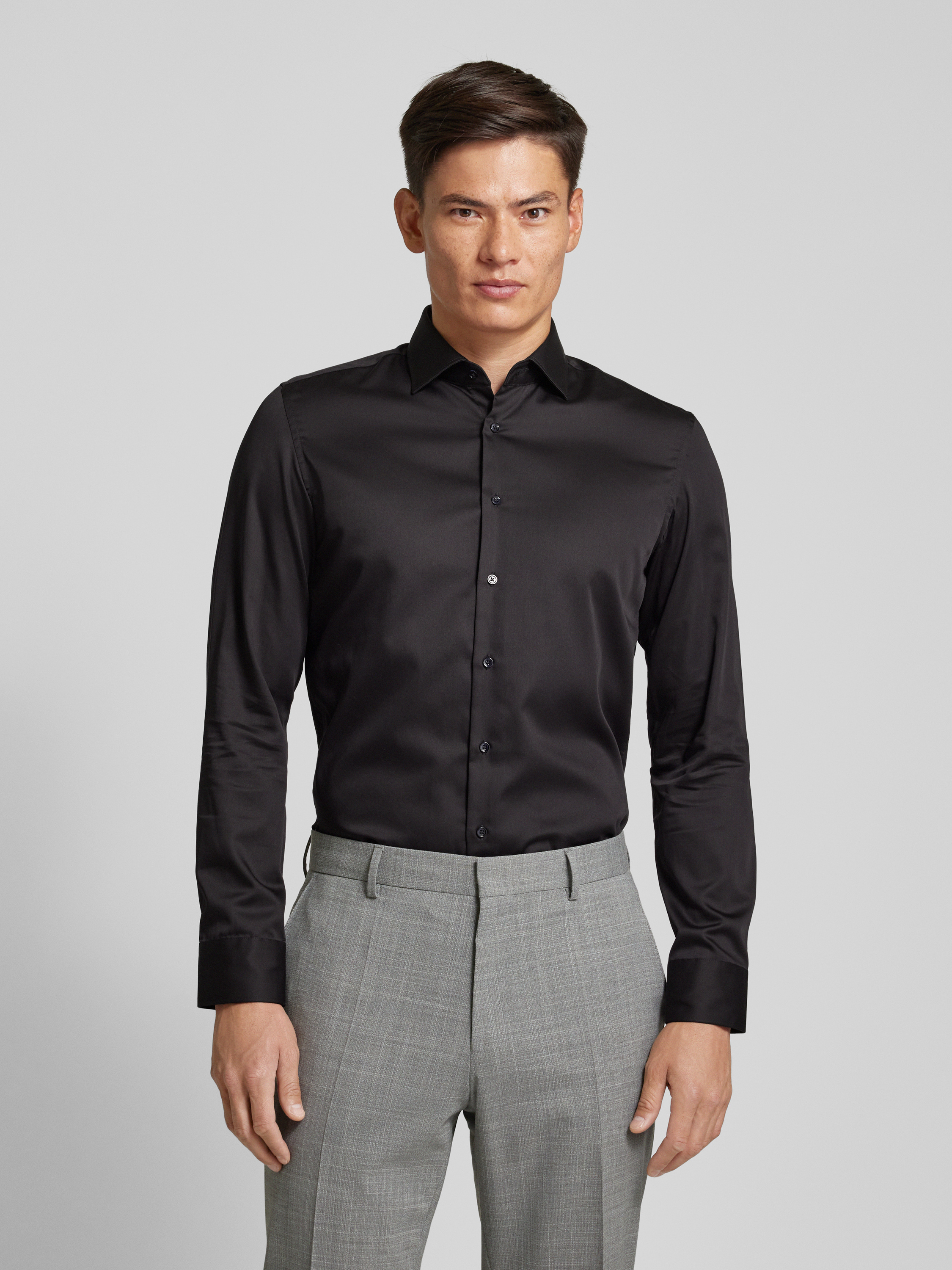 SEIDENSTICKERSlim Fit Businesshemd aus Satin in black