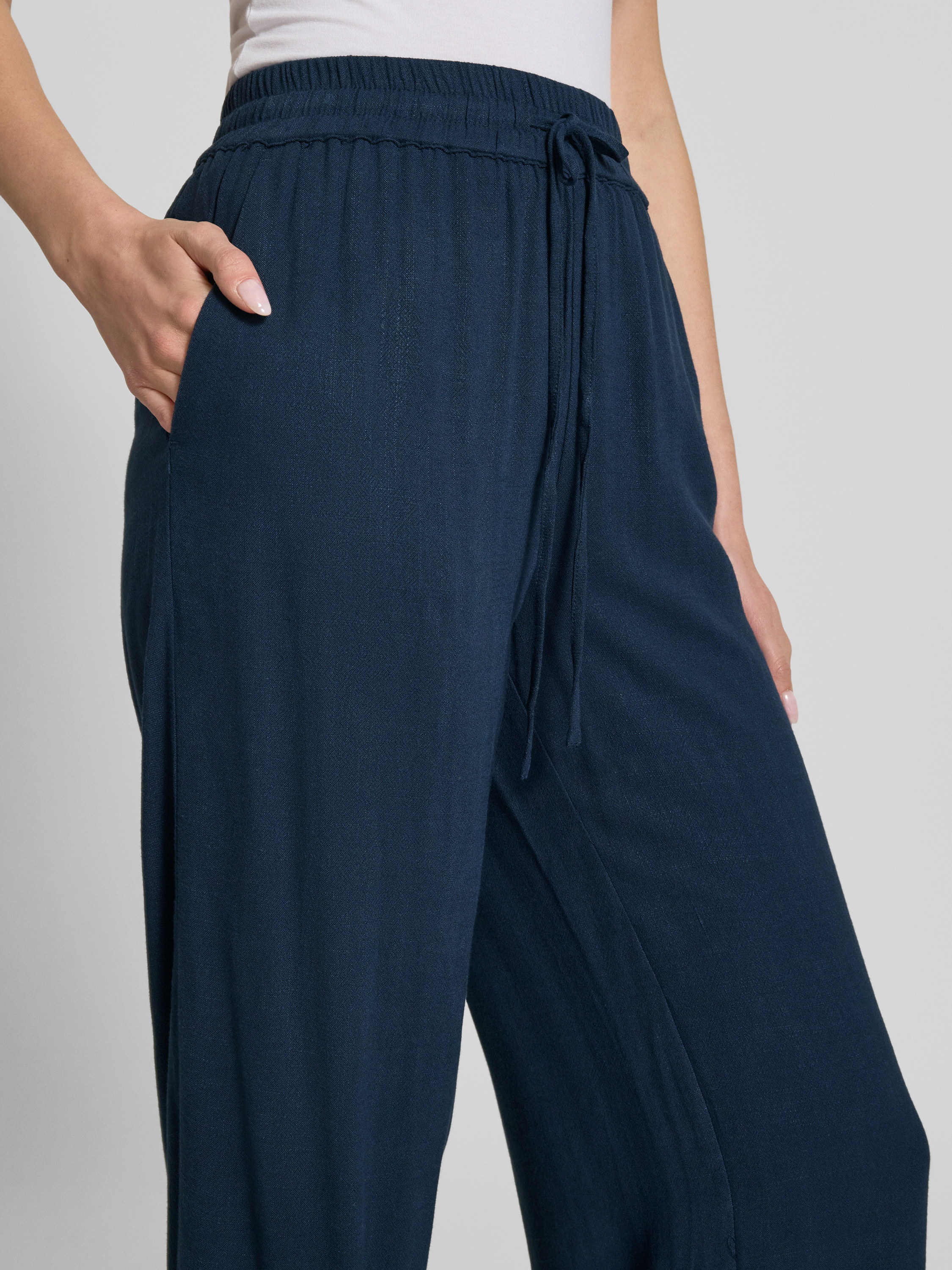 Selected FemmeHigh Waist Hose aus Viskose-Leinen-Mix Modell 'VIVA-GULIA' in dunkelblau