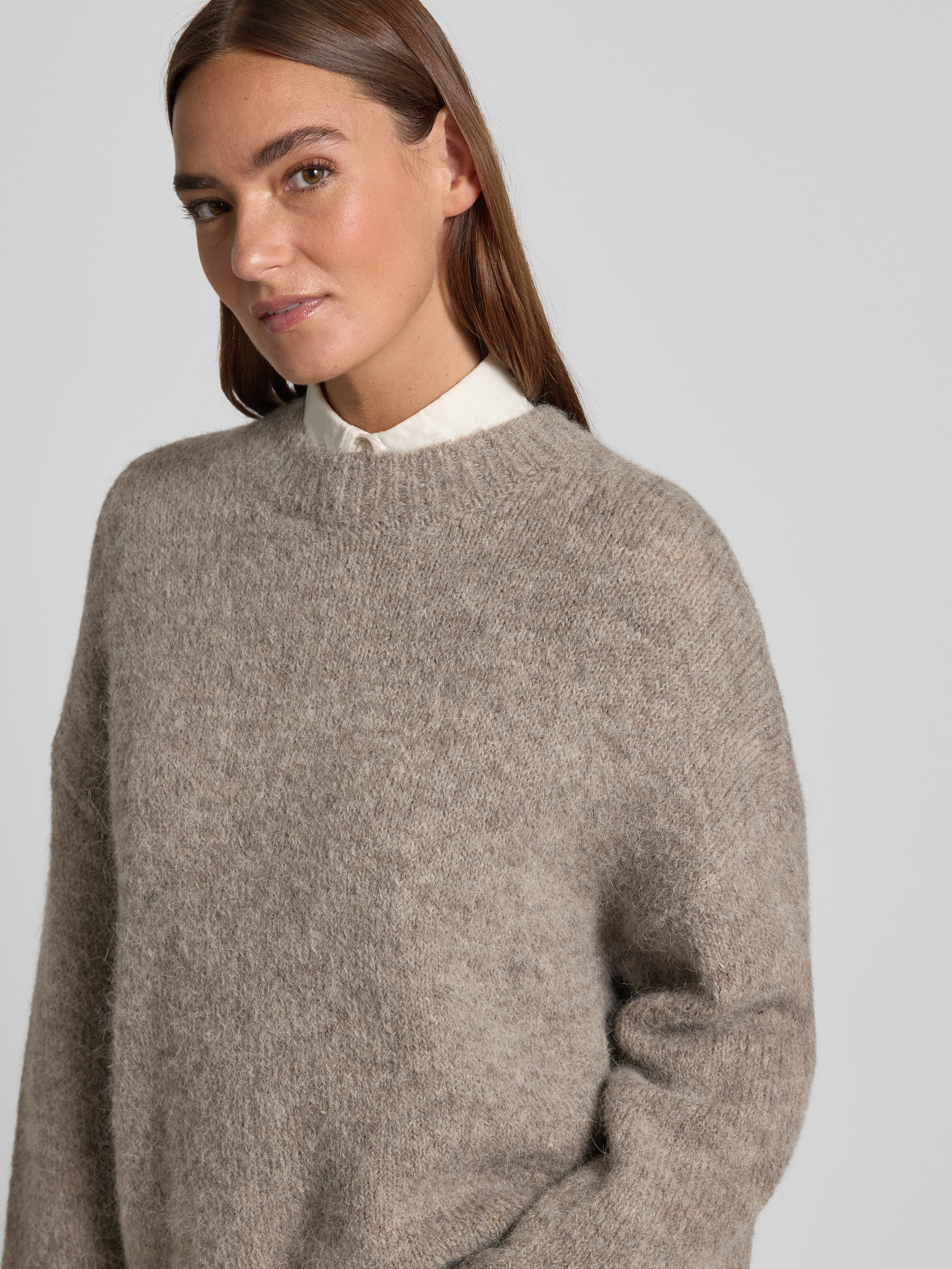 Der Oversized Strickpullover Gabriella von Selected Femme vereint eine angenehm lockere Passform mit dem weichen Griff eines Alpaka-Mix. Durch den schlichten Rundhalsausschnitt und die langen Ärmel entsteht ein entspanntes Gesamtbild, das vielseitig kombinierbar bleibt. Dezente Details sorgen für einen unaufdringlichen Look.