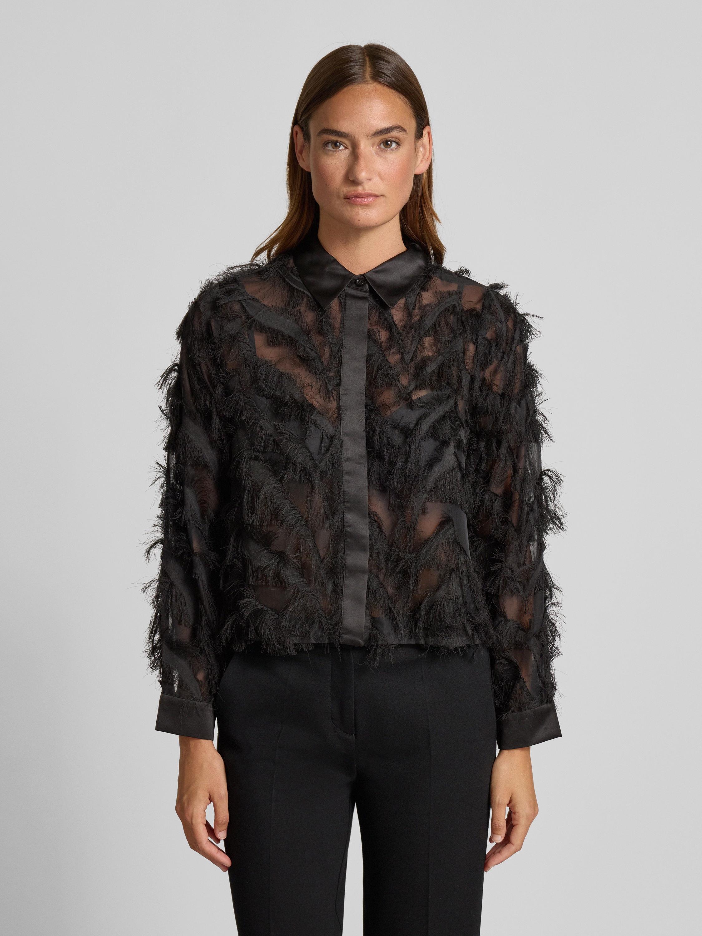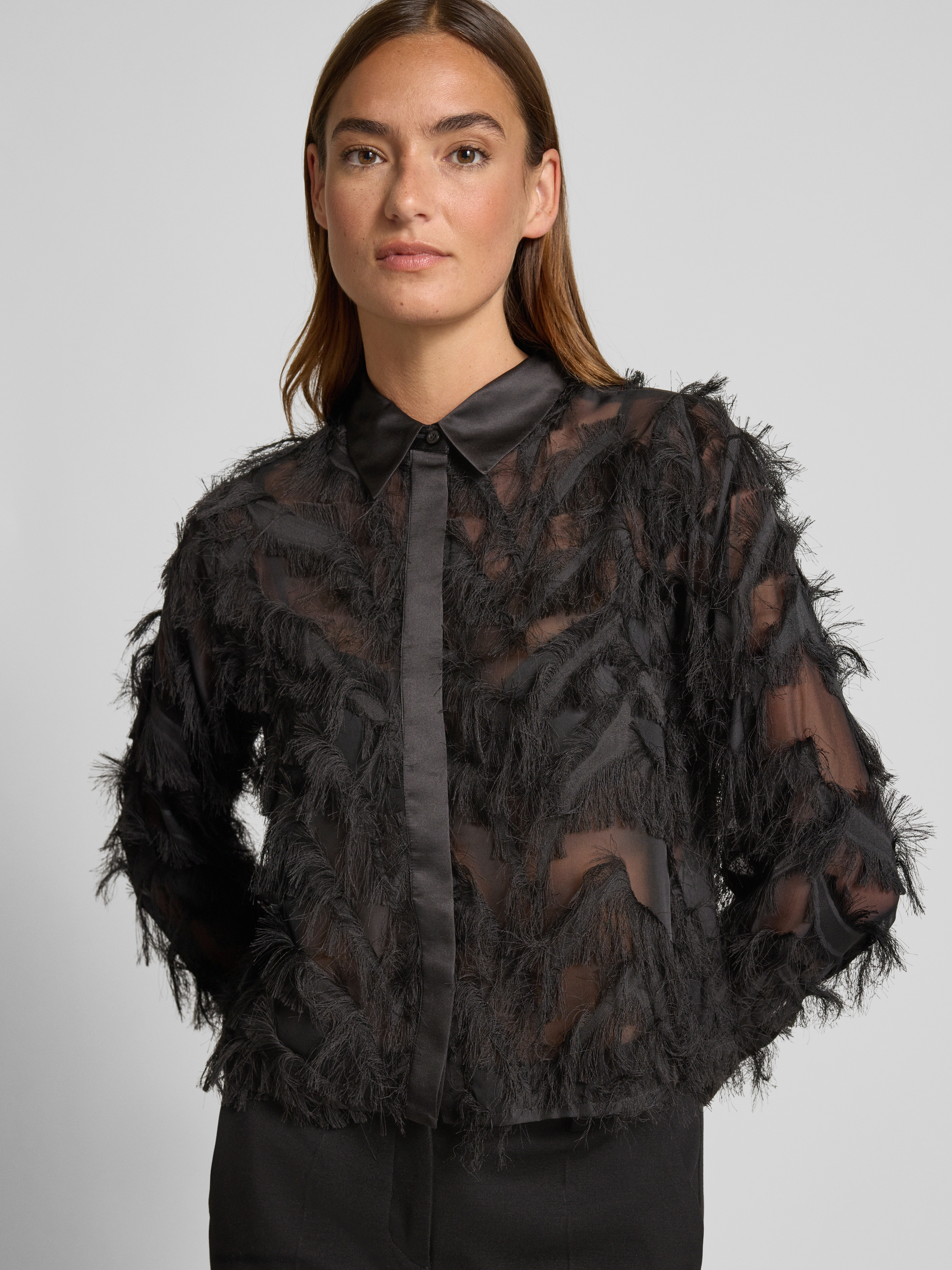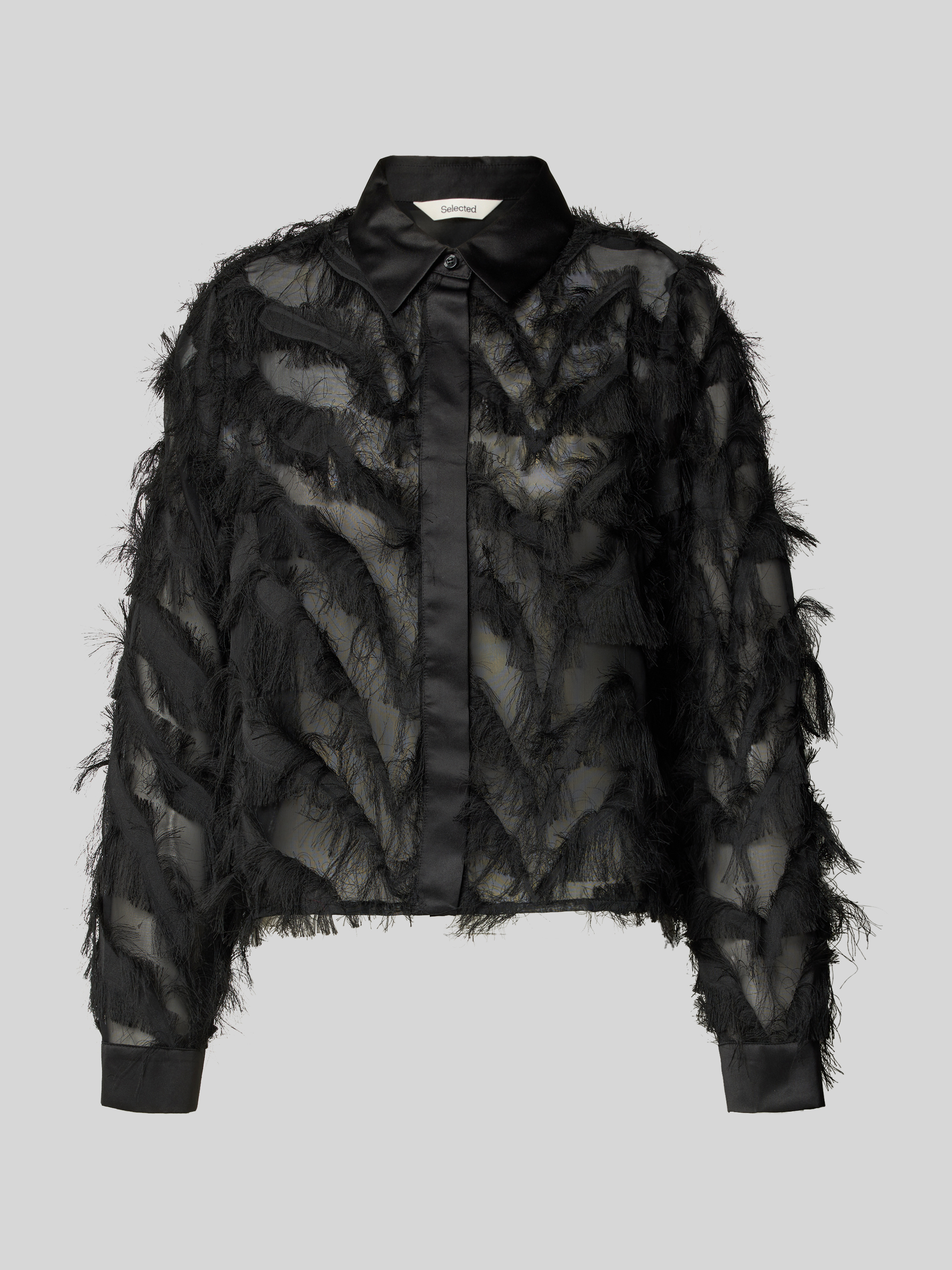 Selected FemmeRegular Fit Hemdbluse in semitransparenter Optik Modell 'MYLINE' in black