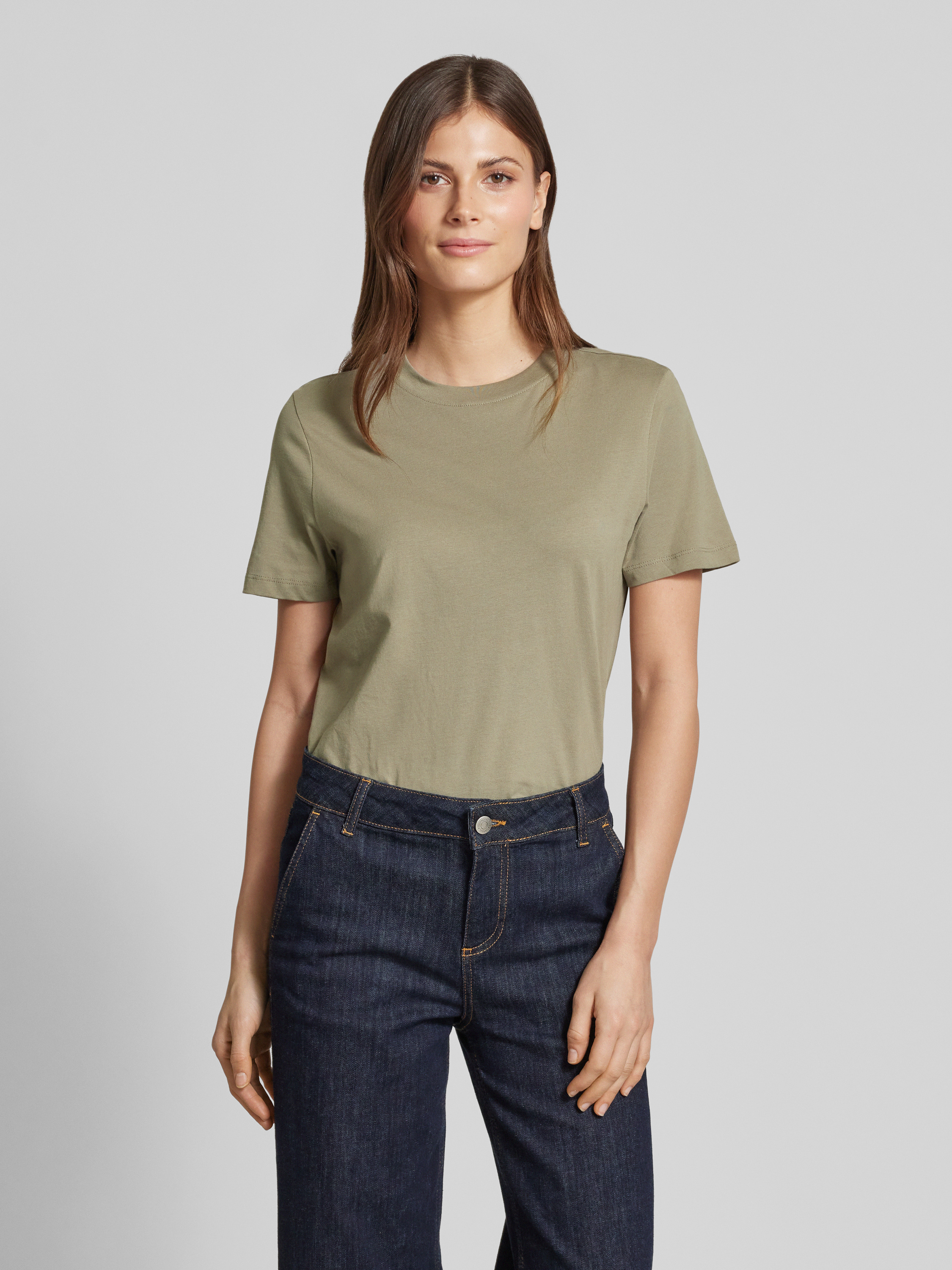 Selected FemmeT-Shirt mit geripptem Rundhalsausschnitt in oliv