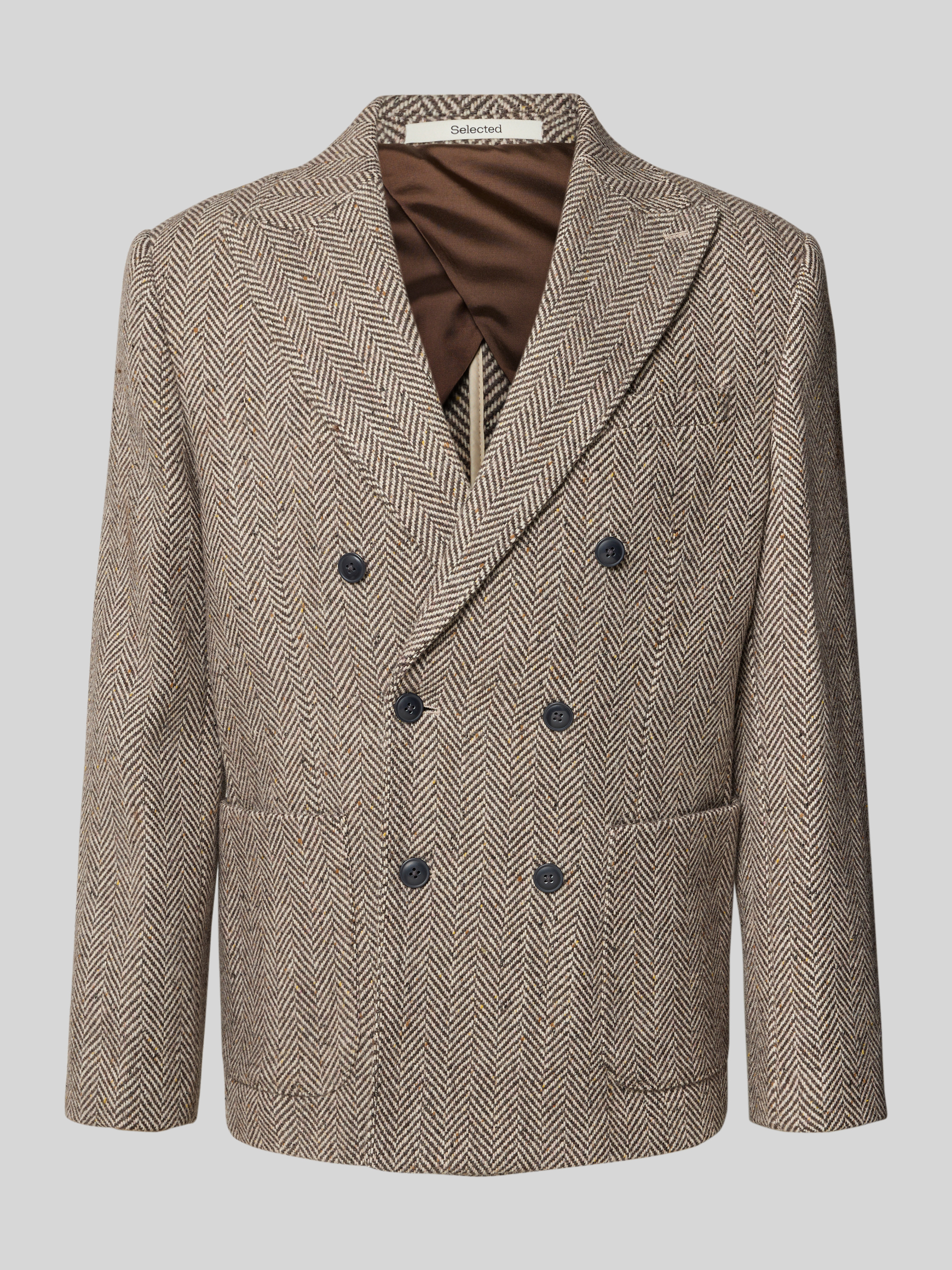 Das Herren Sakko von SELECTED HOMME, Modell Morris, überzeugt durch seine Regular-Fit Passform und einen klassischen Fischgrätenlook in mehrfarbiger Optik. Dank des hochwertigen Woll-Mix trägt es sich angenehm und unterstützt den Tragekomfort im Alltag. Aufgesetzte Eingrifftaschen und ein steigender Reverskragen runden das Gesamtbild ab.
