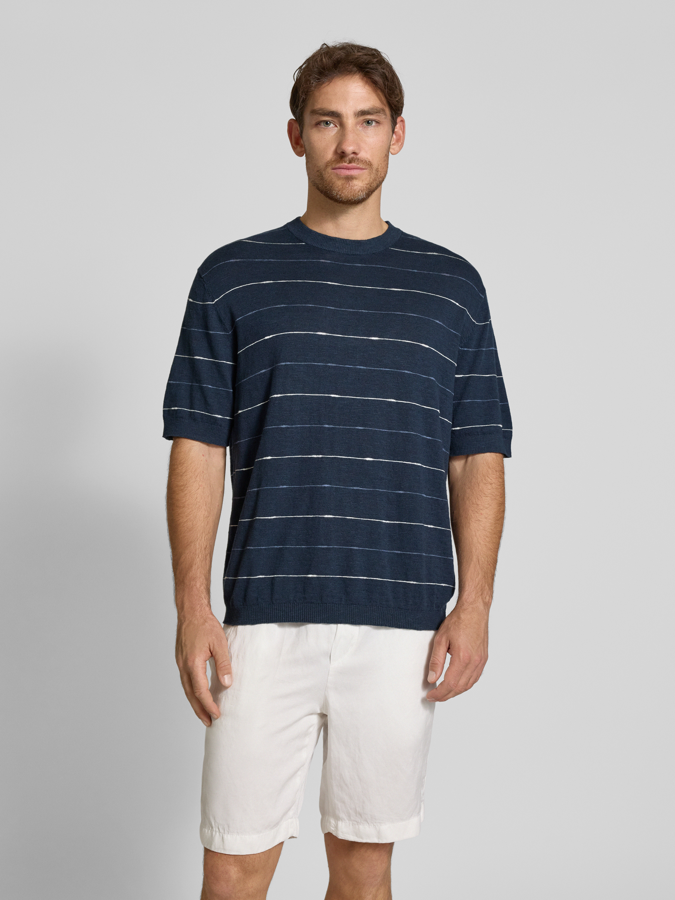 • SELECTED HOMME Regular Fit Strickshirt aus Baumwoll-Leinen-Mix Modell 'BERG SUN' Marine