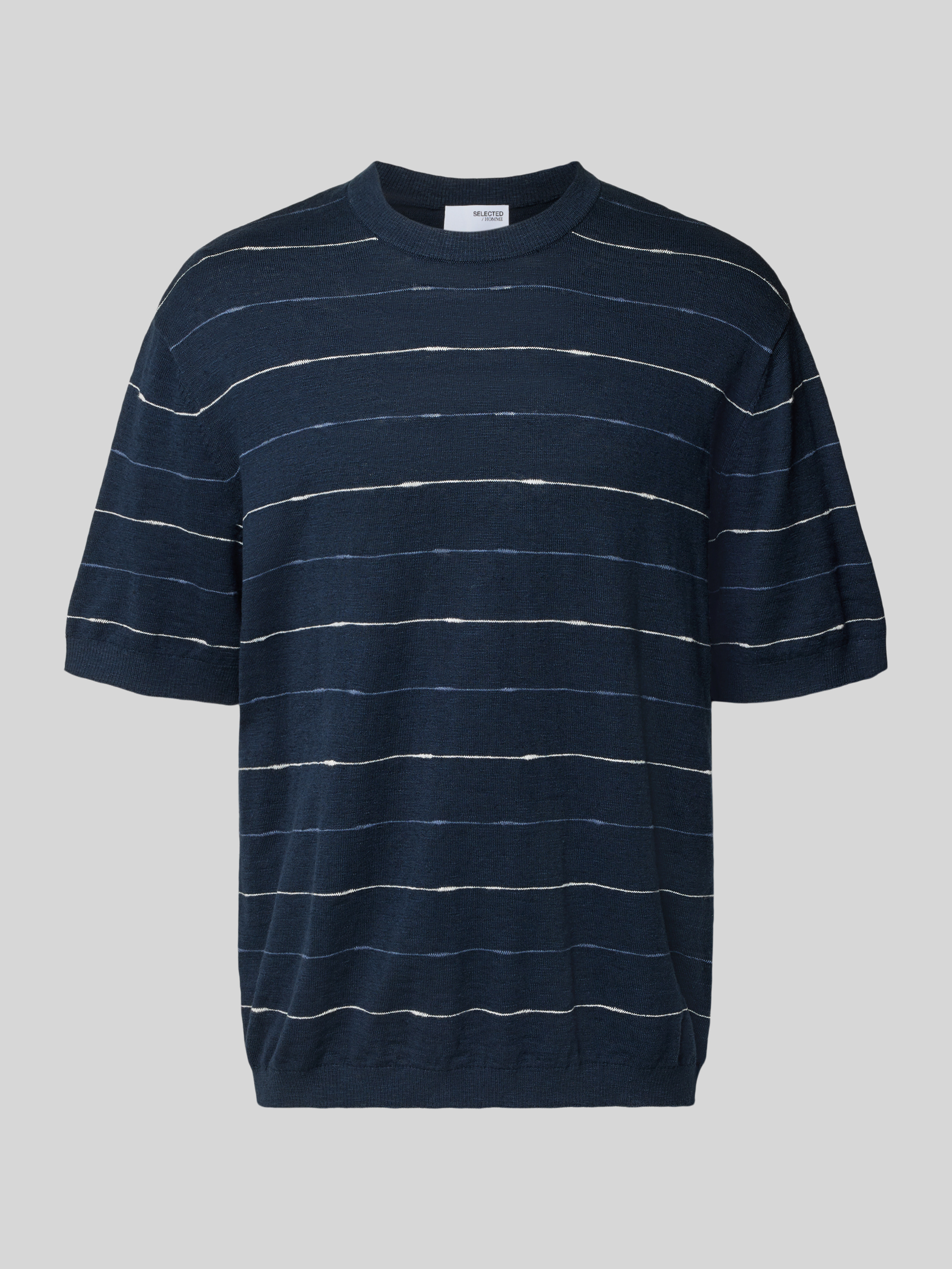 SELECTED HOMMERegular Fit Strickshirt aus Baumwoll-Leinen-Mix Modell 'BERG SUN' in marine