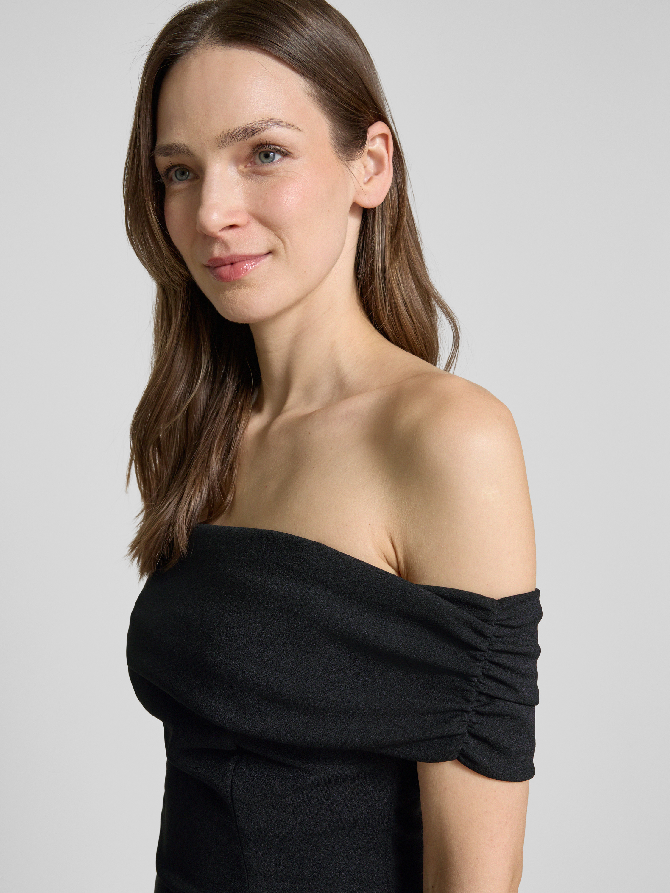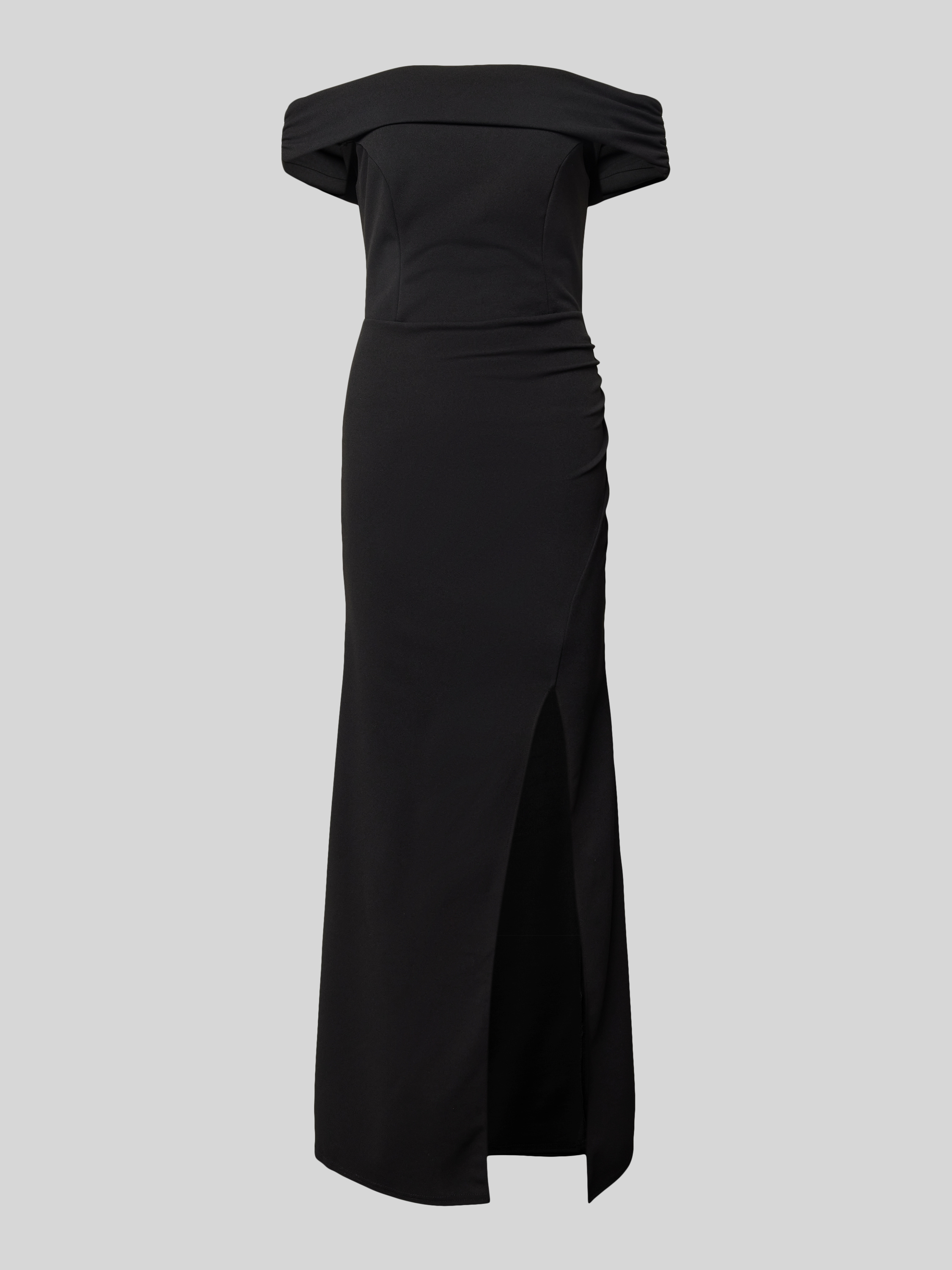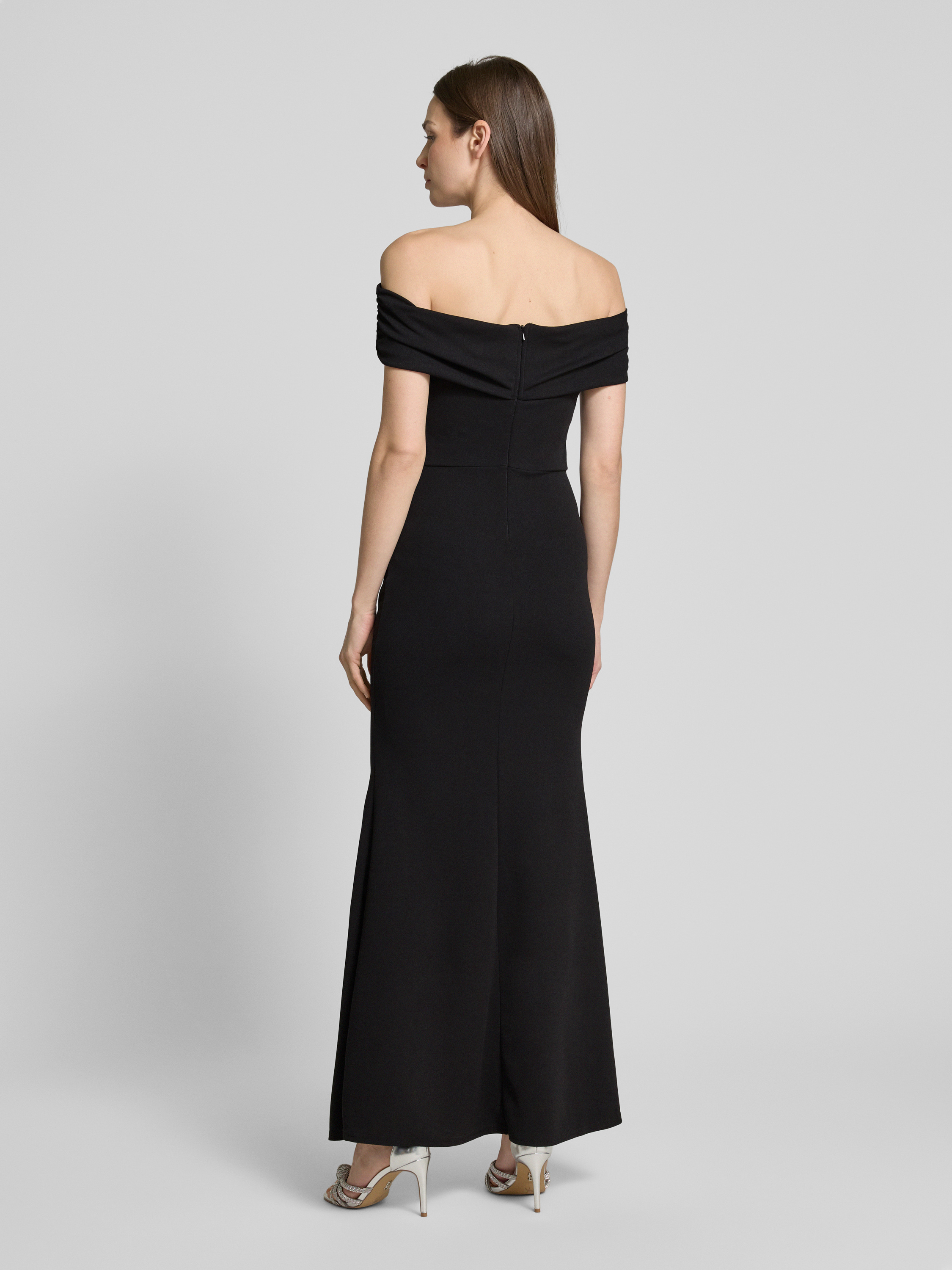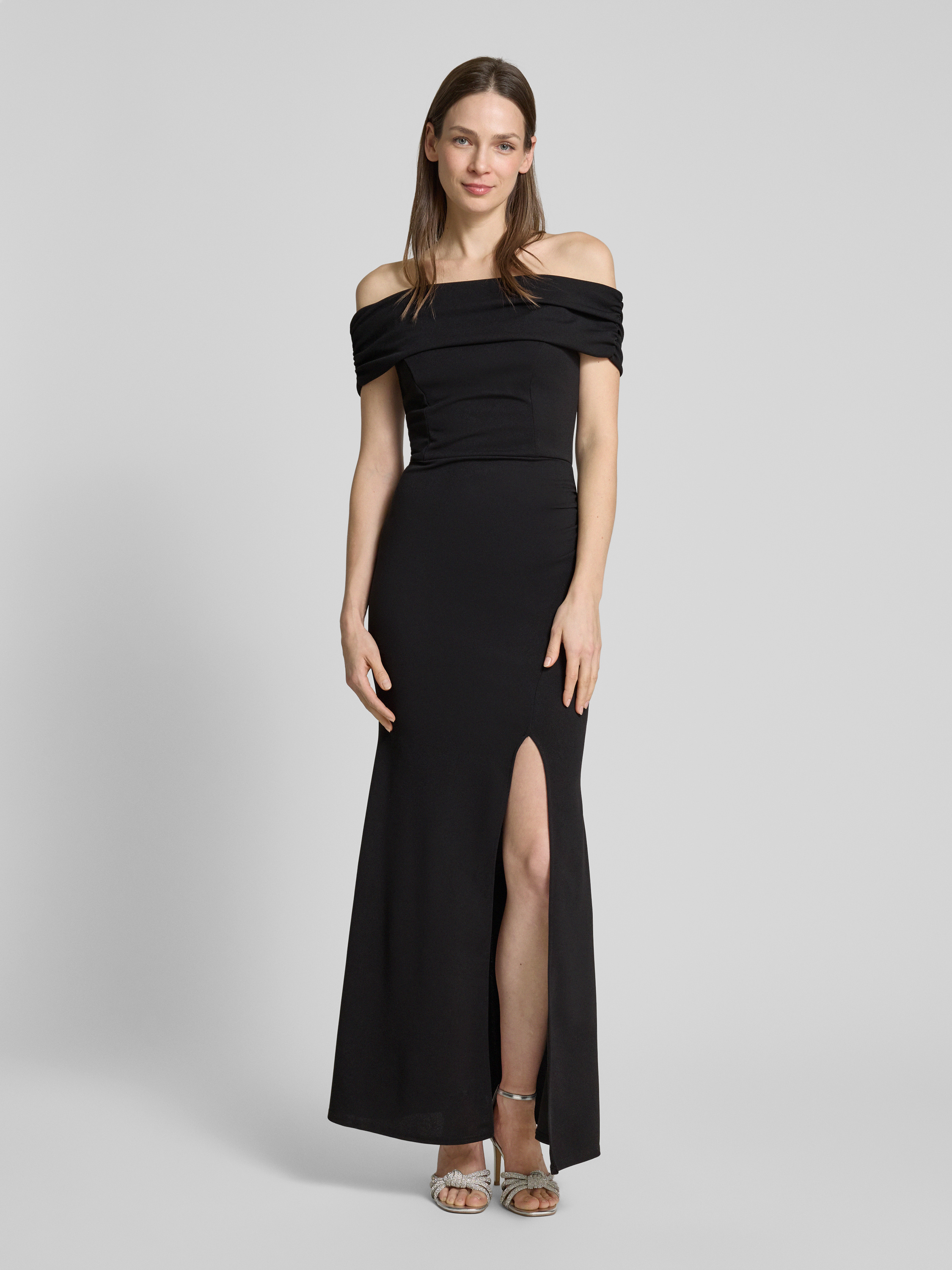 Das elegante Abendkleid 'CAREY' von SISTAGLAM besticht durch seinen körpernahen Schnitt und den stilvollen Off-Shoulder-Look. Der feine Material-Mix mit Stretch-Anteil sorgt für einen angenehmen Tragekomfort, während der Gehschlitz dezente Bewegungsfreiheit bietet. Dieses Maxikleid eignet sich ideal für besondere Anlässe.