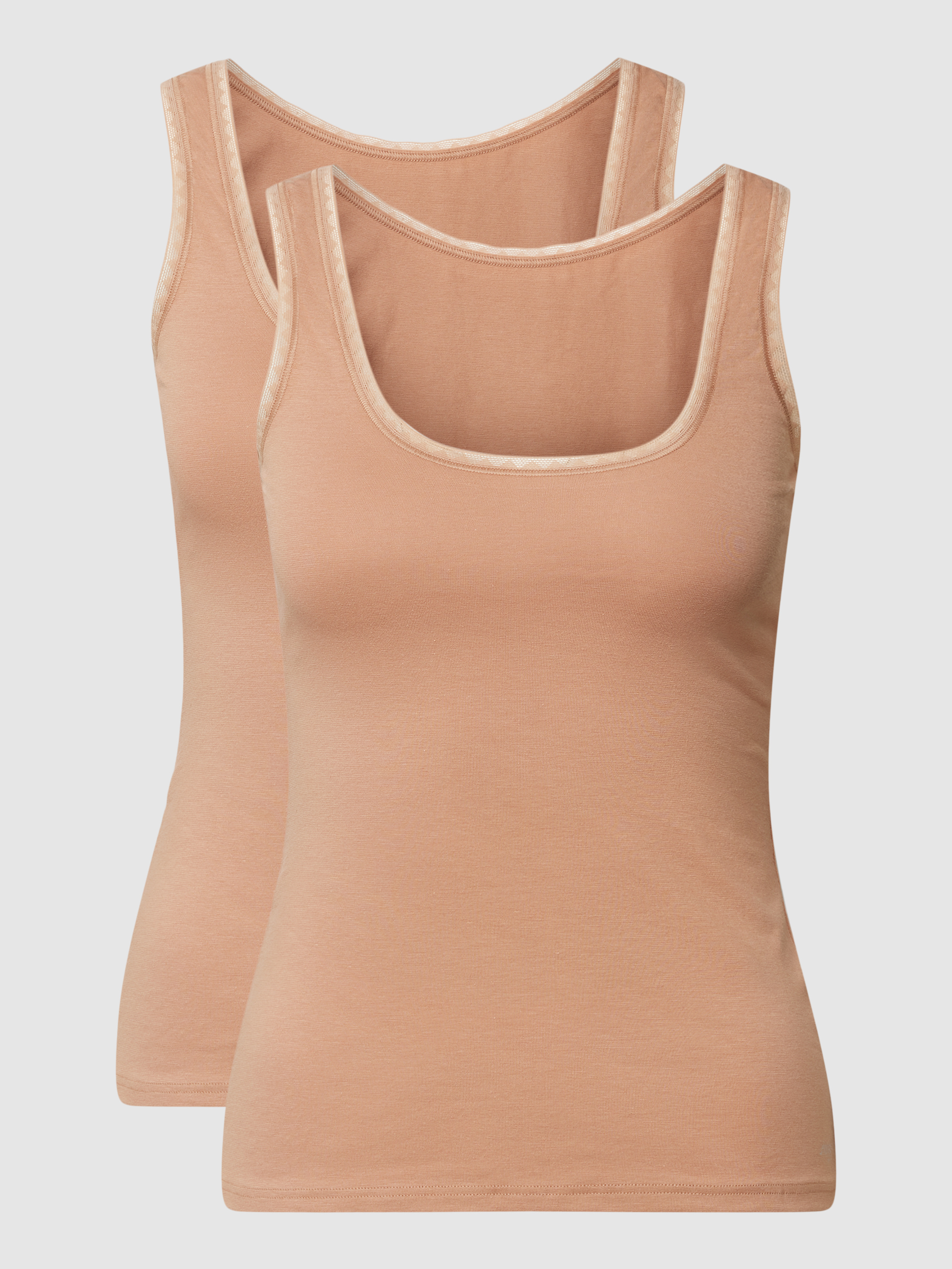 Das Top von Sloggi ist aus einem Baumwoll-Elasthan-Mix gefertigt und körpernah geschnitten. Es kommt im 2er-Pack und zeigt sich im unifarbenen Design mit Rundhalsausschnitt.