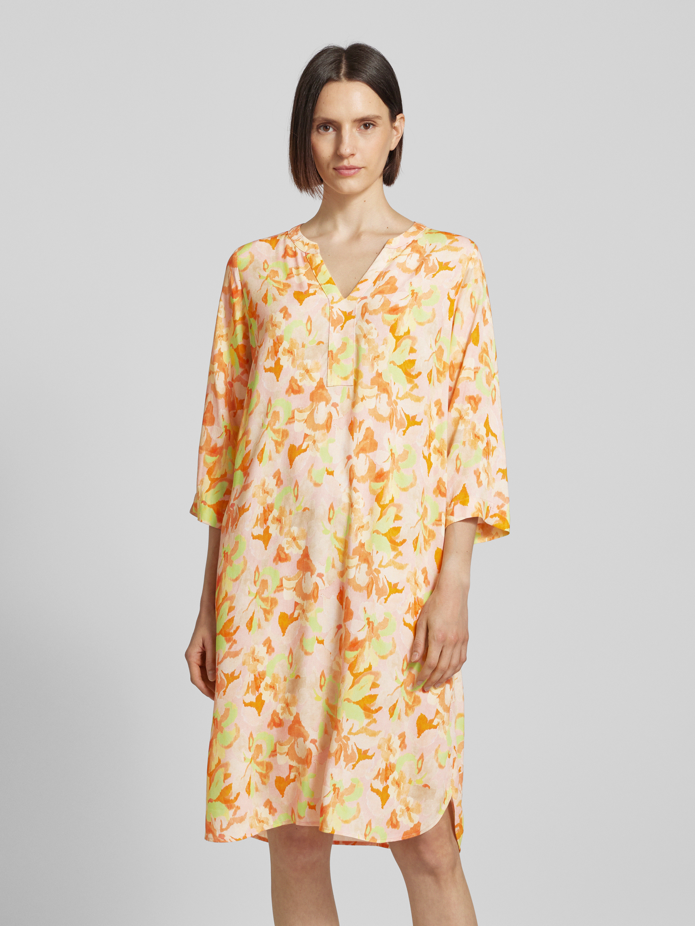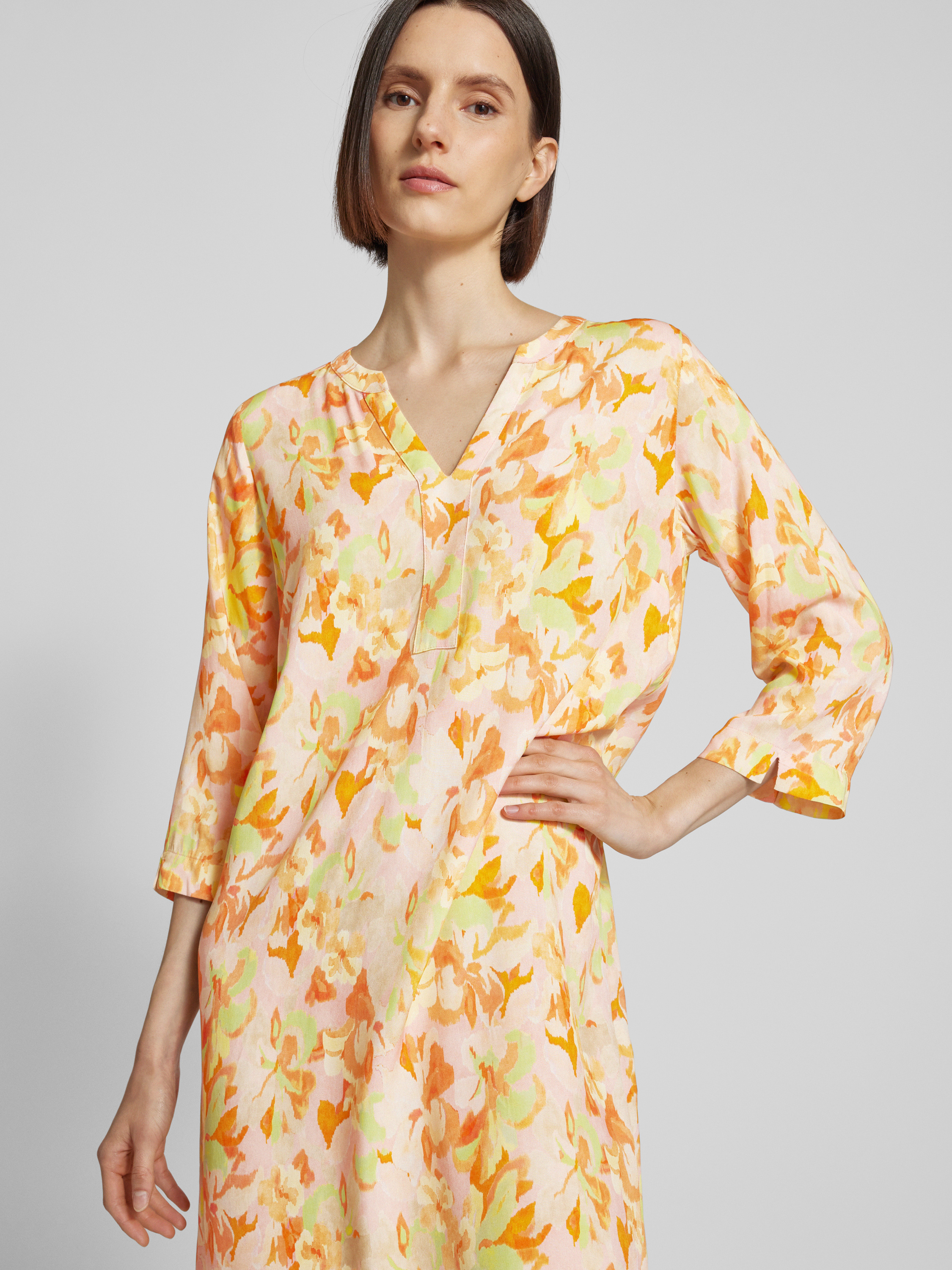 Das Damenkleid von Smith and Soul setzt mit seinem geraden Schnitt und dem lebendigen Allover-Muster einen entspannten Akzent im Alltag. Durch die knielange Form und den Tunikakragen entsteht eine lässige Silhouette, die Bewegungsfreiheit schafft. Die 3/4-Ärmel unterstreichen das unkomplizierte Design.