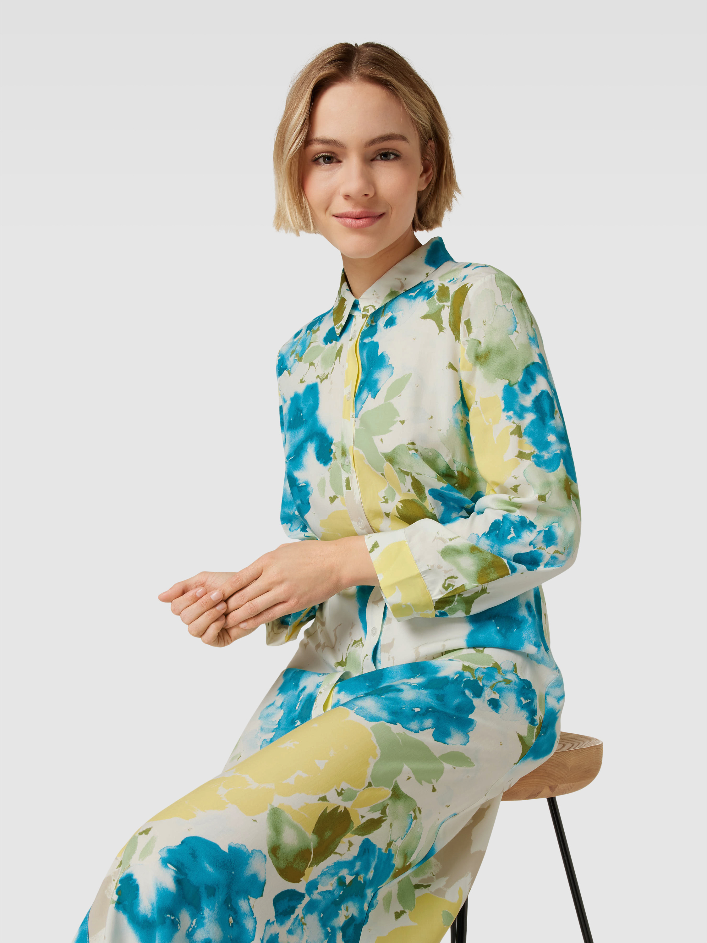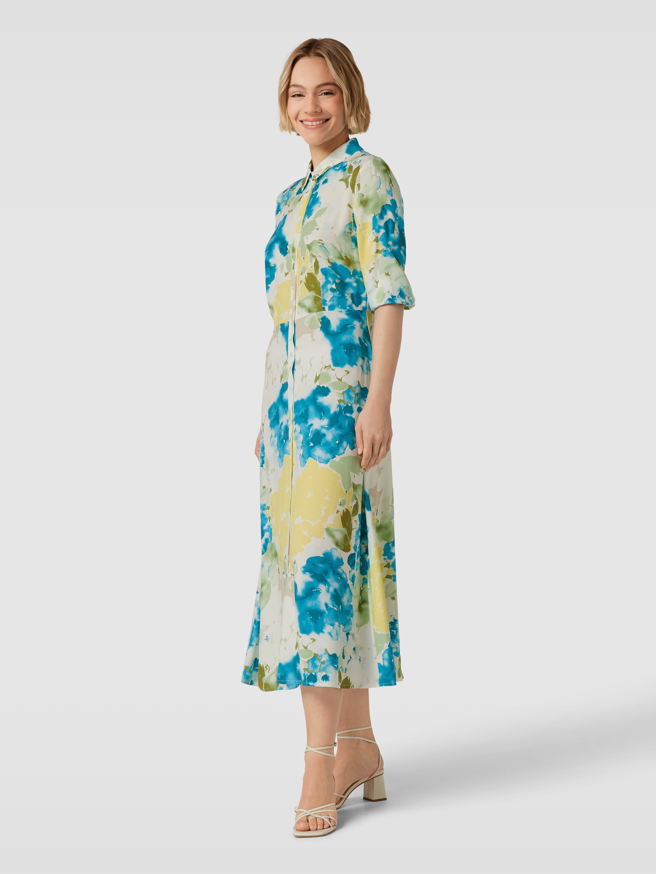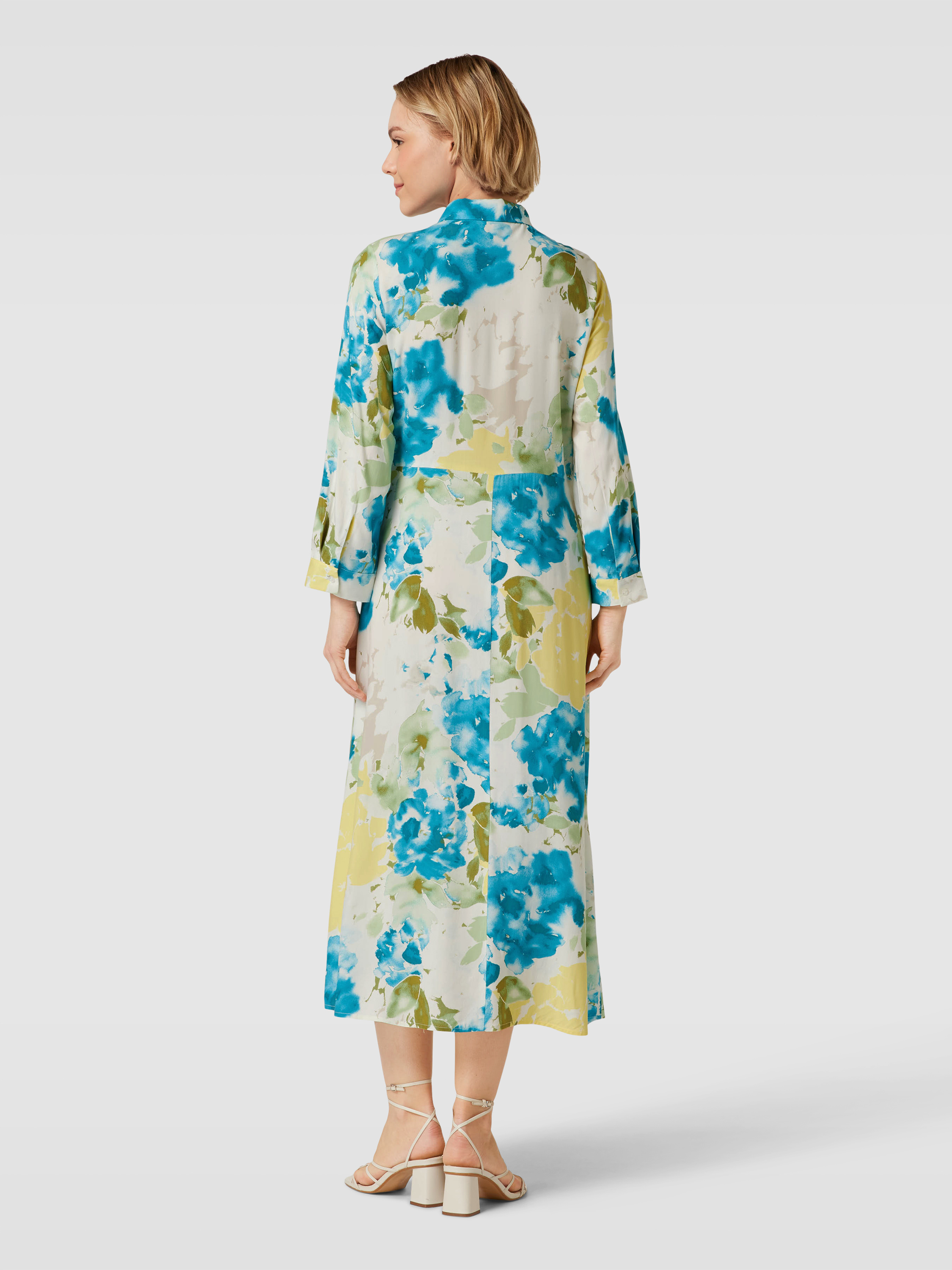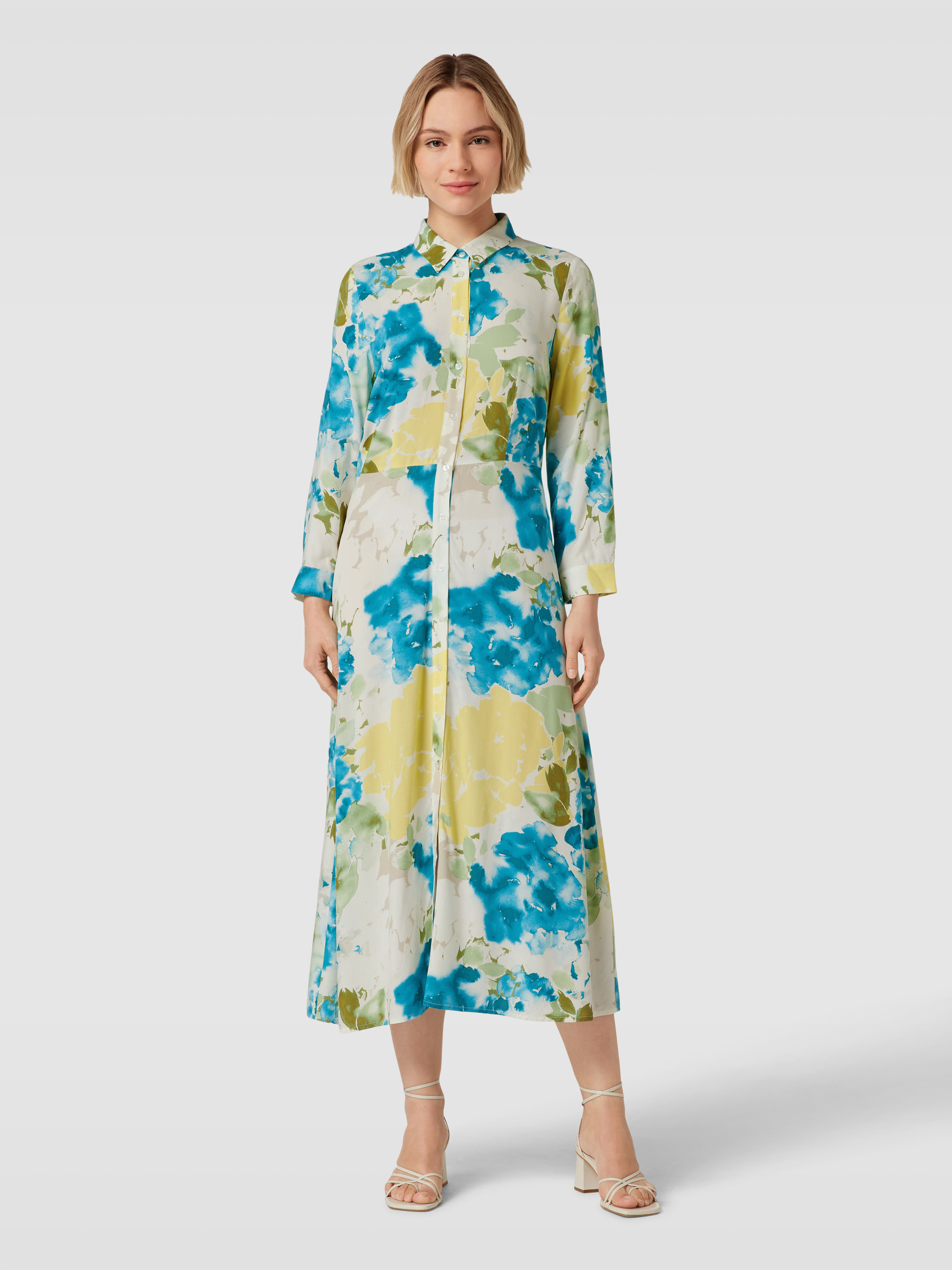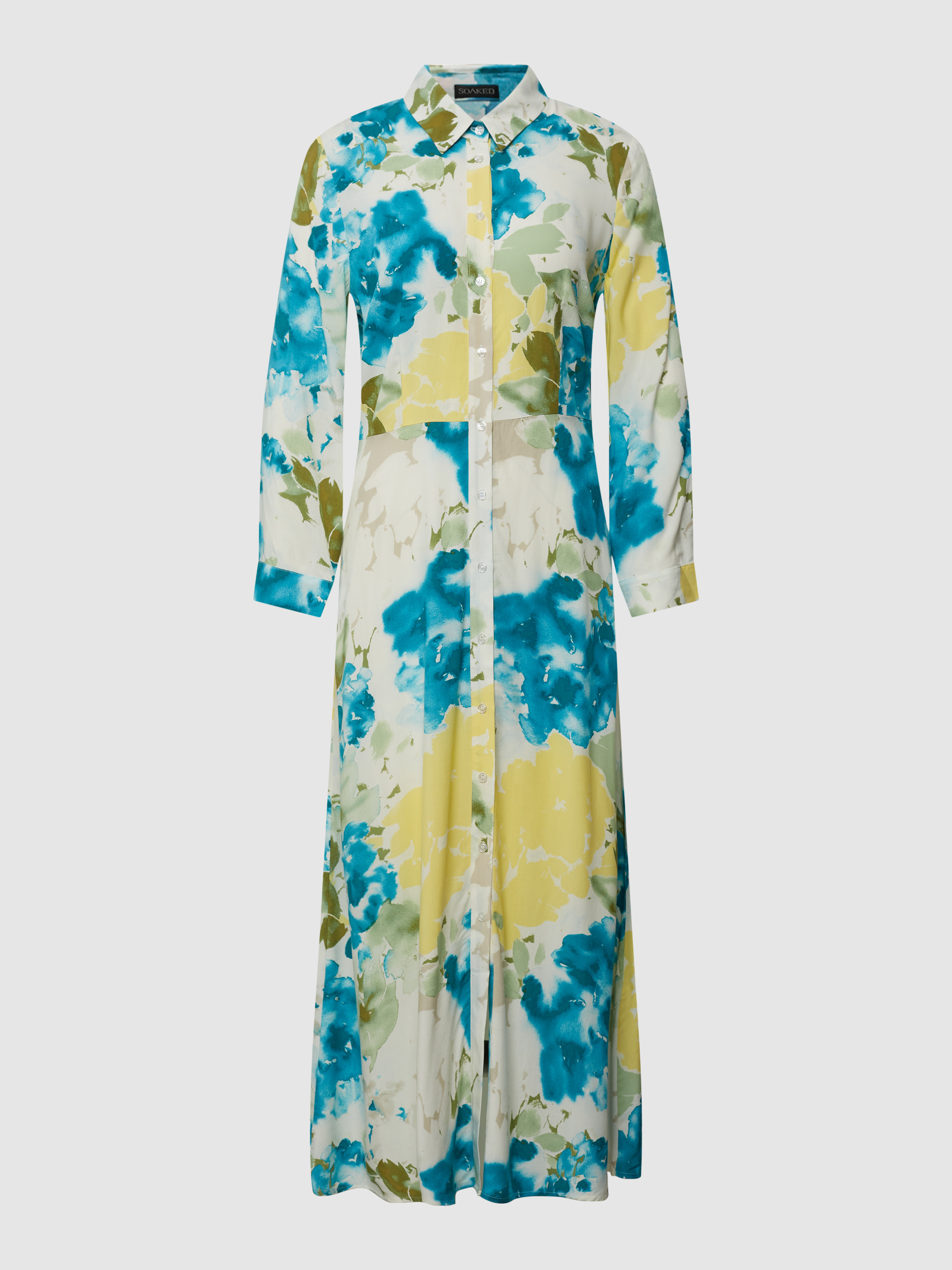 Soaked in LuxuryTailliertes Hemdblusenkleid aus Viskose mit Allover-Muster Modell 'VIOLETTA' in petrol