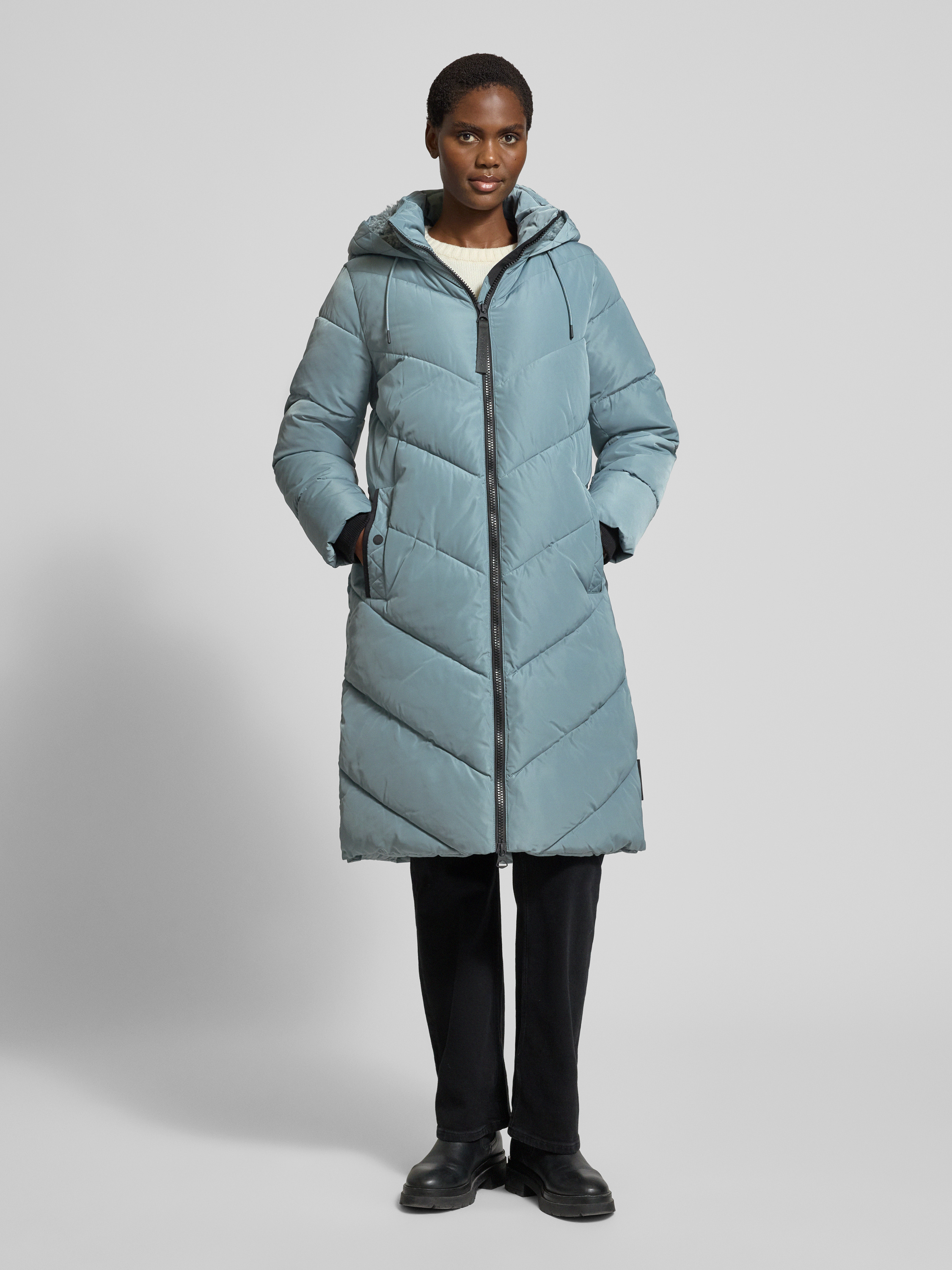 Der Damen Steppmantel von s.Oliver RED LABEL zeigt sich in geradem Schnitt und unifarbener Optik, wodurch er vielseitig kombinierbar bleibt. Eine Kapuze mit weichem Teddyfell sowie praktische Details wie Innentasche und seitliche Eingrifftaschen sorgen für zusätzlichen Komfort im Alltag. Durch die langen Ärmel mit Storm Cuffs eignet sich der Mantel besonders für kühle Tage und hält angenehm warm.