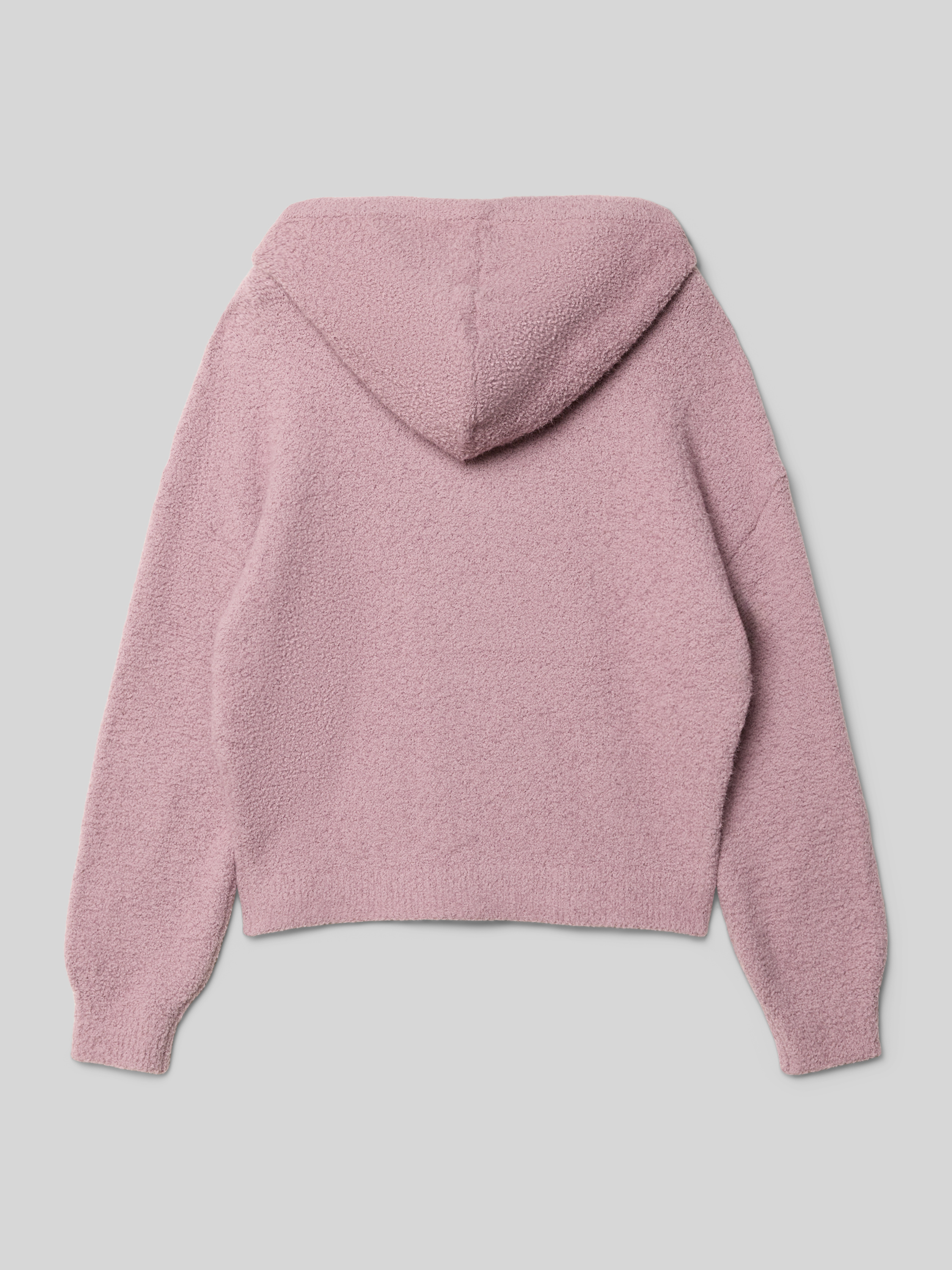 Der Hoodie von s.Oliver RED LABEL zeigt sich in unifarbener Optik und setzt mit dem Bär-Motiv sowie Effektgarn-Details einen spielerischen Akzent. Durch den Regular Fit sitzt das Modell angenehm locker, während die Kapuze mit Tunnelzug für zusätzlichen Komfort sorgt. Dank der Strick-Verarbeitung fühlt man sich auch an kühleren Tagen gut aufgehoben.