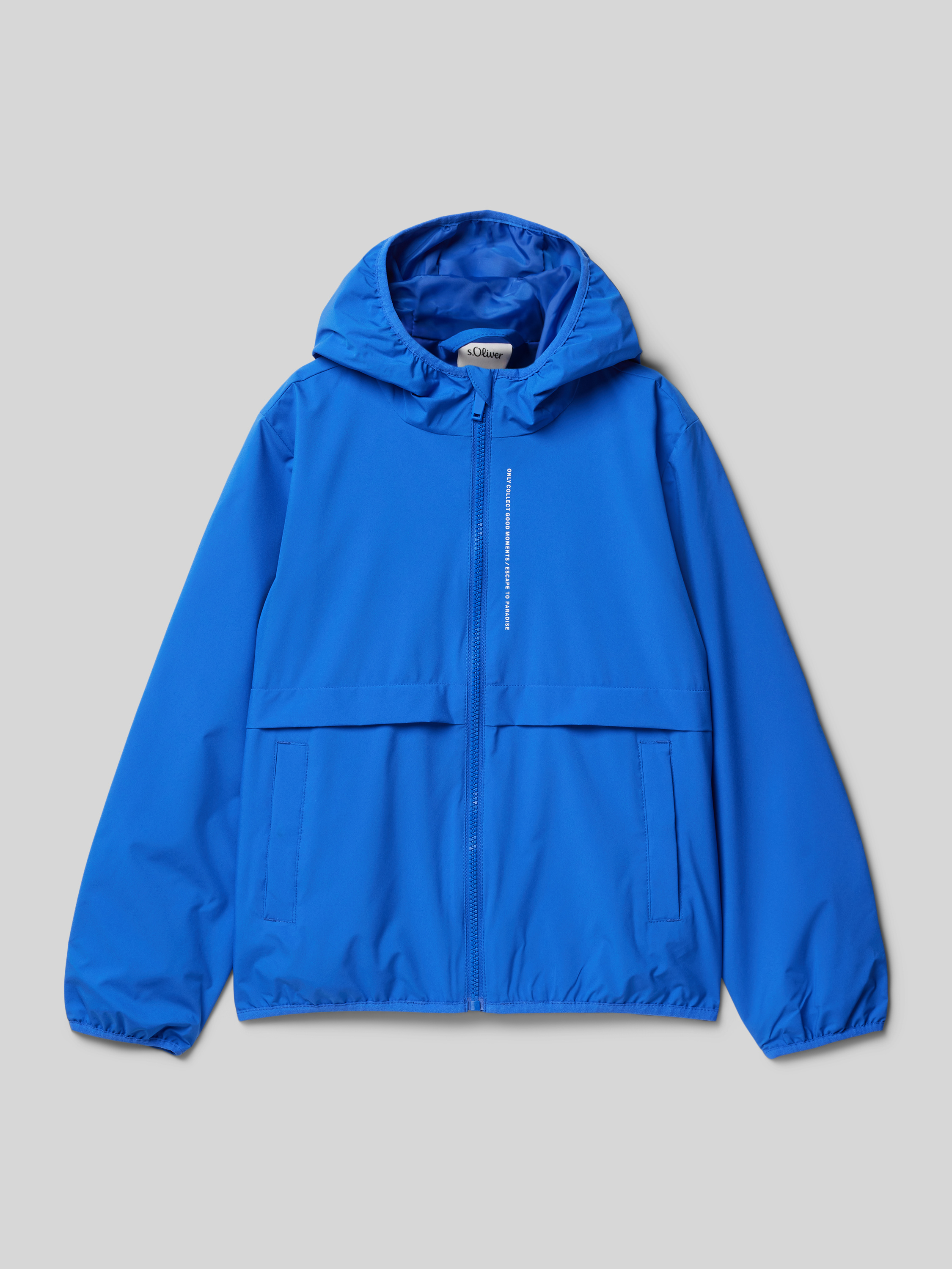 Die Kinder Jacke von s.Oliver RED LABEL zeigt sich mit einem klaren Schnitt im Regular Fit und liegt angenehm am Körper. Durch die Kapuze und die praktischen Taschen wird der Alltag unkomplizierter gestaltet. Ein Schriftzug-Print sorgt für einen dezenten, modernen Akzent.