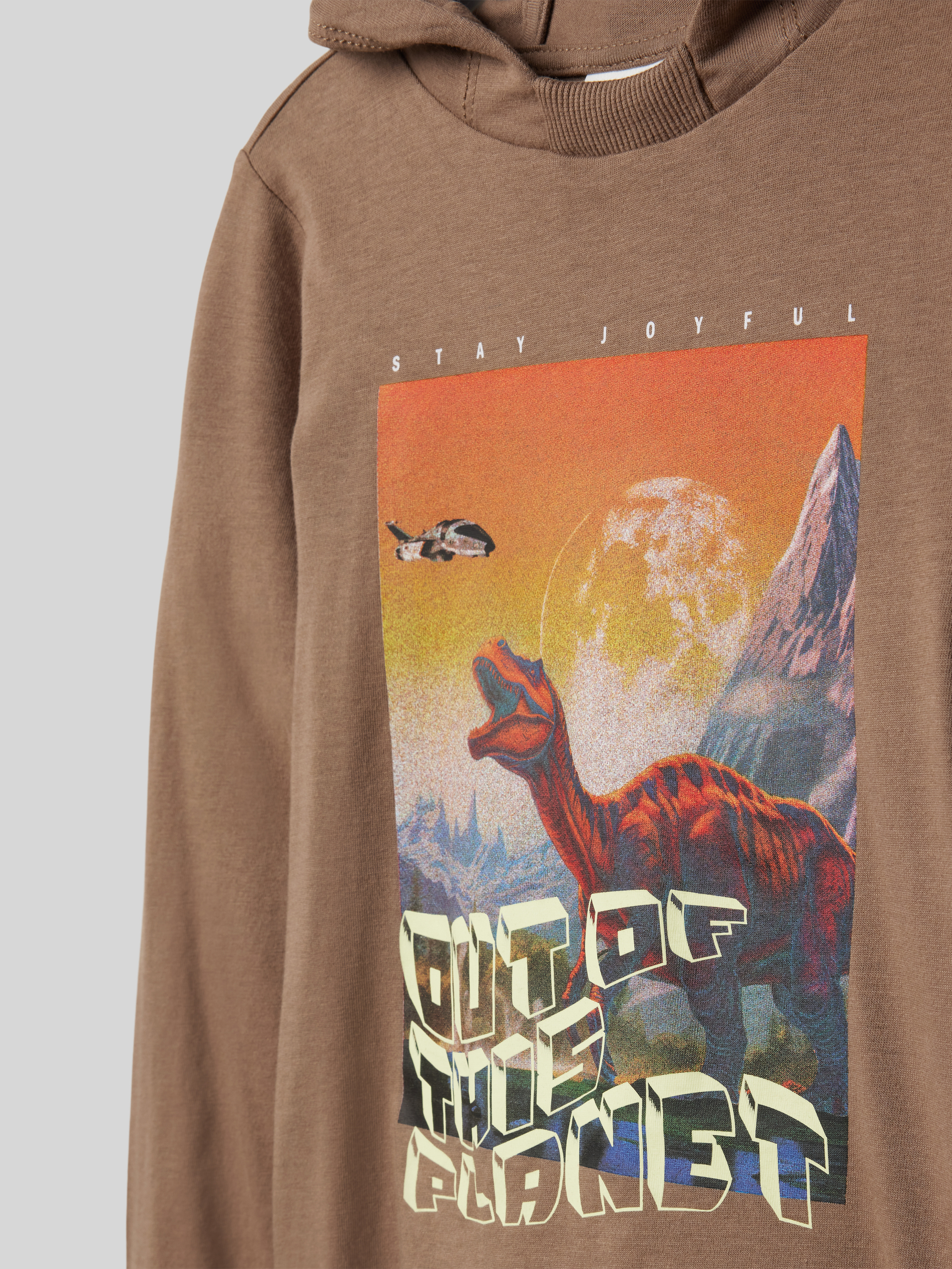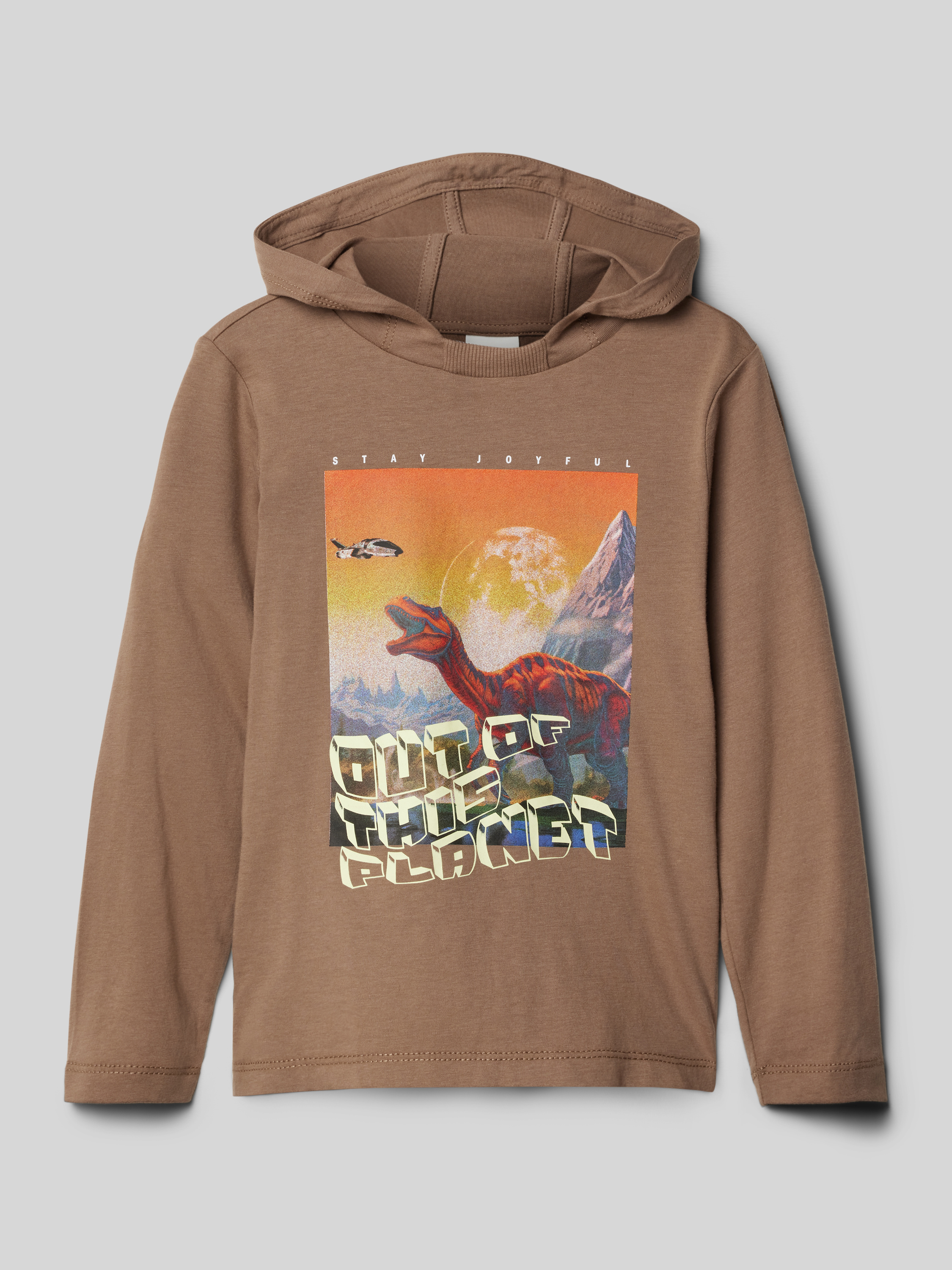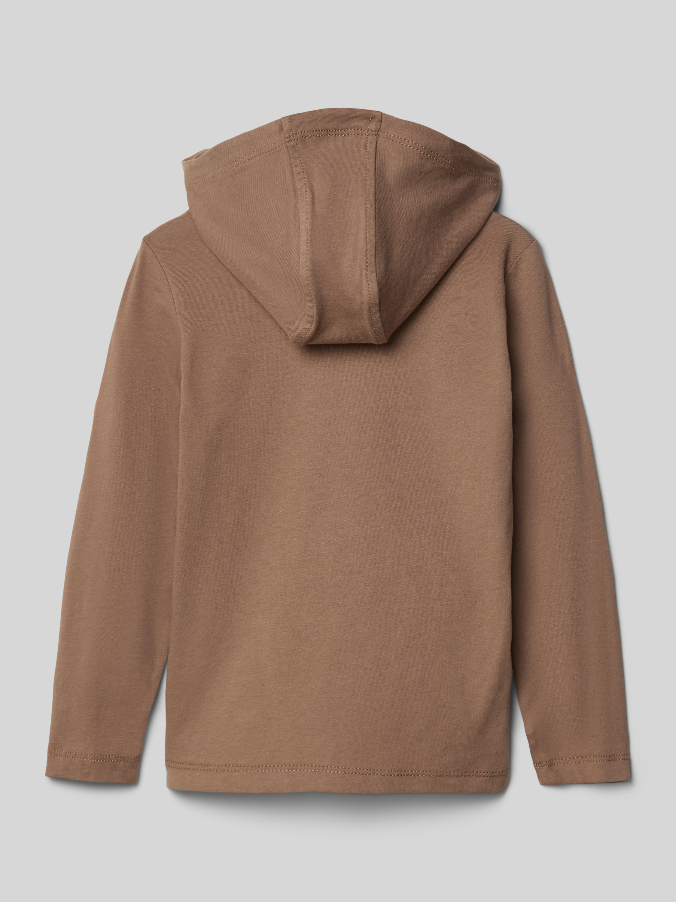 s.Oliver RED LABELRegular Fit Langarmshirt aus reiner Baumwolle mit Glow-in-the-dark-Print und Kapuze in cognac