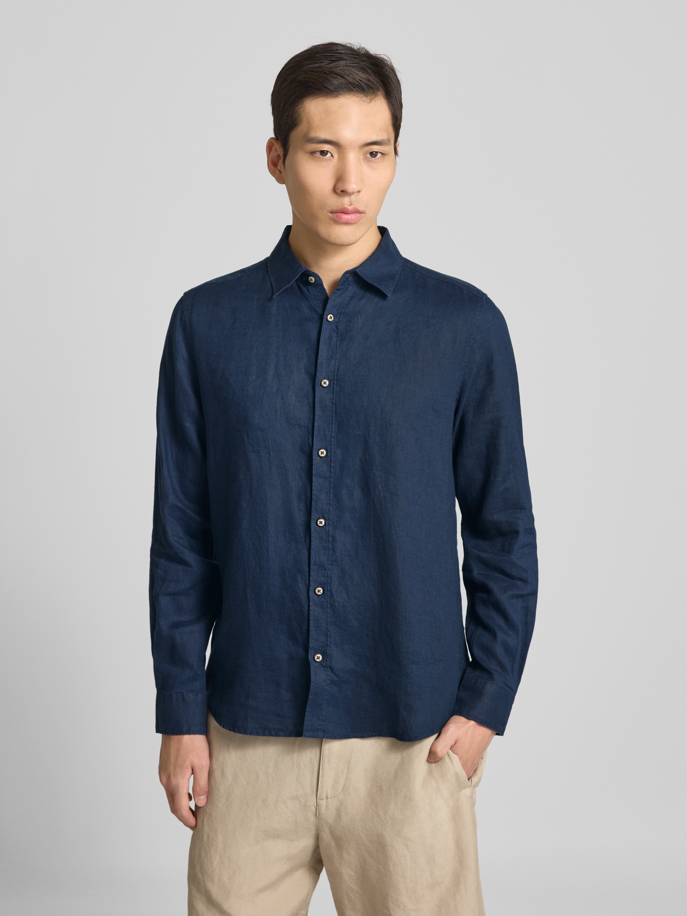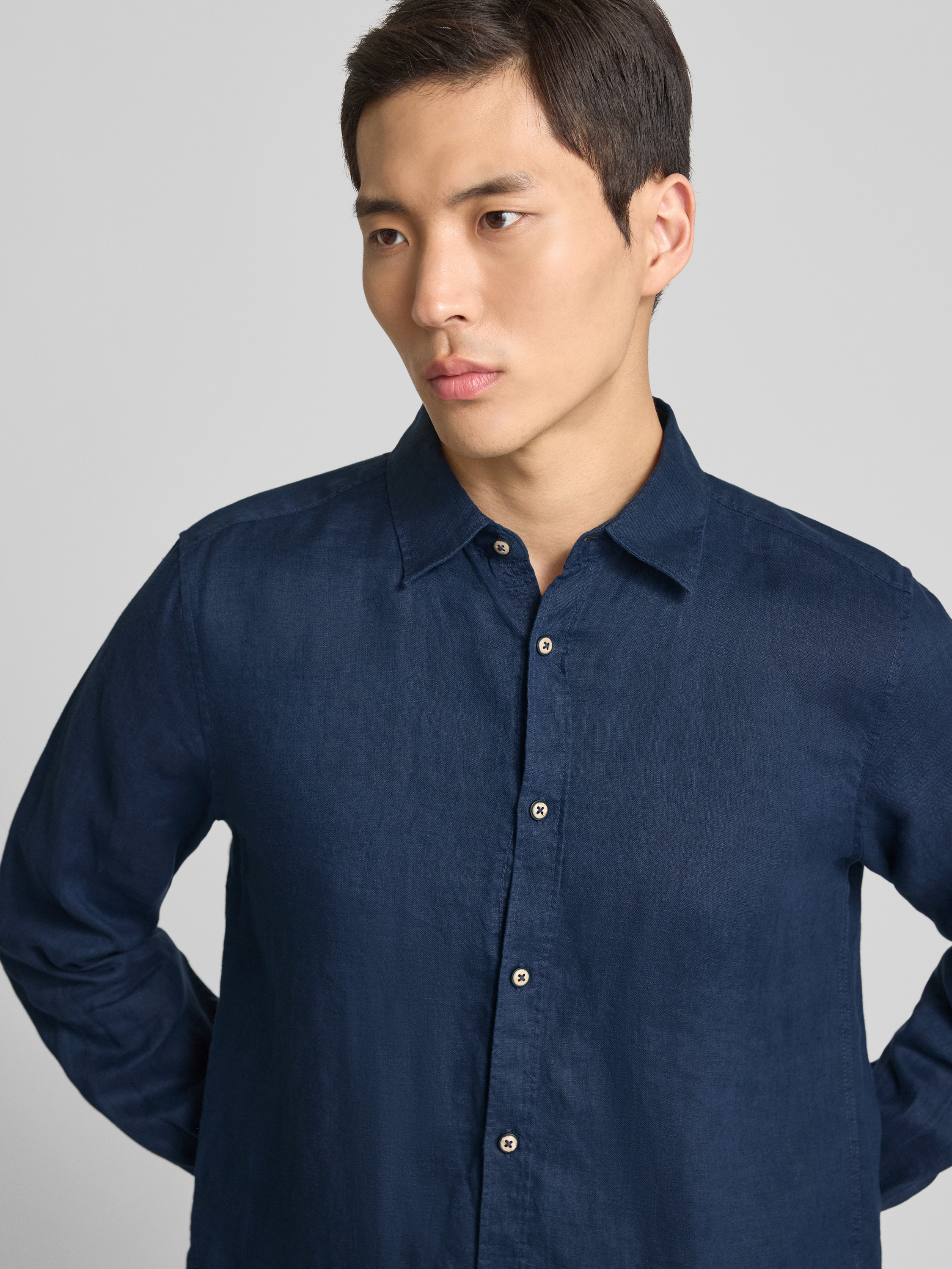 s.Oliver RED LABELRegular Fit Leinenhemd mit Sportmanschetten in dunkelblau