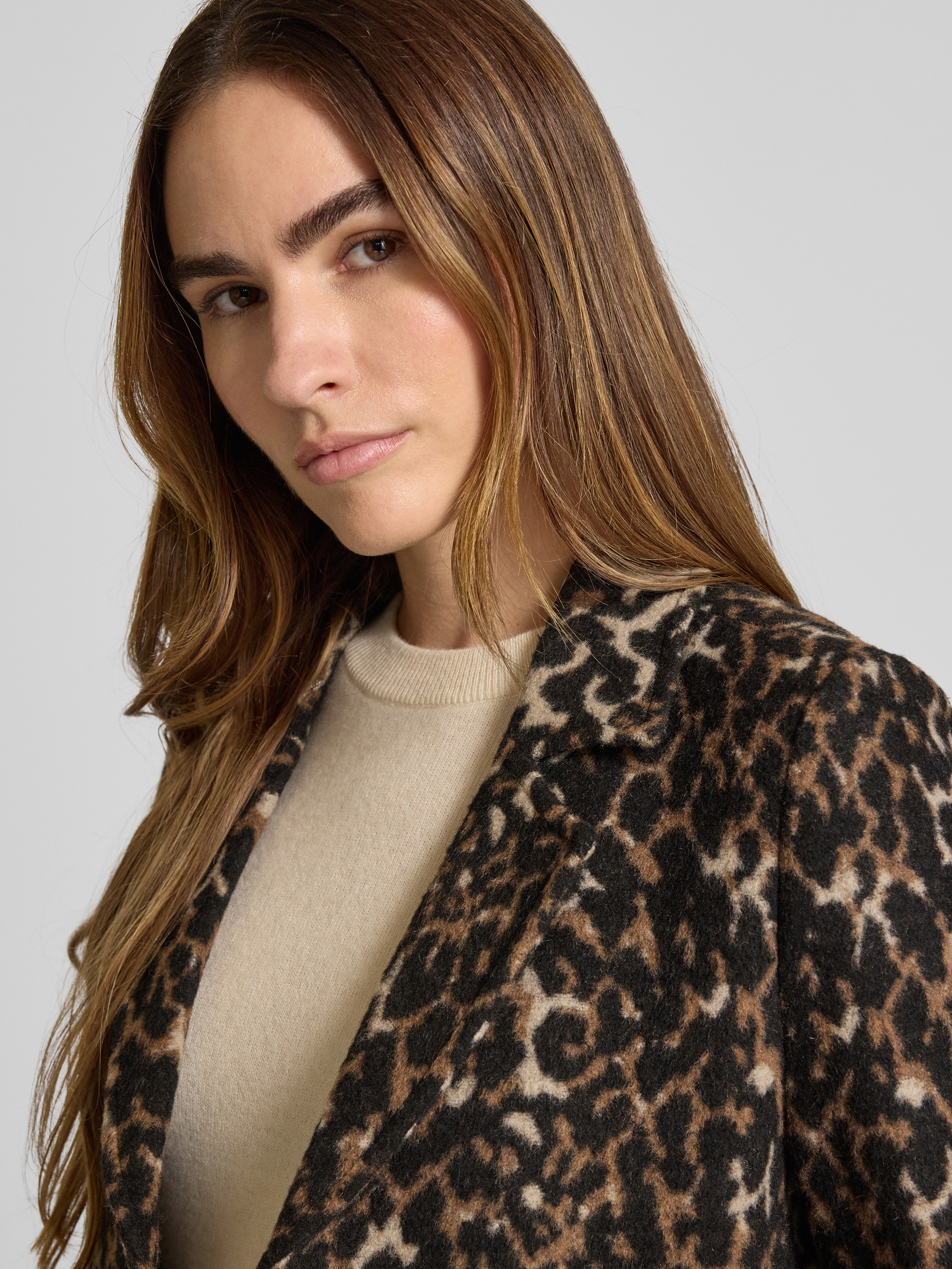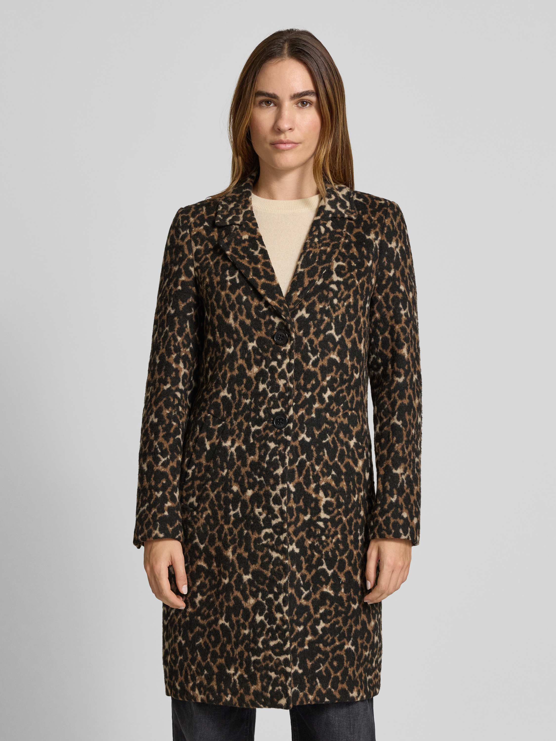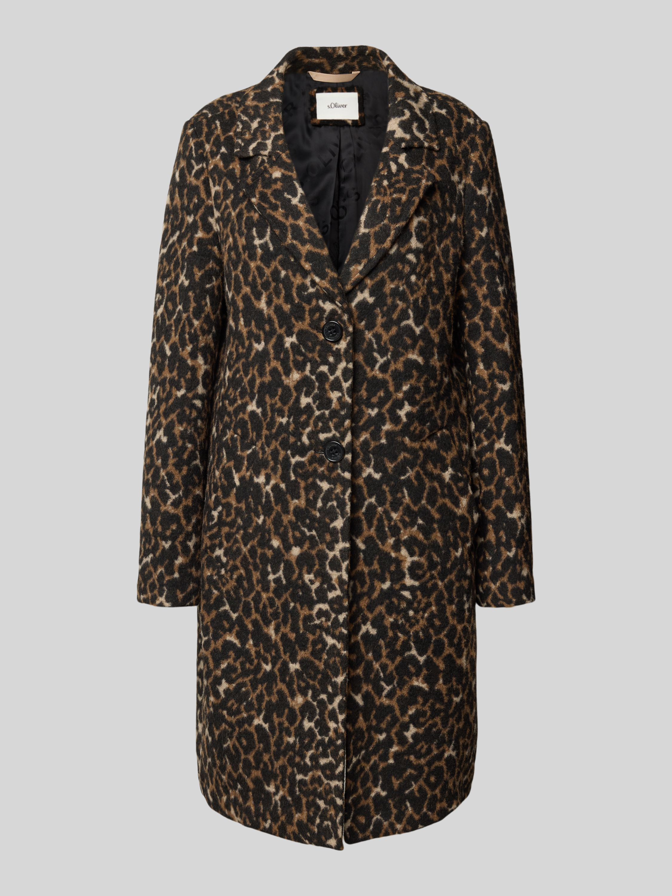 Der Damenmantel von s.Oliver RED LABEL zeigt sich im Regular Fit und bringt durch das Leo-Muster einen lebendigen Akzent ins Outfit. Dank Woll-Anteil fühlt sich das Material angenehm an und hält zuverlässig warm. Leistentaschen und Reverskragen runden das Gesamtbild stilvoll ab.