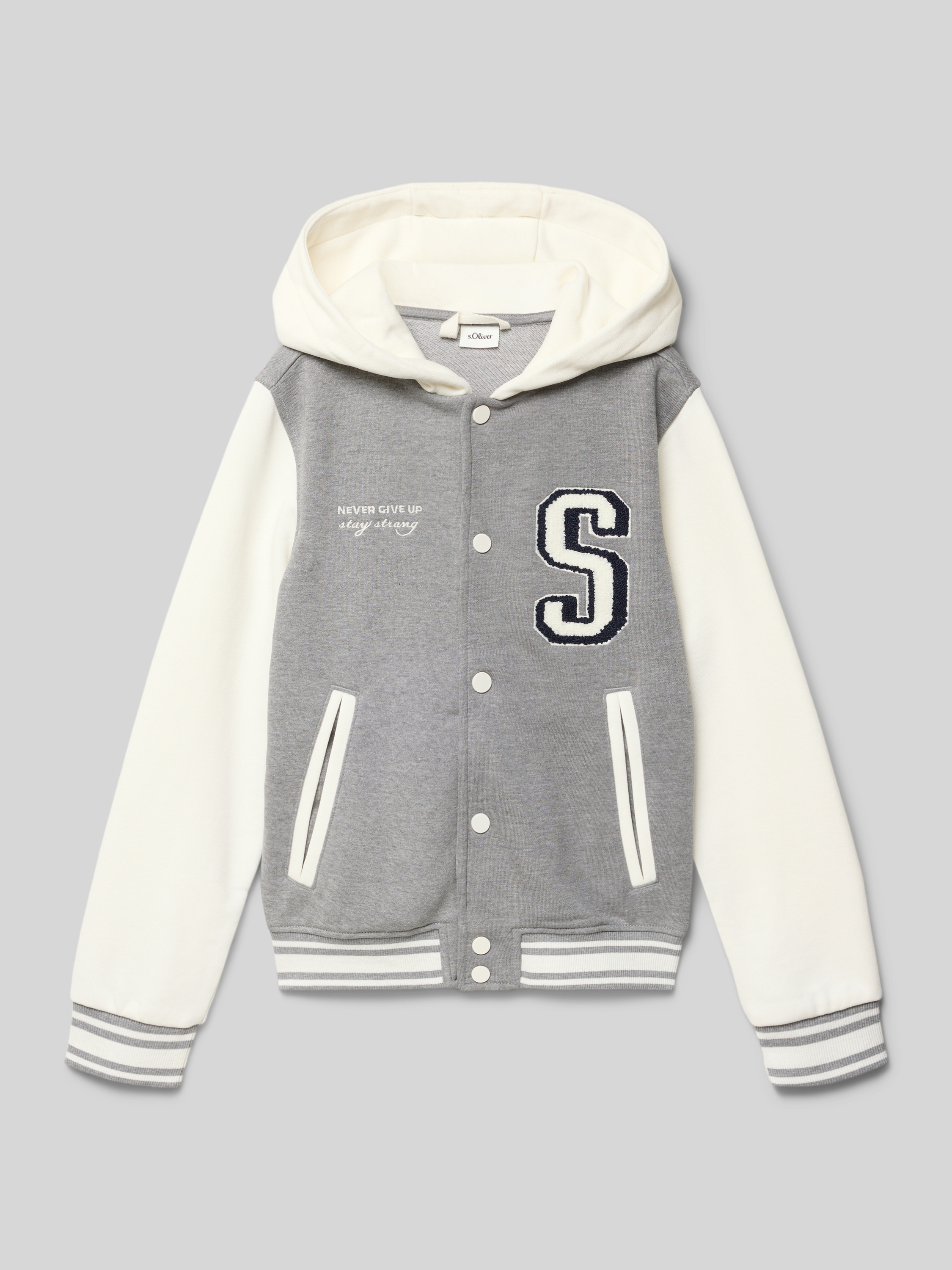 s.Oliver RED LABELRegular Fit Sweatjacke im College-Stil in mittelgrau melange