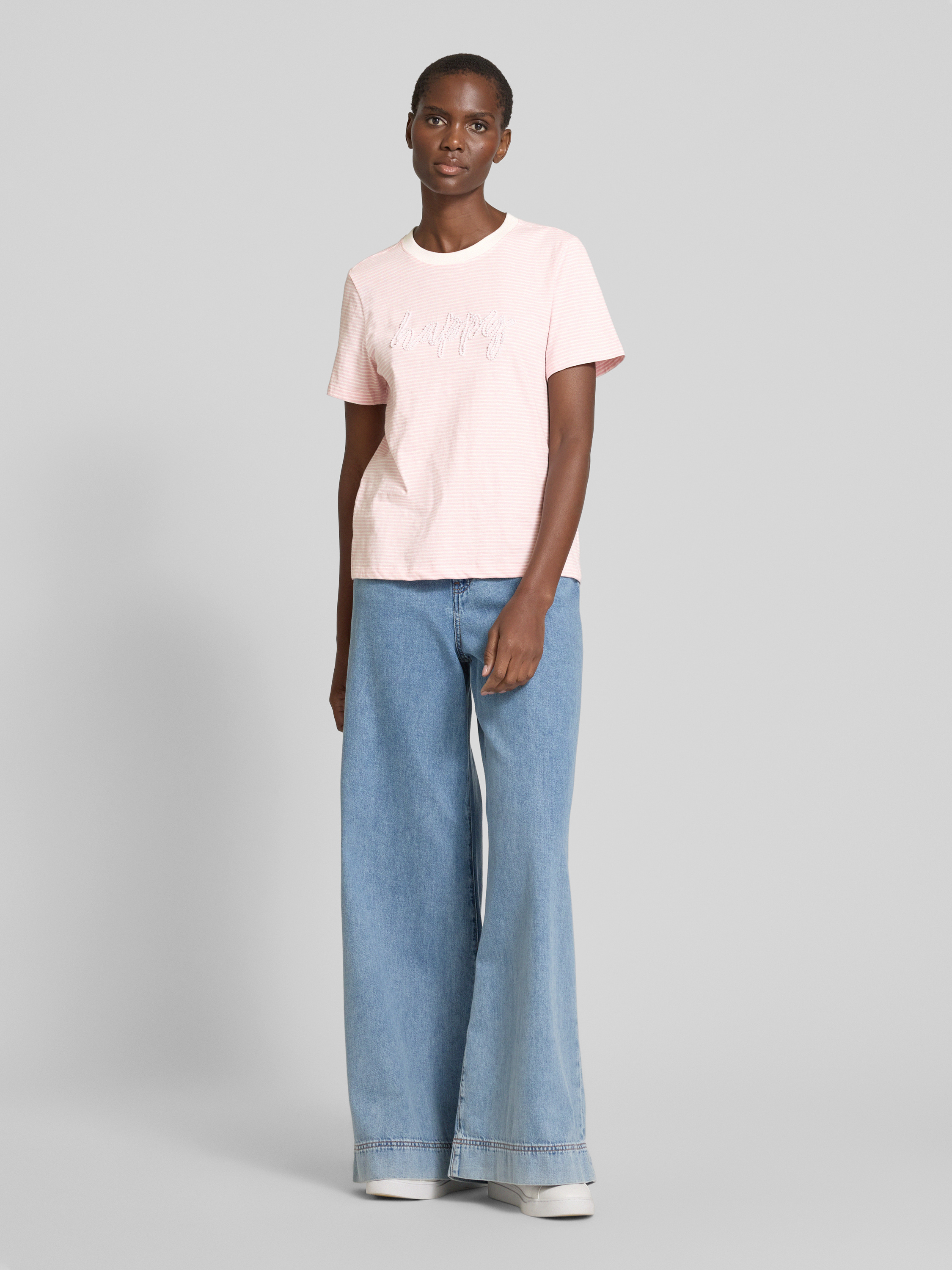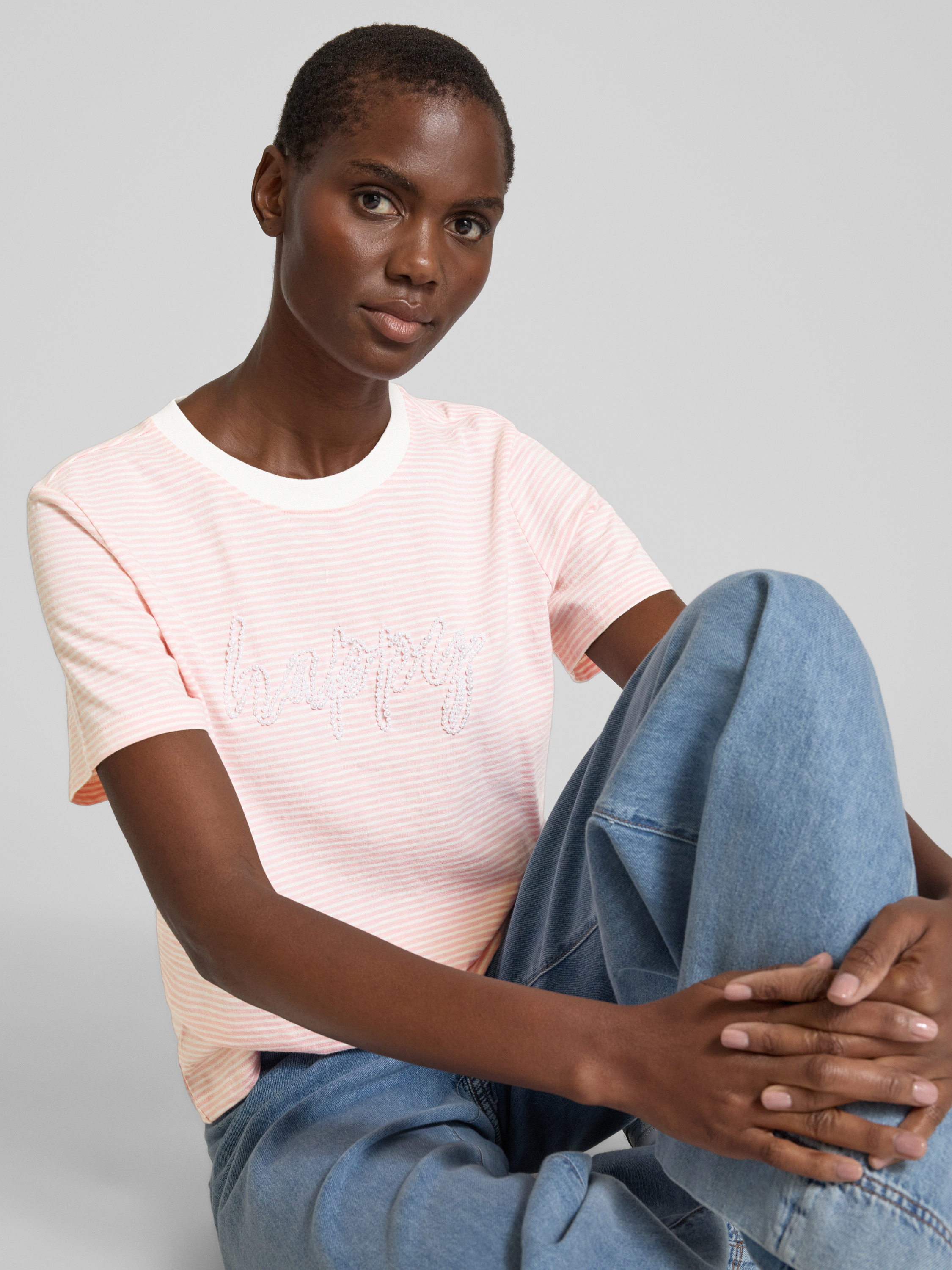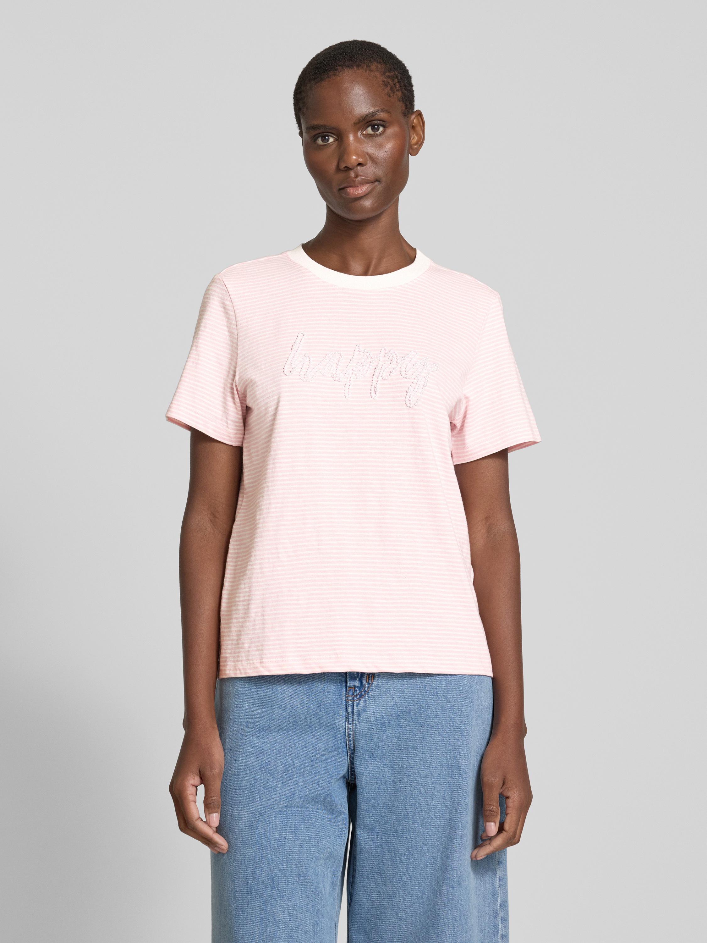 s.Oliver RED LABELRegular Fit T-Shirt aus reiner Baumwolle mit Schmuckperlen-Schriftzug in rosa