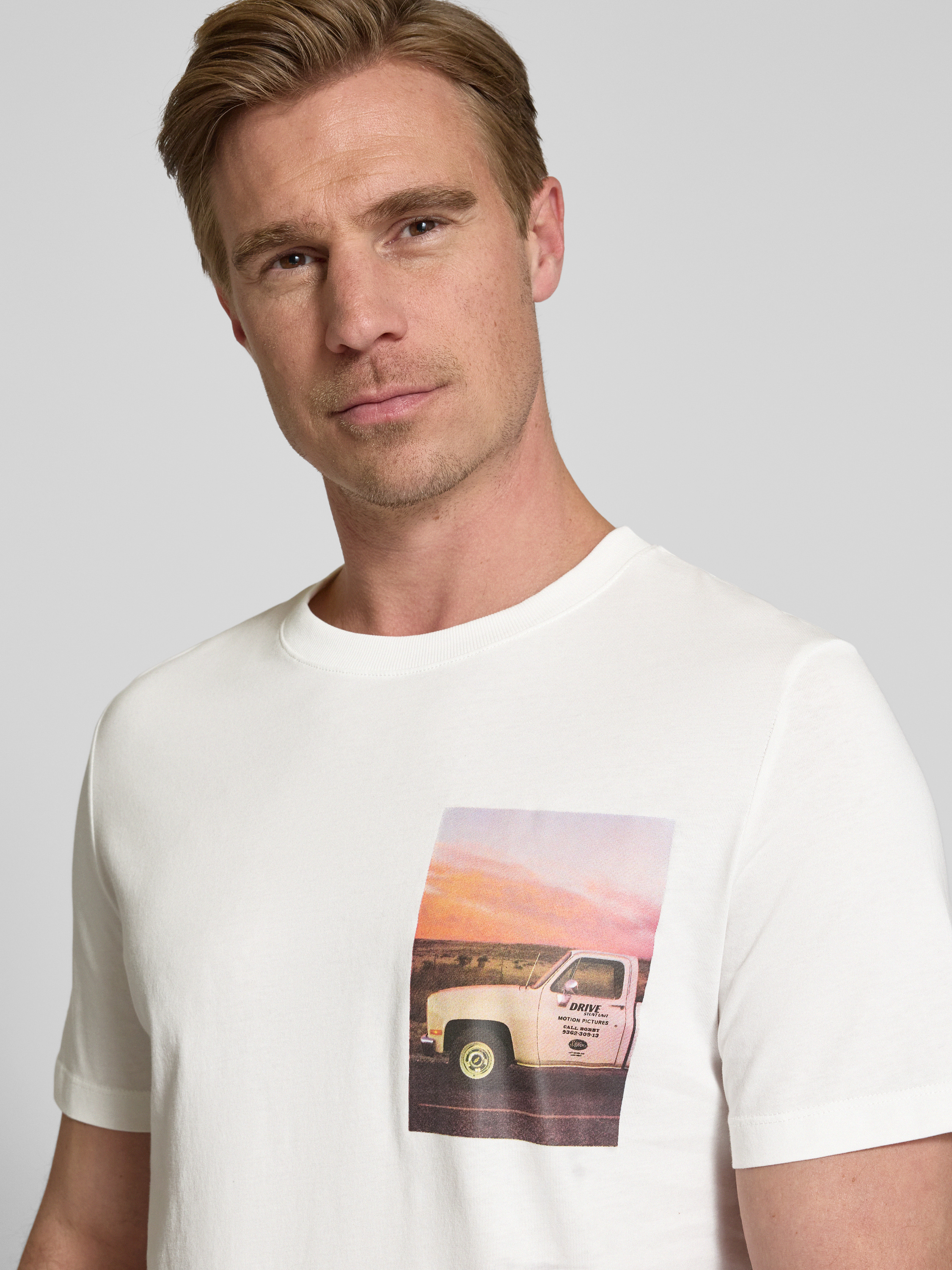 Das T-Shirt von s.Oliver RED LABEL vereint mit seiner Regular Fit-Passform und dem angenehmen Rundhalsausschnitt ein bequemes Tragegefühl. Die reine Baumwolle sorgt für ein luftiges Erlebnis, während der Foto- und Schriftzug-Print eine dezente, stilvolle Note hinzufügt. Ideal für entspannte Alltagslooks.