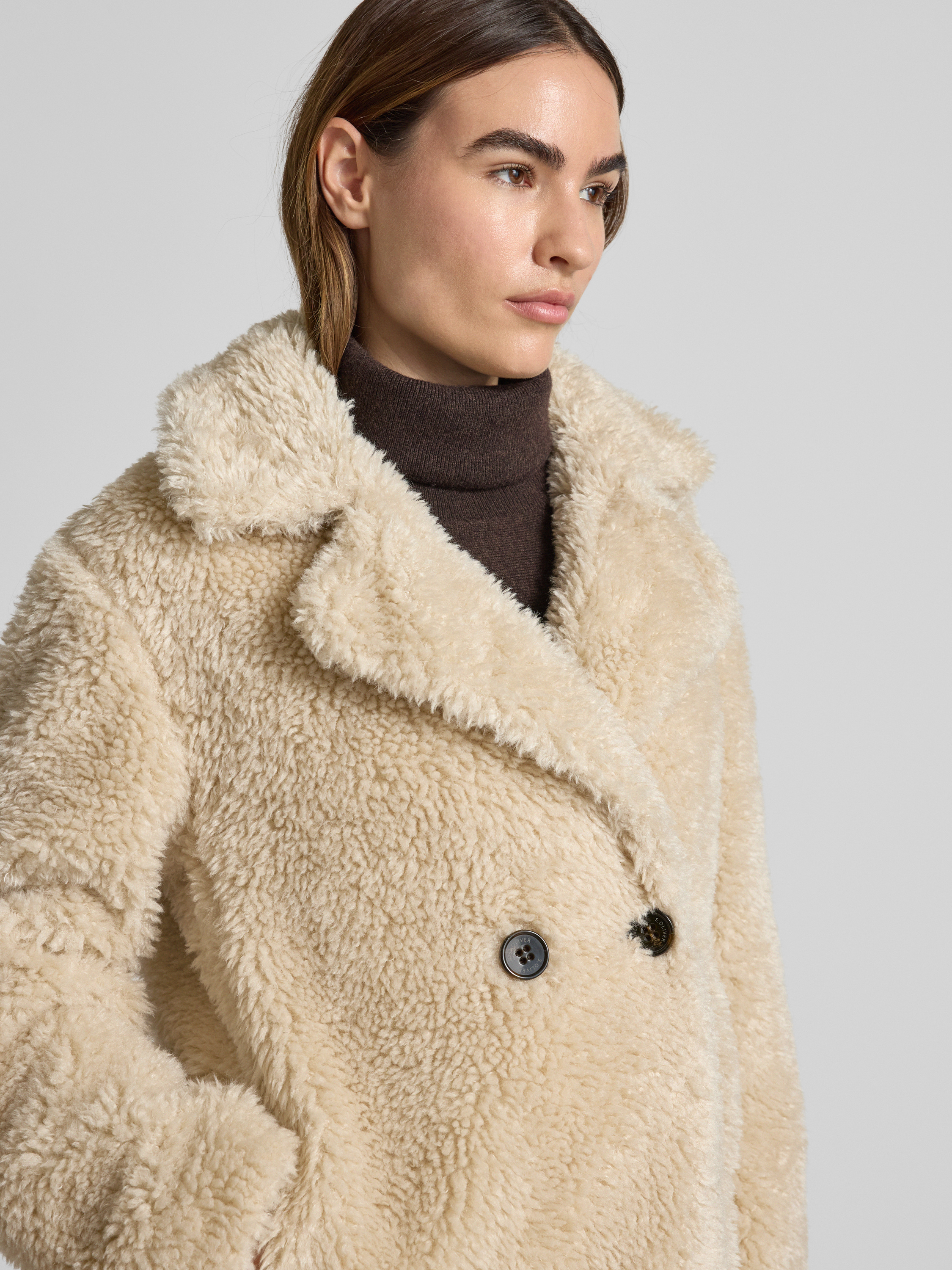 Die Damen Teddyfell-Jacke von s.Oliver RED LABEL fällt durch ihre legere Relaxed Fit-Silhouette angenehm locker aus. Dank des klassischen Reverskragens und des unifarbenen Designs lässt sich die Jacke vielseitig kombinieren, während das flauschige Teddyfell für ein behagliches Tragegefühl sorgt. Seitliche Eingrifftaschen runden das Modell praktisch ab.