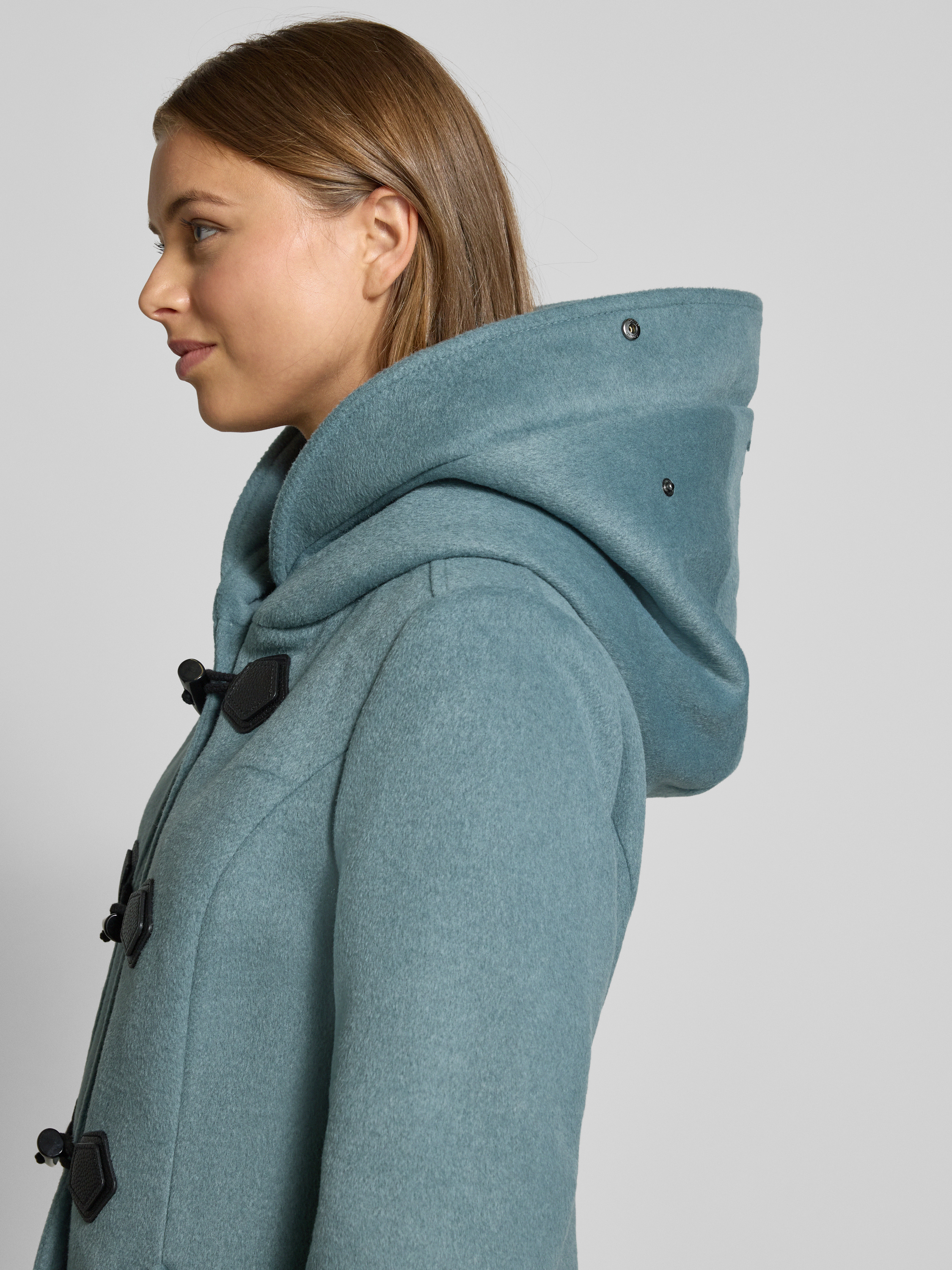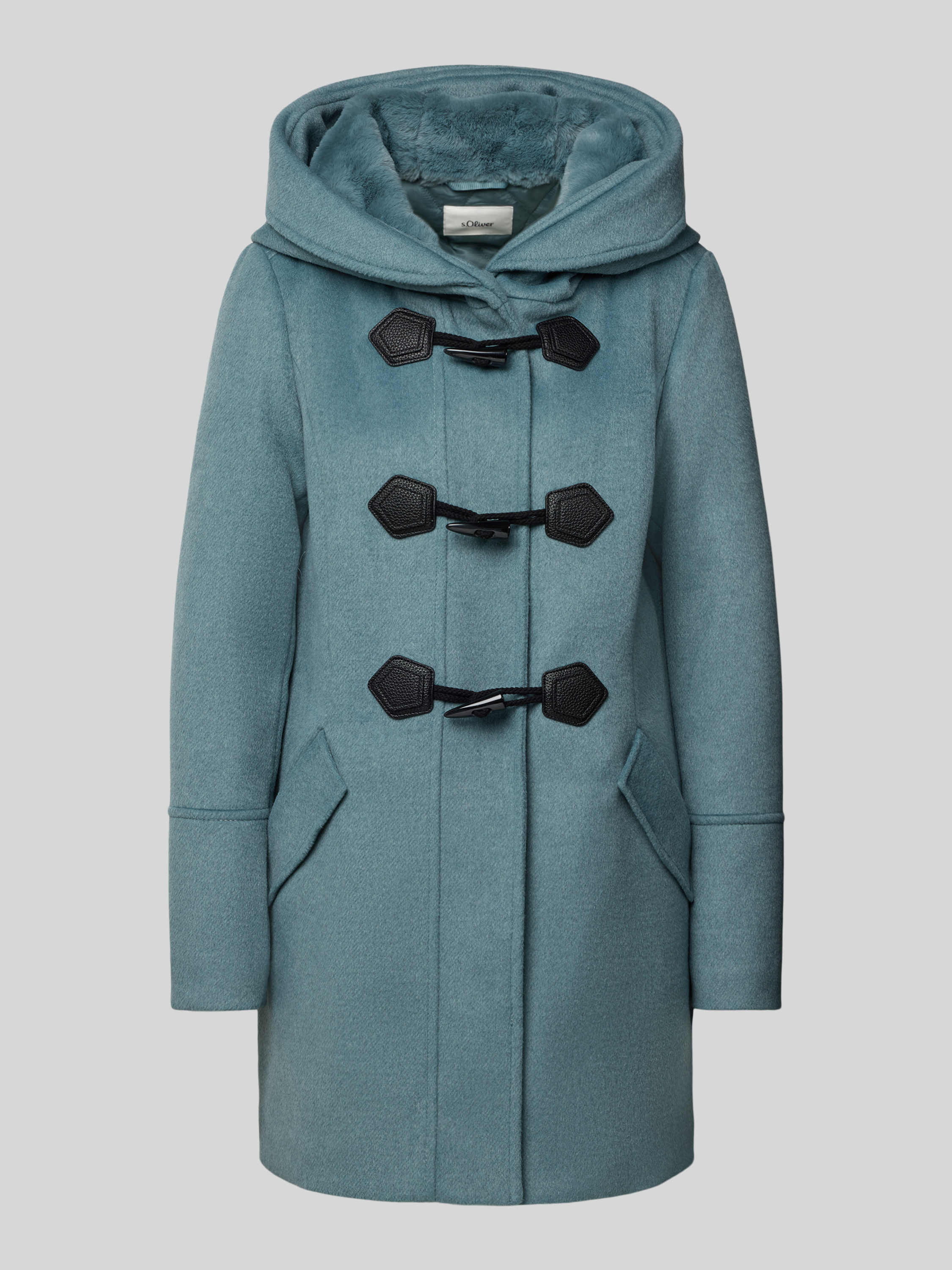 Der Damen Dufflecoat von s.Oliver RED LABEL präsentiert sich in schmaler Slim-Fit-Passform und unterstreicht durch die Melange-Optik einen modernen Charakter. Ein Stehkragen mit Kapuze und Kunstfellbesatz sorgt für angenehmen Schutz bei wechselhaftem Wetter, während der Woll-Anteil für ein wohltuendes Tragegefühl steht. Seitliche Eingrifftaschen und eine praktische Innentasche ermöglichen unkomplizierte Aufbewahrung im Alltag.