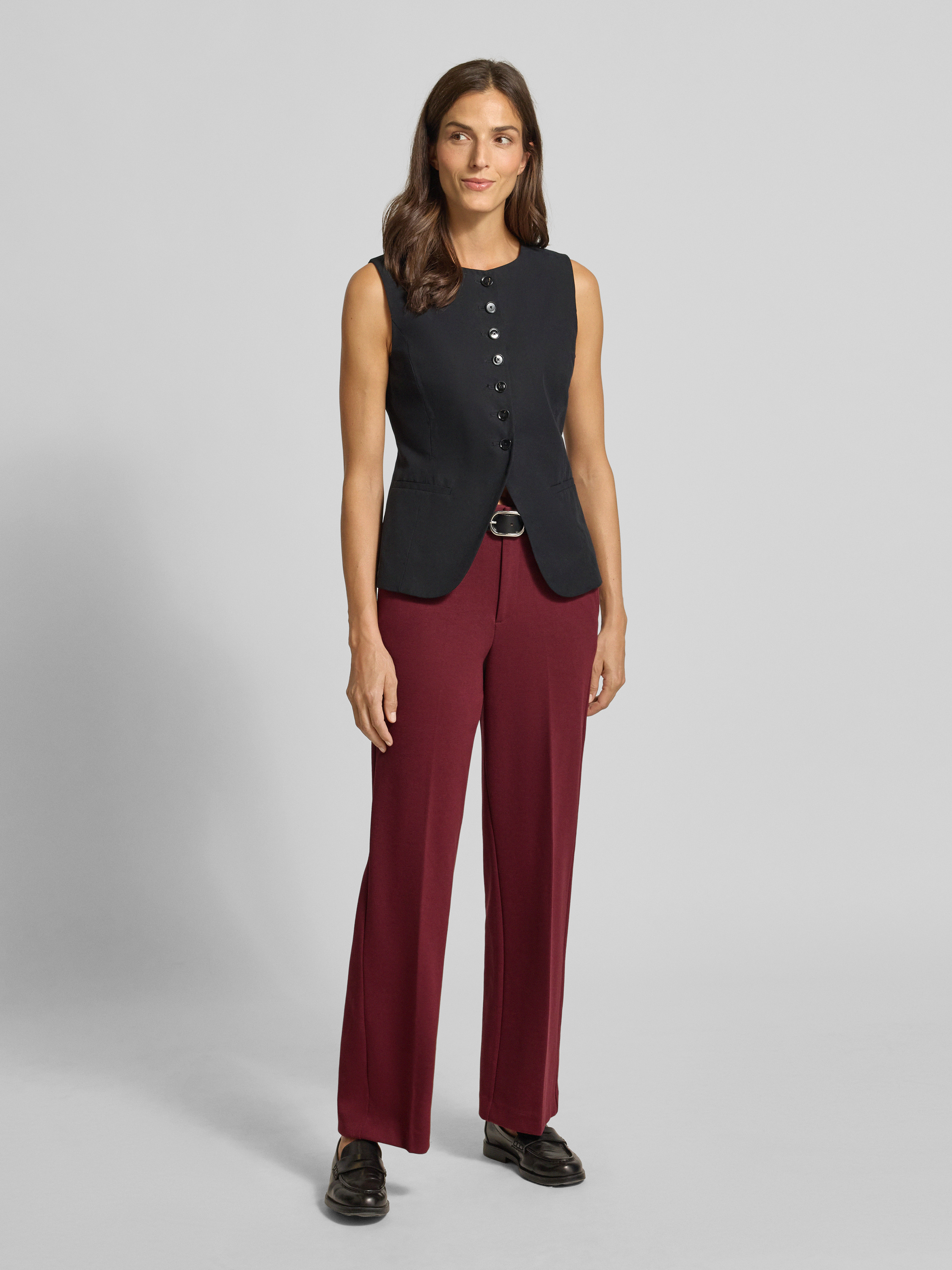 Die Damenhose von s.Oliver RED LABEL präsentiert sich in klarer, unifarbener Optik und setzt auf einen bequemen Wide-Leg-Schnitt mit mittelhohem Bund. Bügelfalten und Gürtelschlaufen sorgen für eine gepflegte Ausstrahlung, während Piqué-Material angenehm auf der Haut liegt. Seitliche Eingrifftaschen bieten praktischen Stauraum.