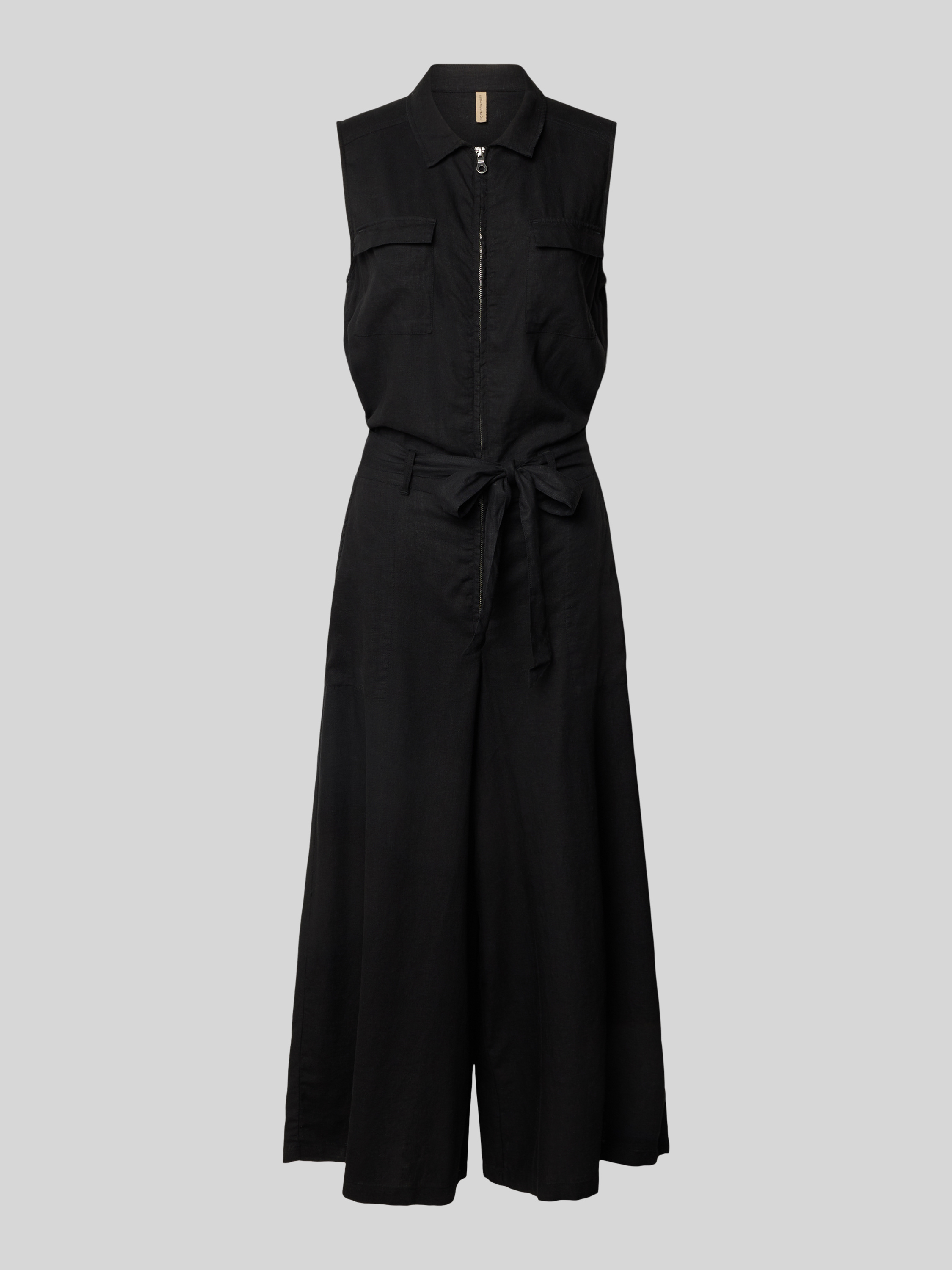 SoyaconceptJumpsuit aus Leinen-Mix mit Troyer-Kragen Modell 'INA' in black