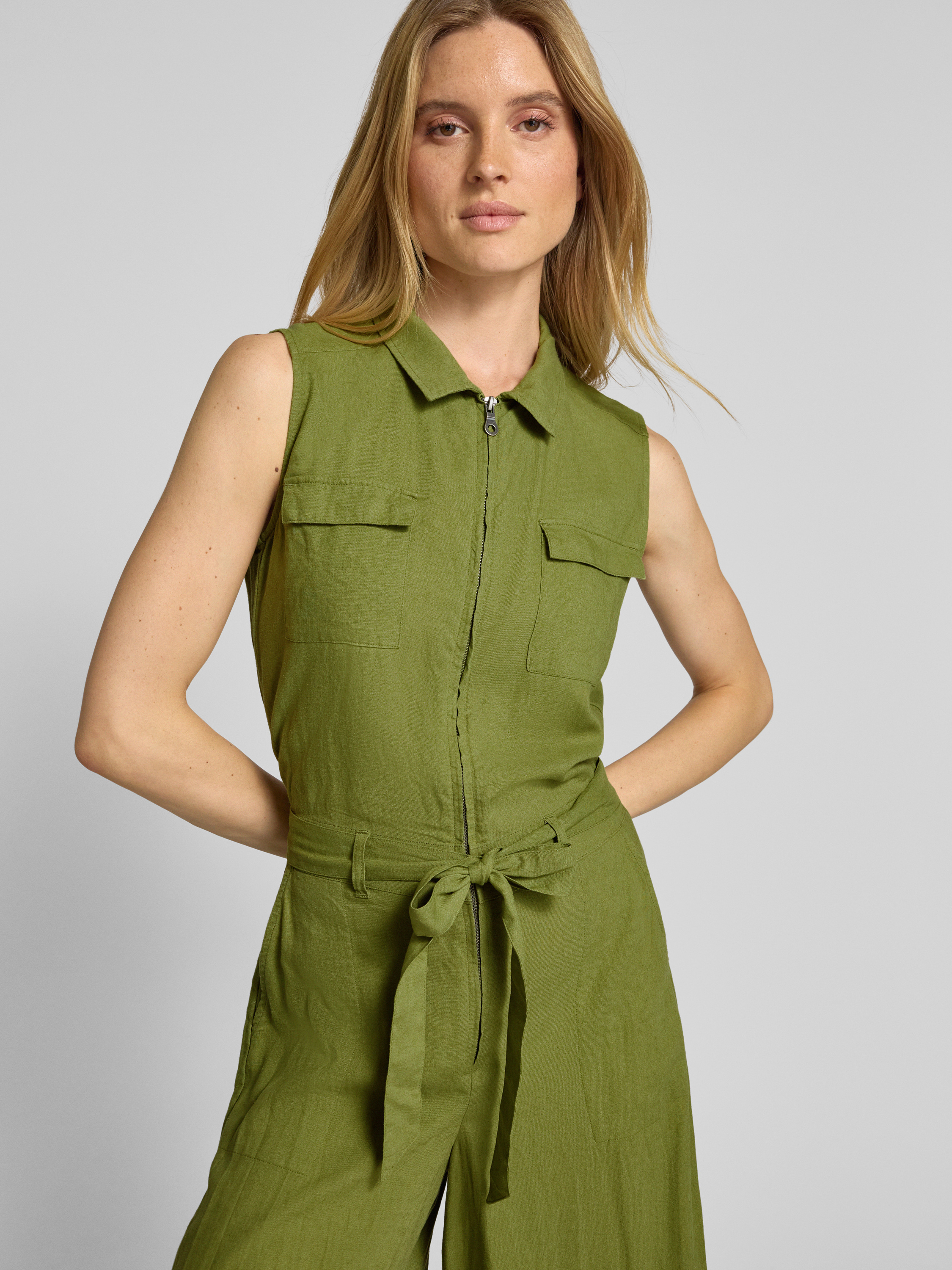 SoyaconceptJumpsuit aus Leinen-Mix mit Troyer-Kragen Modell 'INA' in gruen