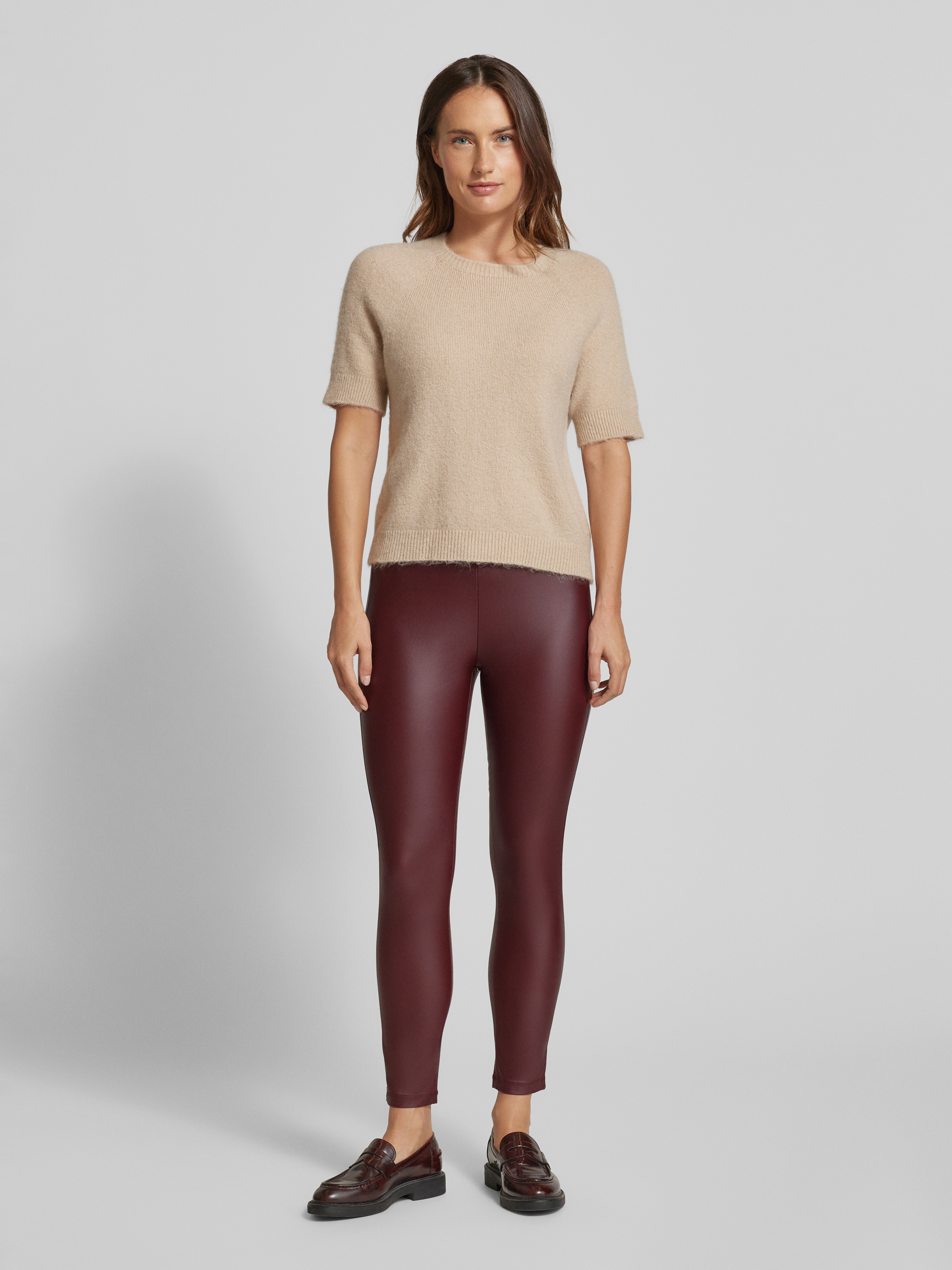 Die Damenhose von Soyaconcept, Modell Pam, setzt auf einen schmalen Schnitt, der eng am Bein anliegt und für eine moderne Silhouette sorgt. Durch den Viskose-Mix mit Stretch-Anteil bleibt Bewegungsfreiheit erhalten. Der breite Bund in Leder-Optik verleiht dem Look eine markante Note.