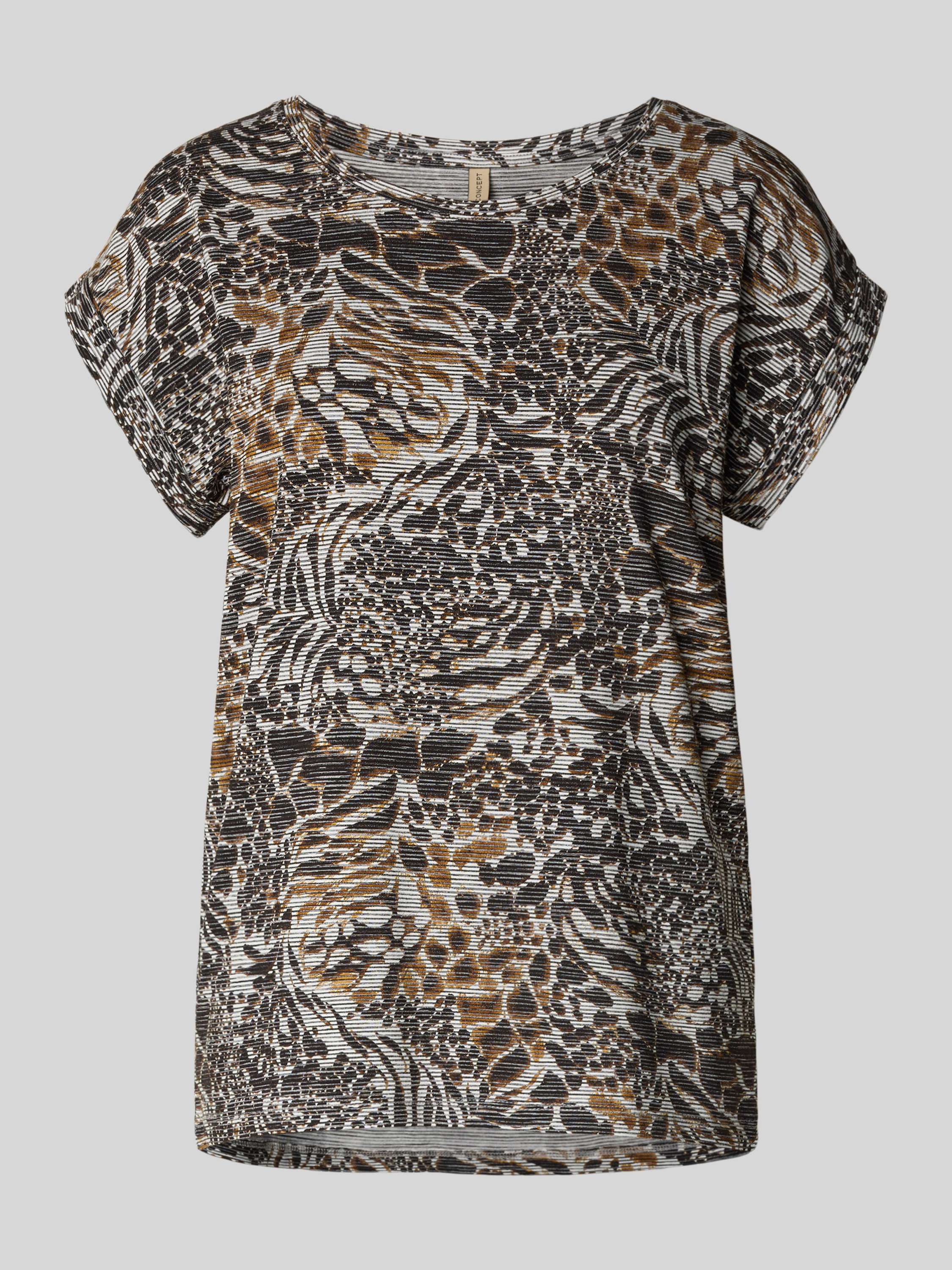 SoyaconceptT-Shirt mit geripptem Rundhalsausschnitt in dunkelbraun