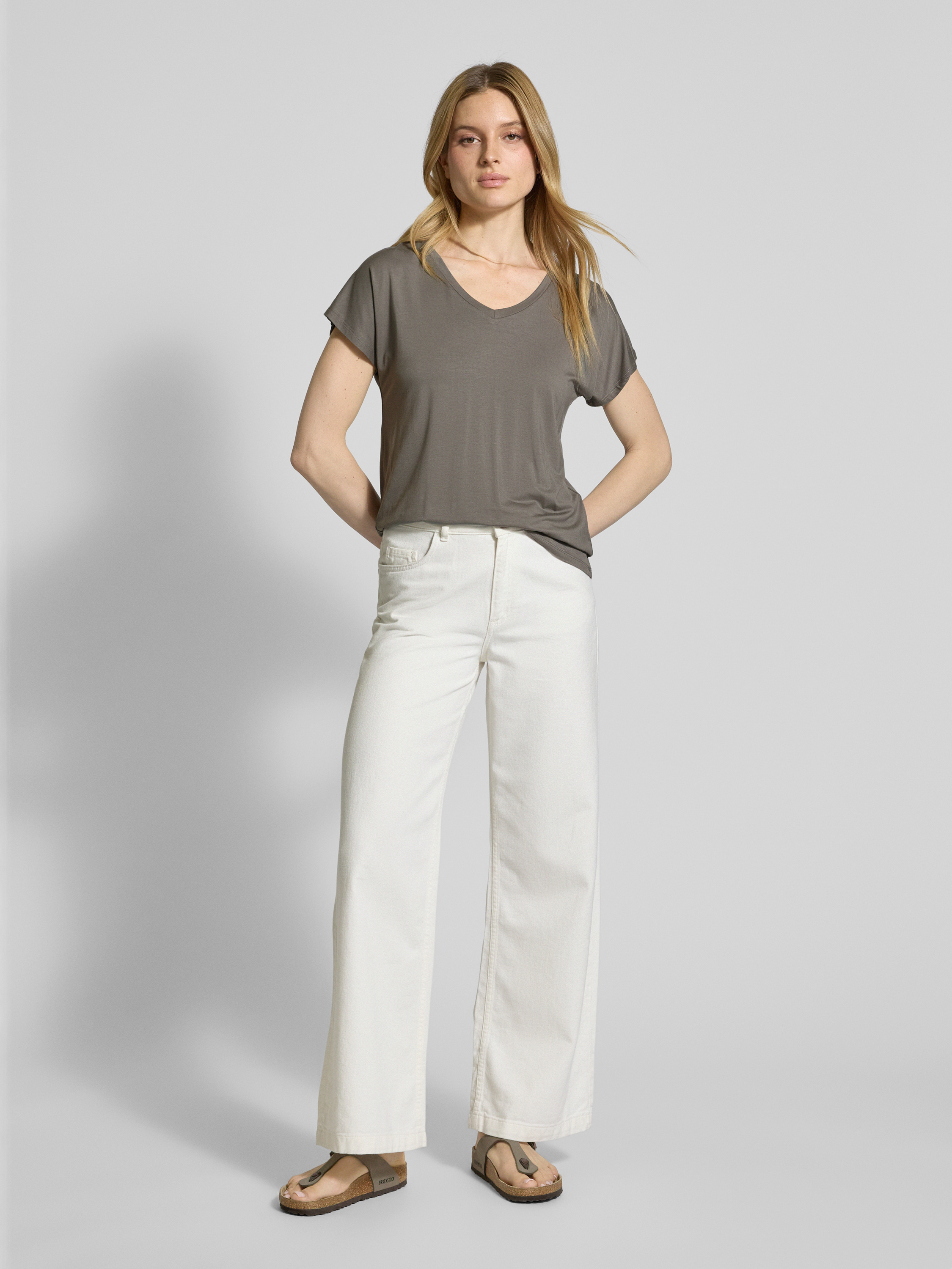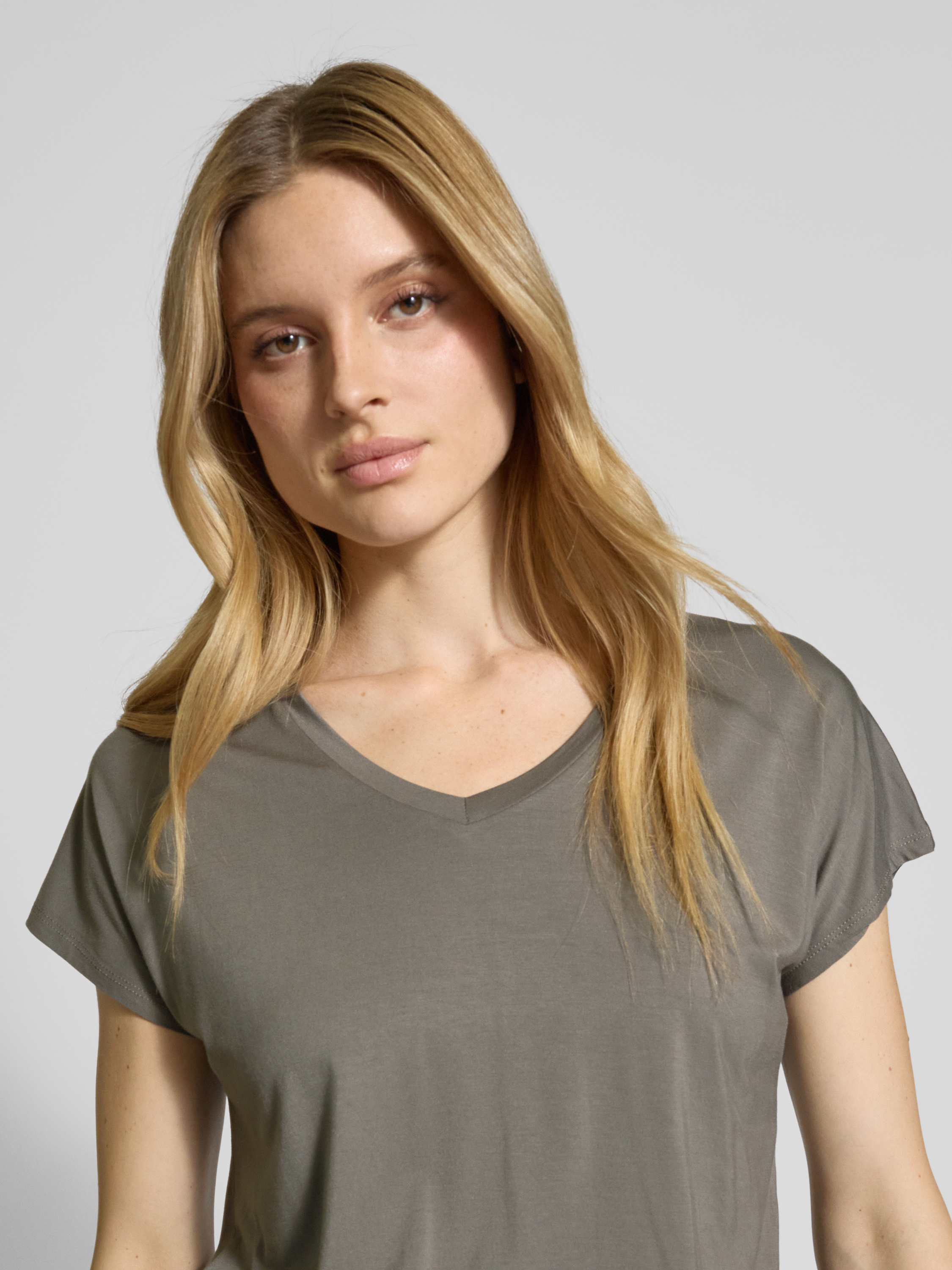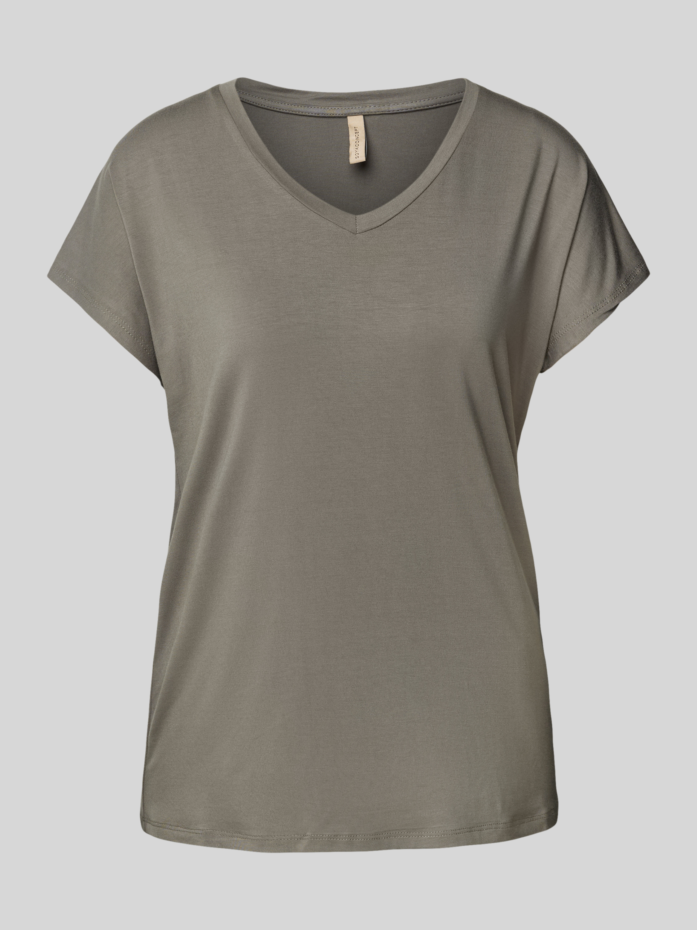 SoyaconceptT-Shirt mit geripptem V-Ausschnitt Modell 'Marica' in khaki
