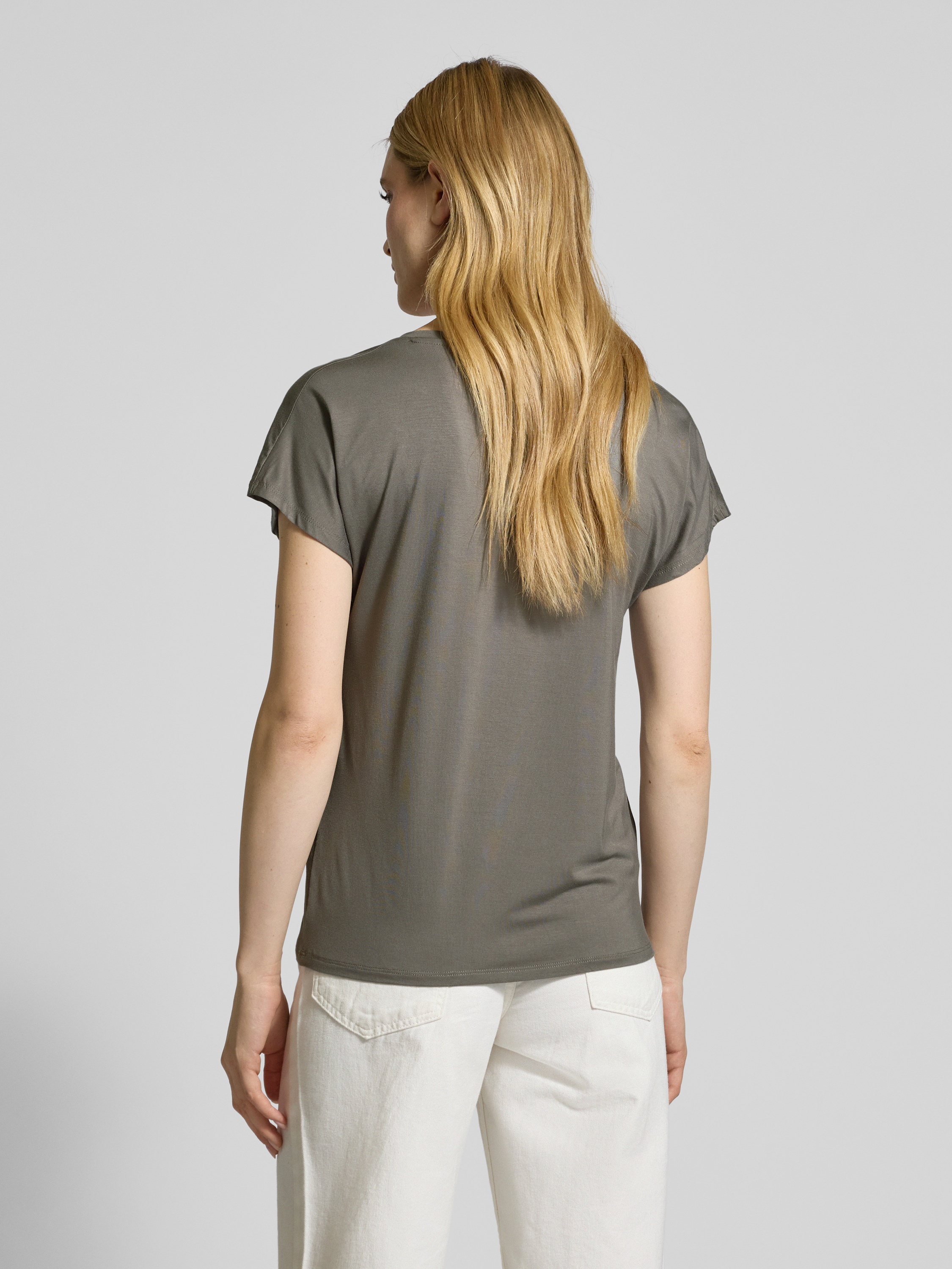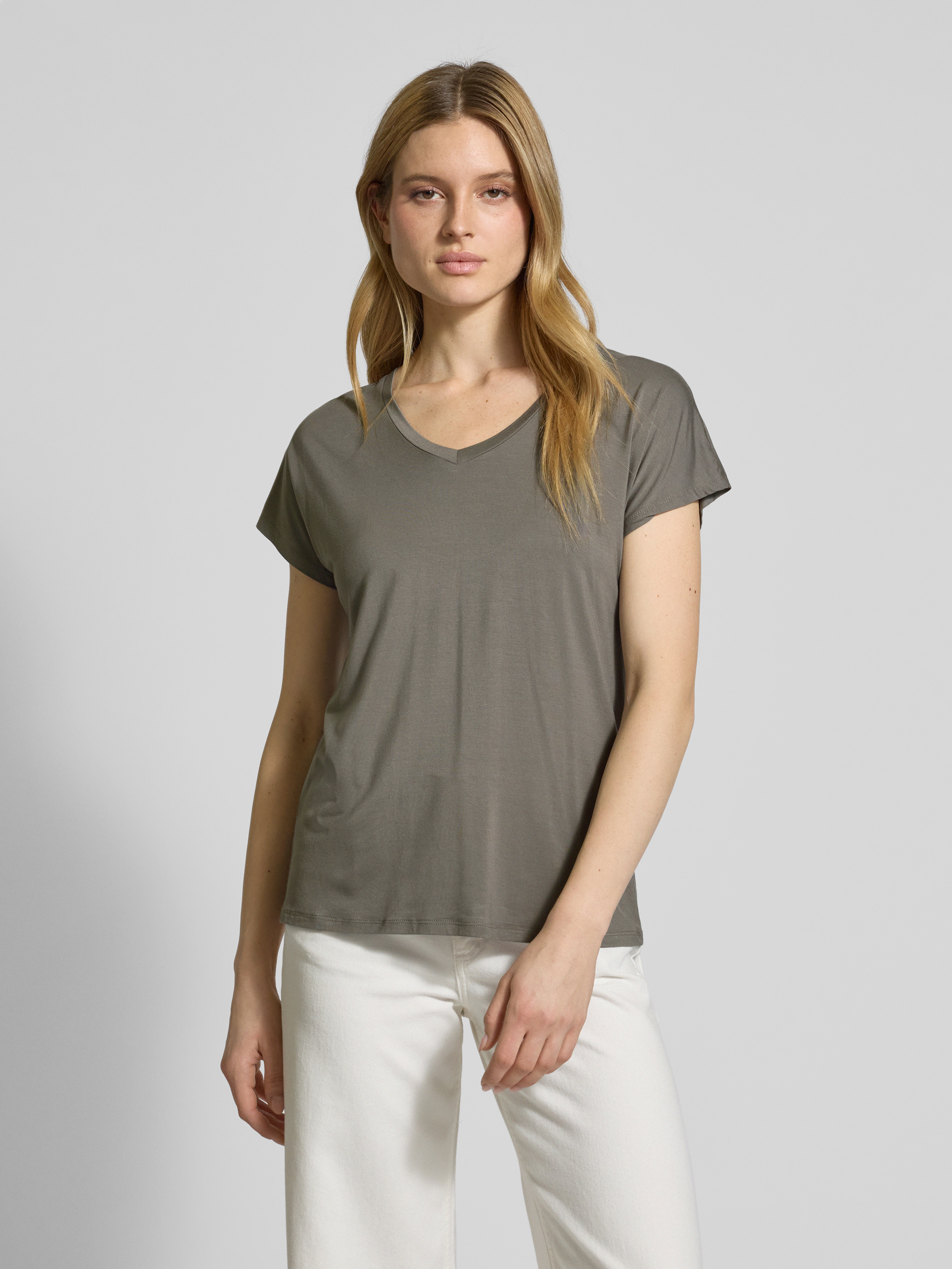 Das T-Shirt mit geripptem V-Ausschnitt Modell 'Marica' von Soyaconcept überzeugt durch seinen lockeren Schnitt, der angenehme Bewegungsfreiheit ermöglicht. Der Lyocell-Elasthan-Mix sorgt für ein weiches Tragegefühl und macht das Shirt zu einem vielseitigen Begleiter im Alltag. Ideal für entspannte und stilvolle Outfits.