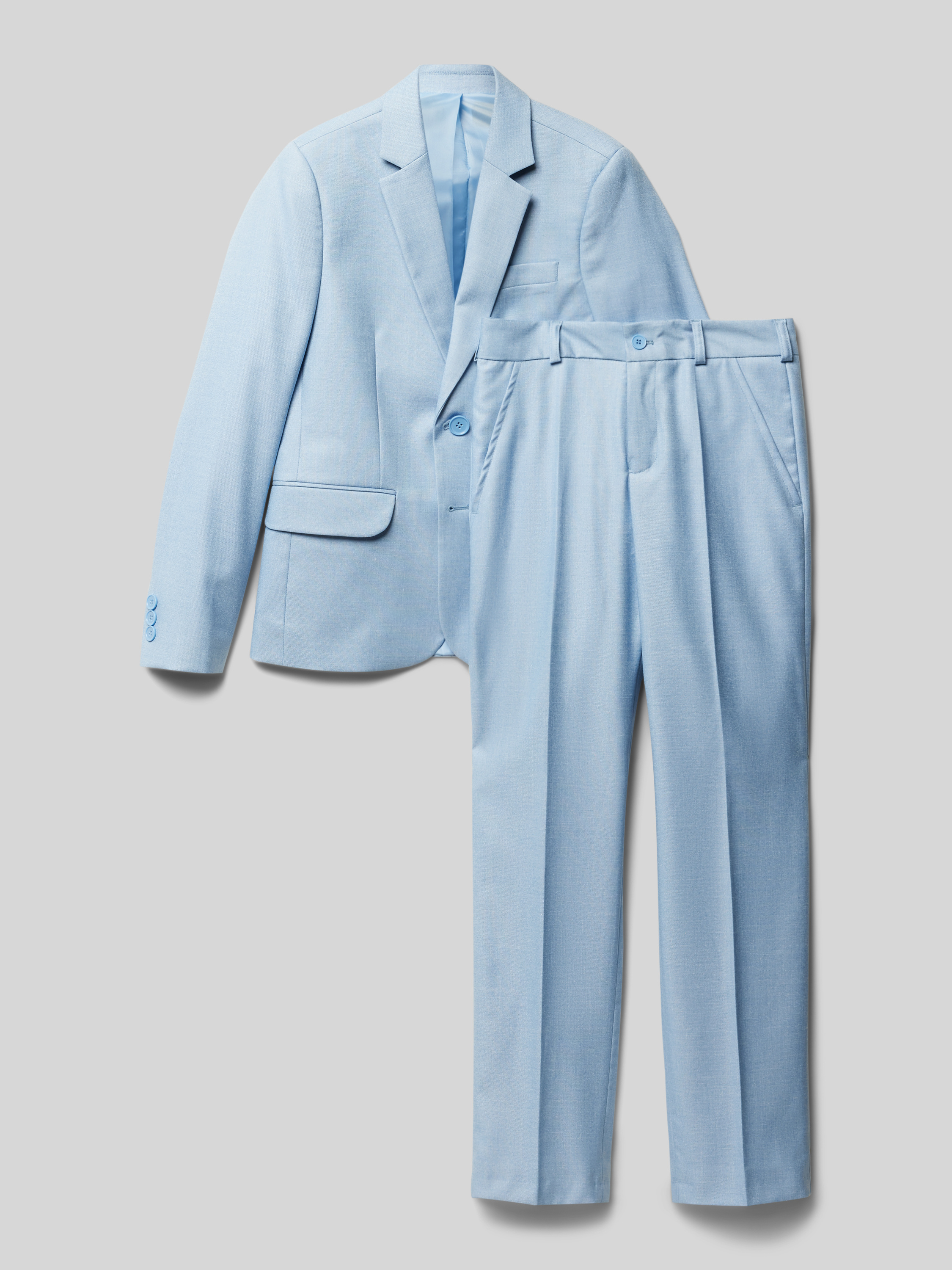 Der Slim Fit Anzug von Standar kombiniert einen elastischen Material-Mix mit einem eleganten Reverskragen. Die Pattentaschen und die Brustleistentasche verleihen dem Sakko eine klassische Note. Die Anzughose mit Gürtelschlaufen und Bügelfalten sorgt für einen gepflegten Auftritt.
