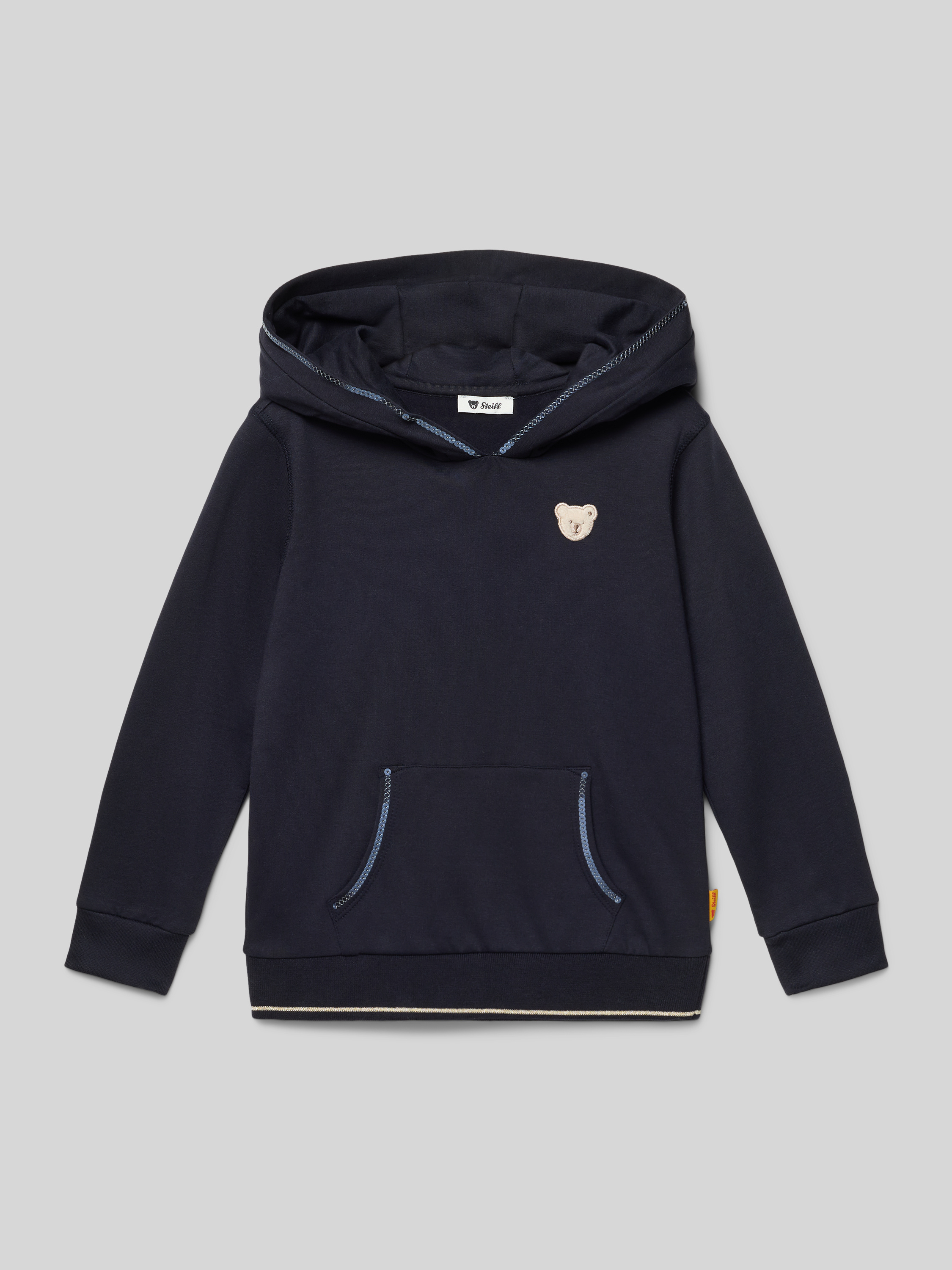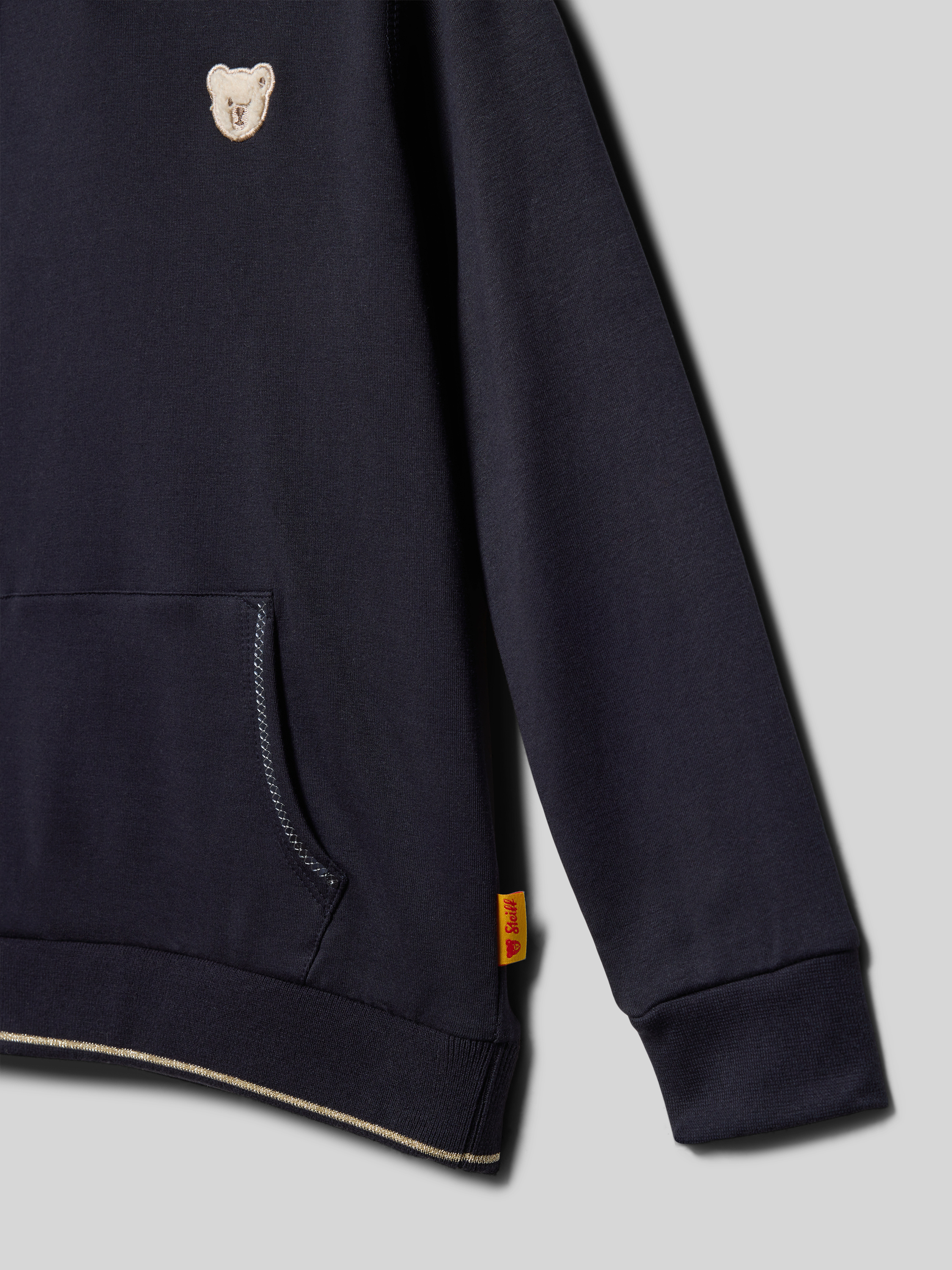 Der Kinder Hoodie von Steiff sitzt durch den Regular Fit angenehm locker und gewährt dabei ausreichend Bewegungsfreiheit. Dank des Baumwoll-Elasthan-Mix fühlt sich das Material weich auf der Haut an und lässt sich unkompliziert im Alltag tragen. Das Label-Stitching und die Känguru-Tasche setzen dezente, kindgerechte Akzente.