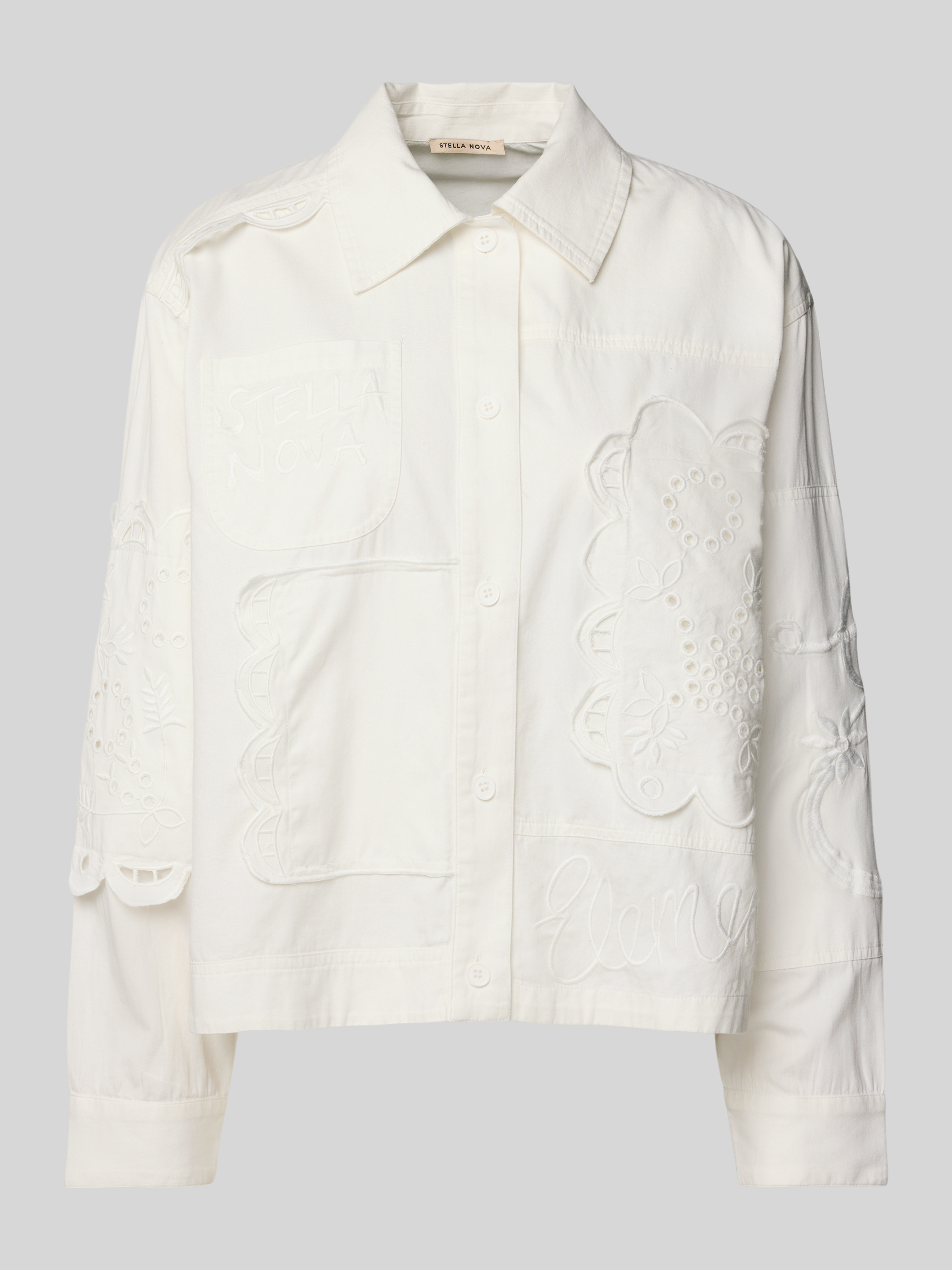 Stella NovaRelaxed Fit Bluse mit Lochstickerei Modell 'Elements' in weiss