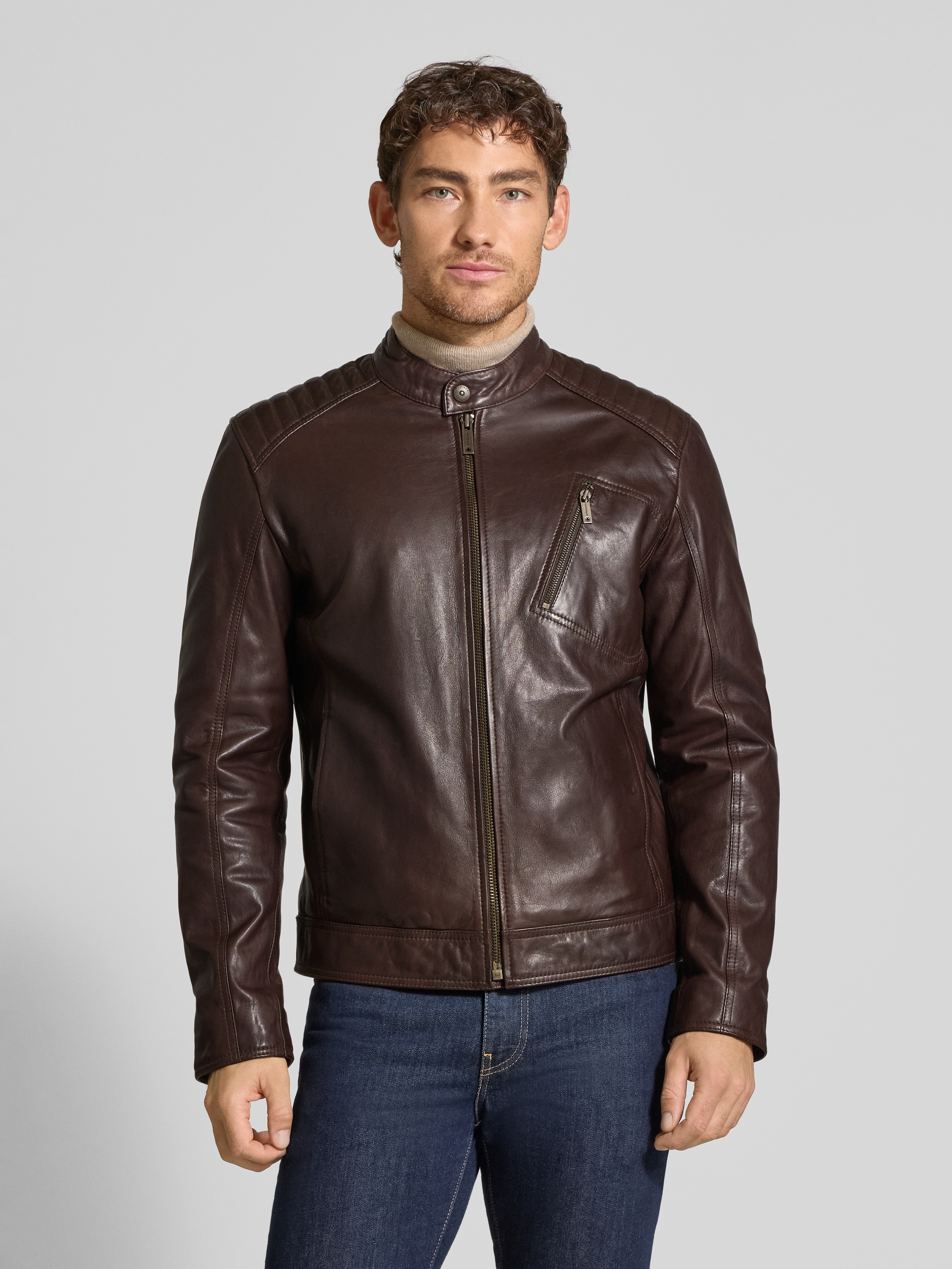 • Strellson Regular Fit Lederjacke aus Lammnappa Modell 'PIERS' Dunkelbraun